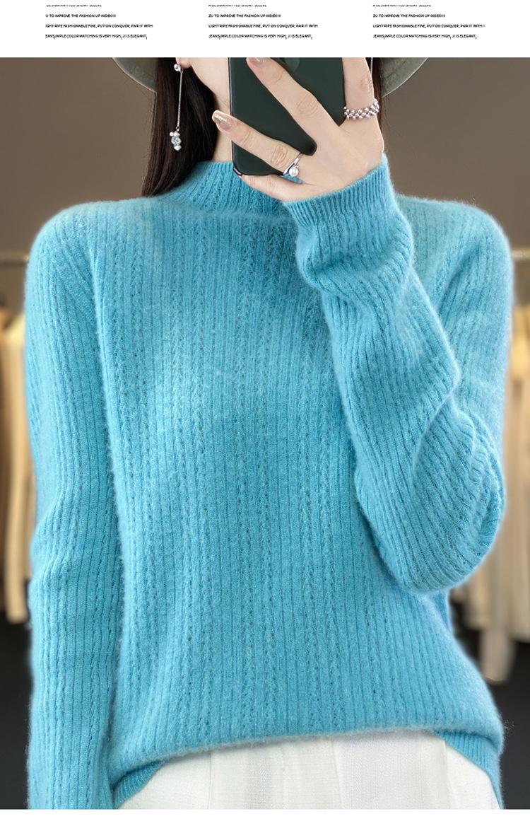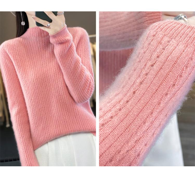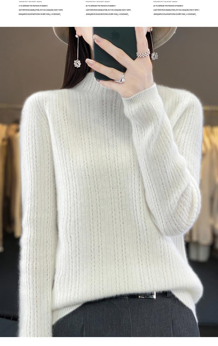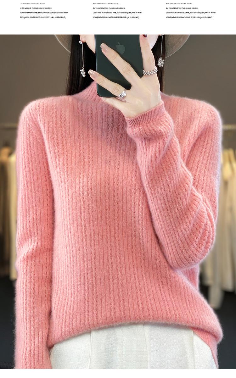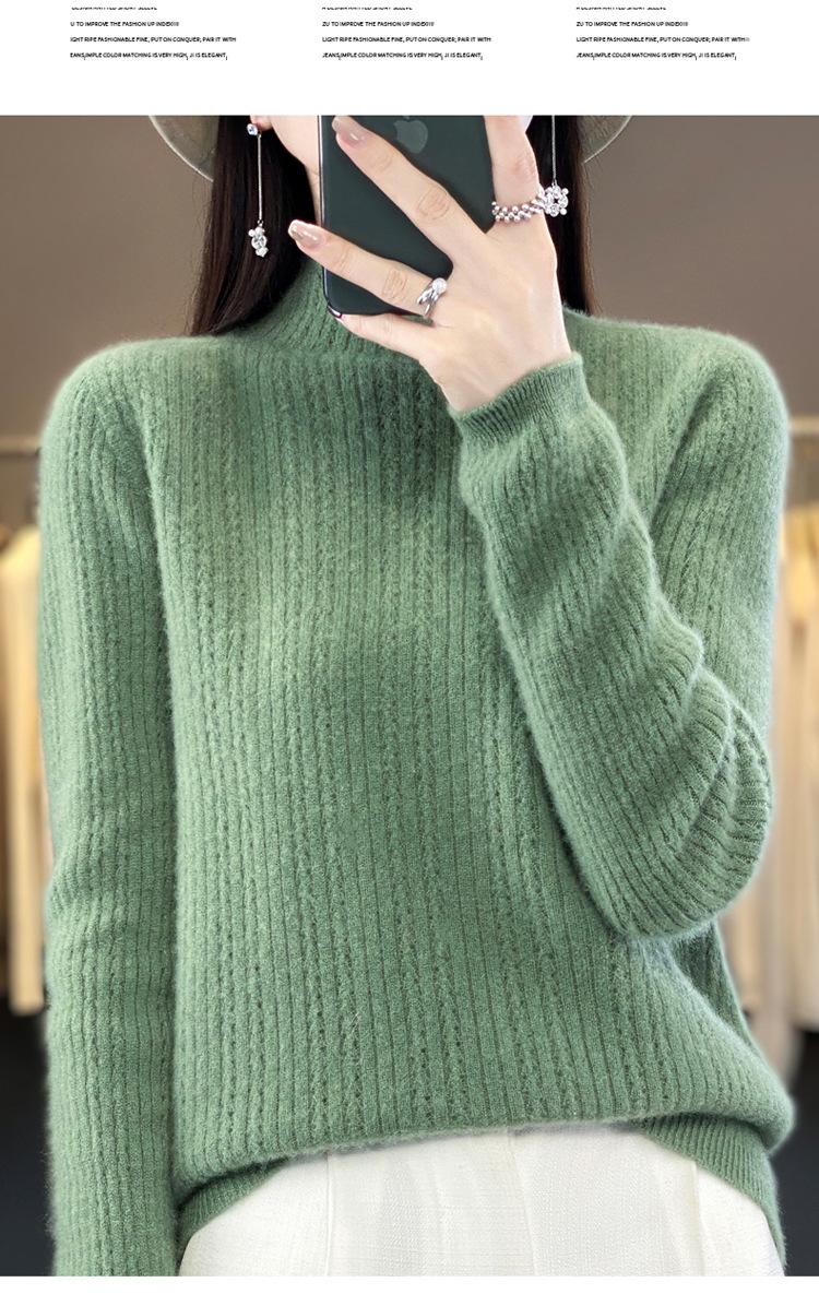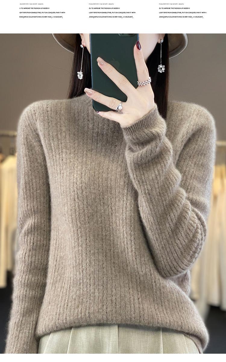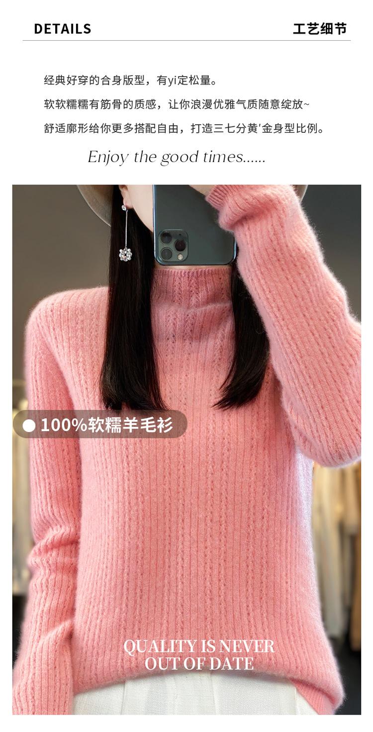 Suéter de cuello alto medio para mujer, 100% lana pura, otoño e invierno, suéter interior grueso y ajustado, camisa de base de punto, nuevo