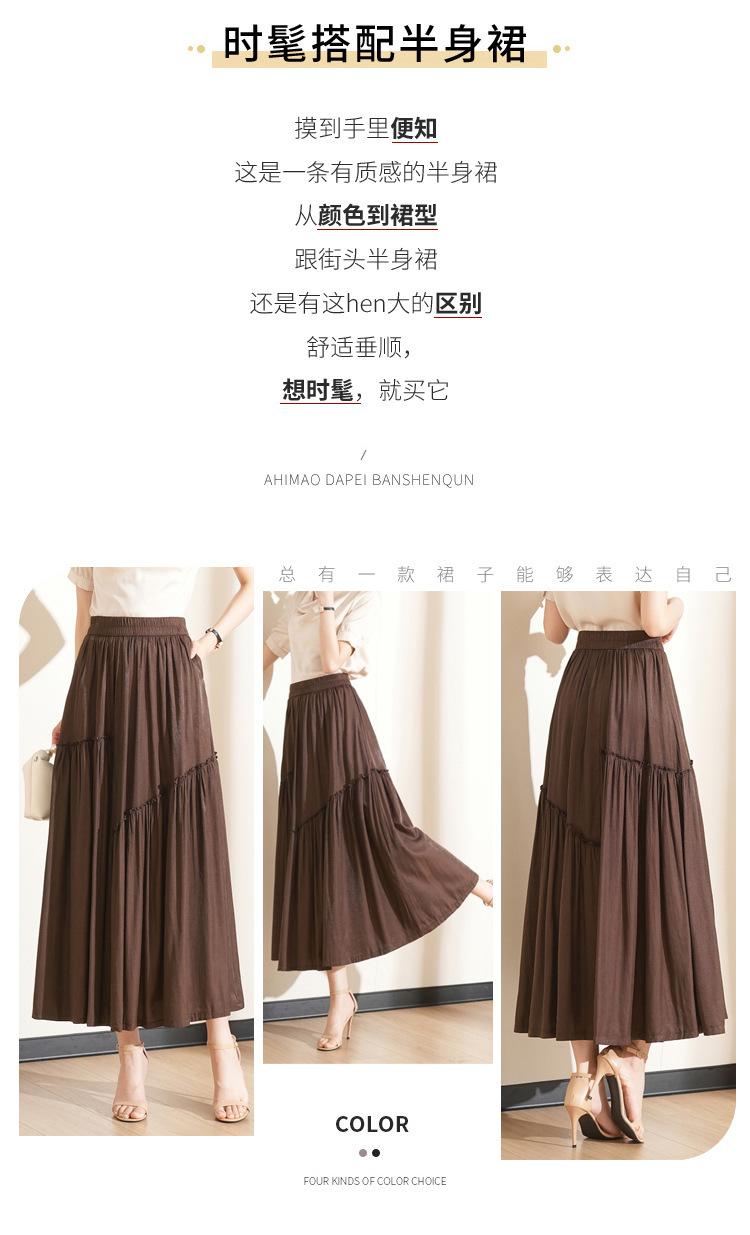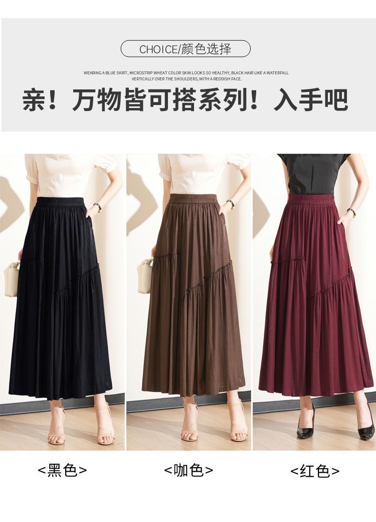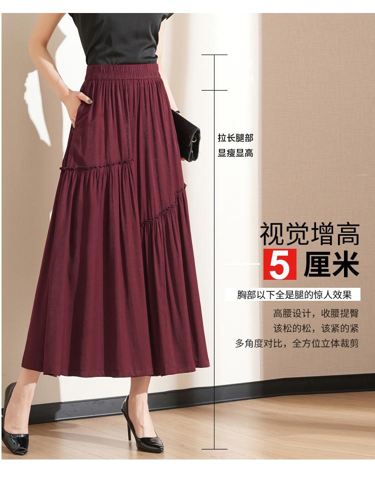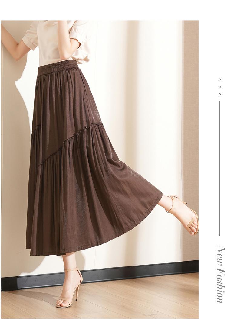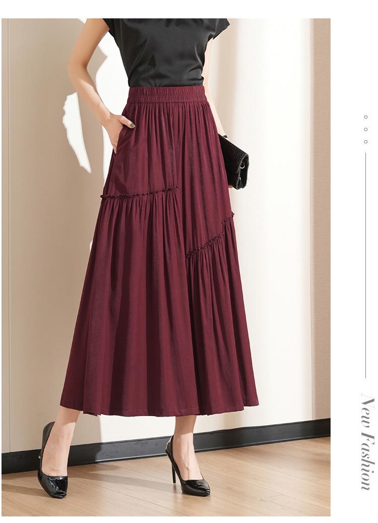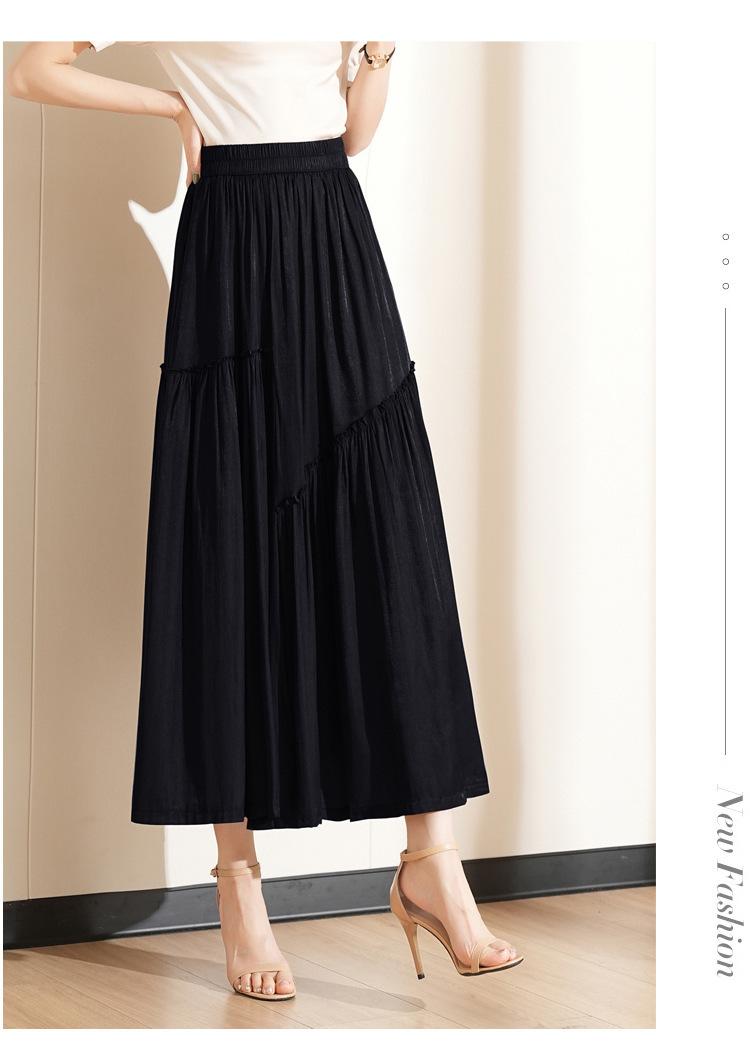 Falda de Moda de Cintura Elástica Corte A Bajo Amplio para Mujer 2025 Verano Nuevo Estilo Simple Casual Plisada Midi