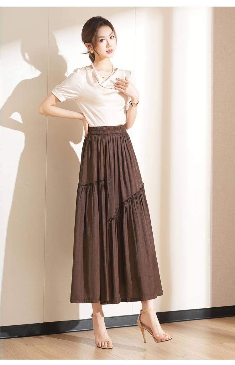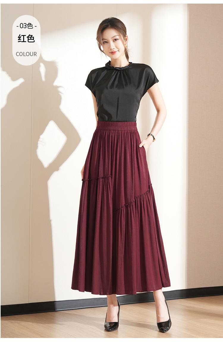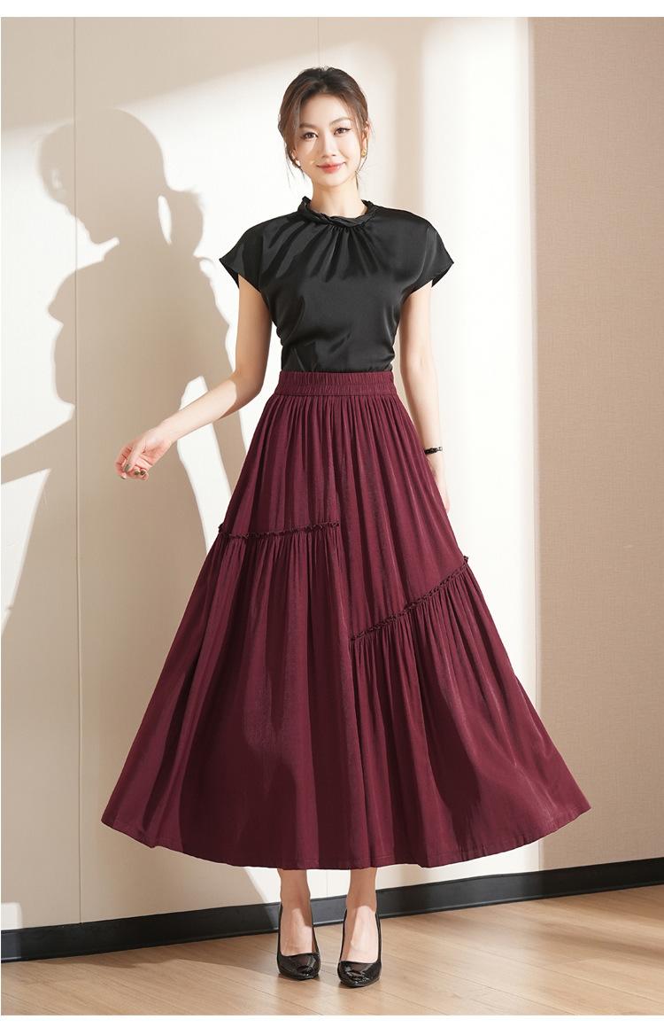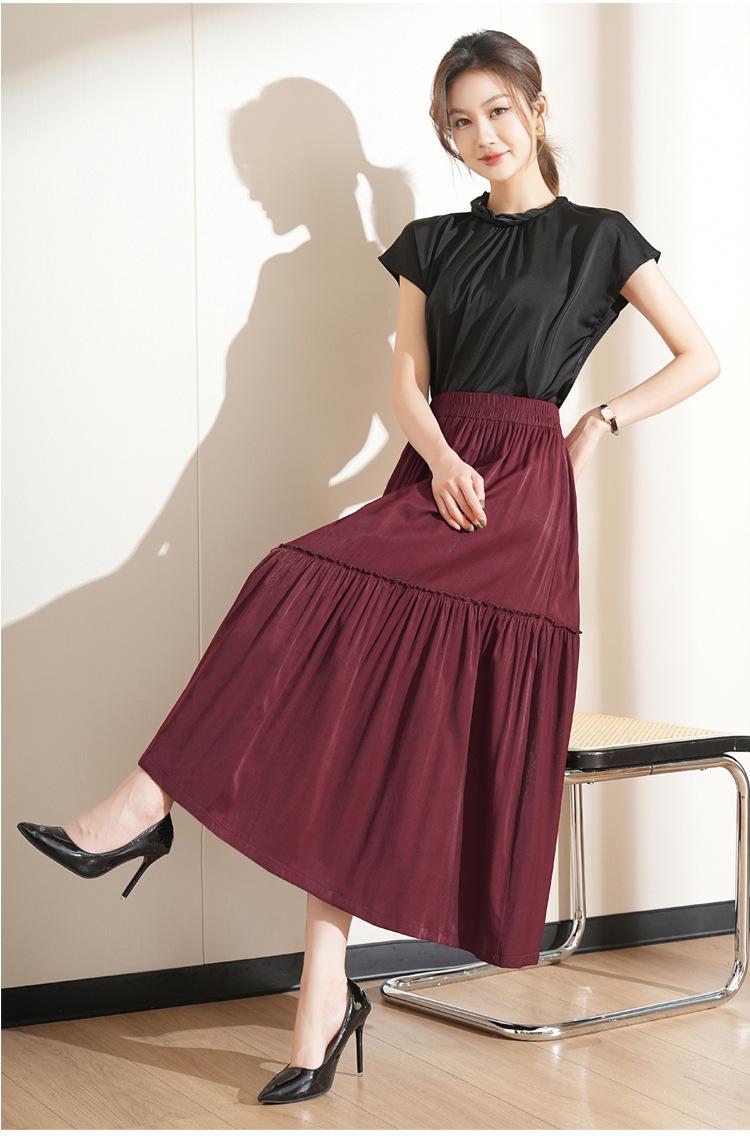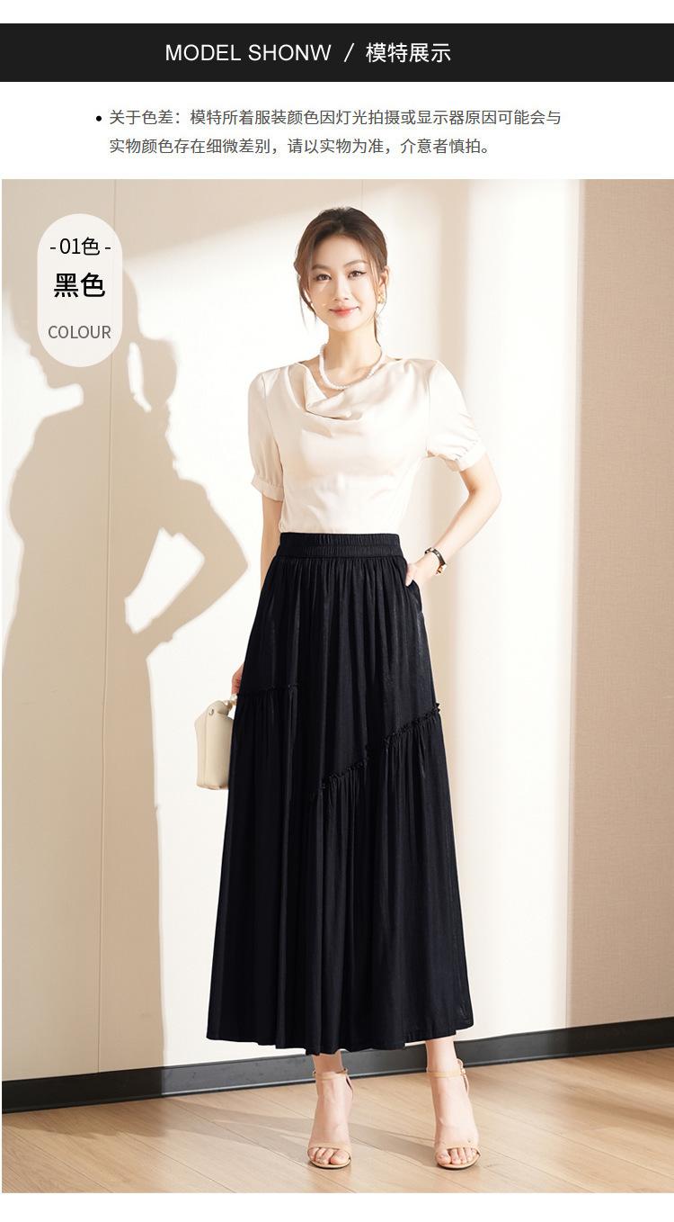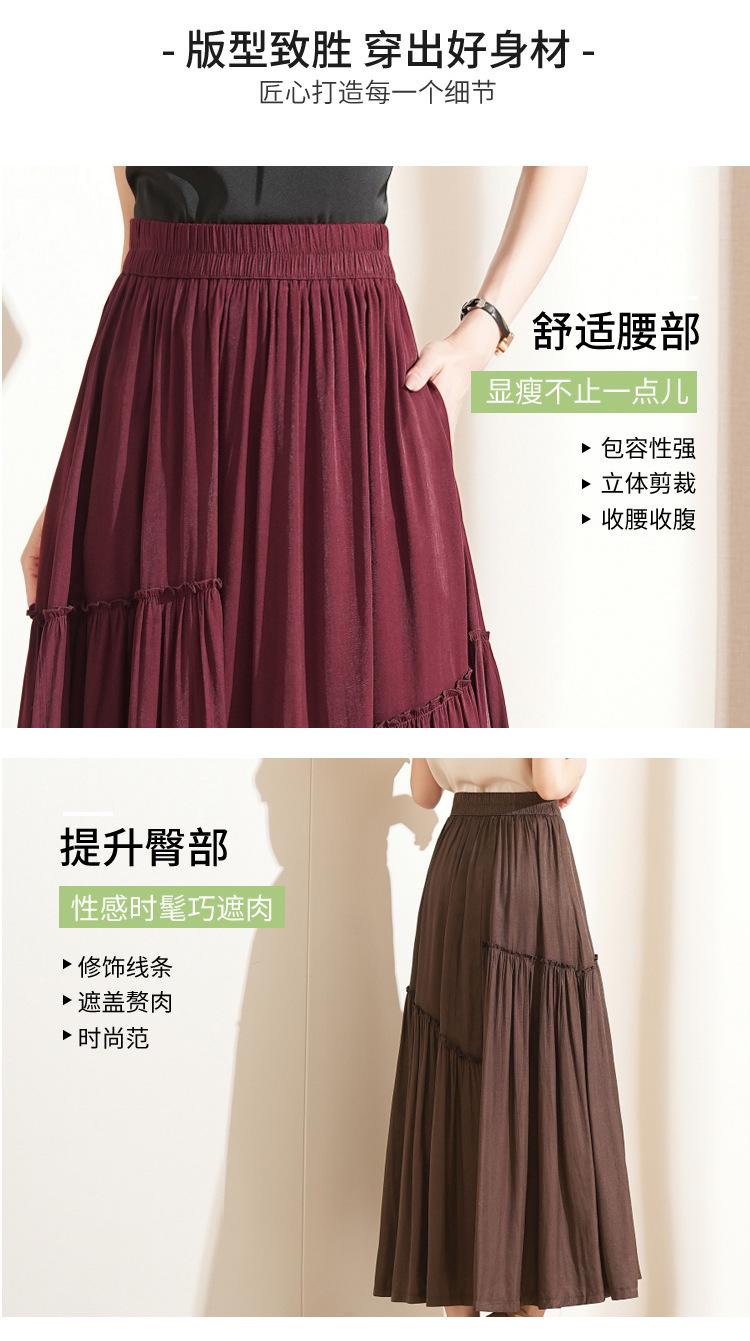 Falda de Moda de Cintura Elástica Corte A Bajo Amplio para Mujer 2025 Verano Nuevo Estilo Simple Casual Plisada Midi