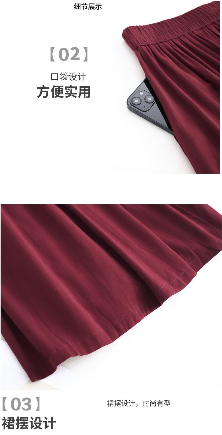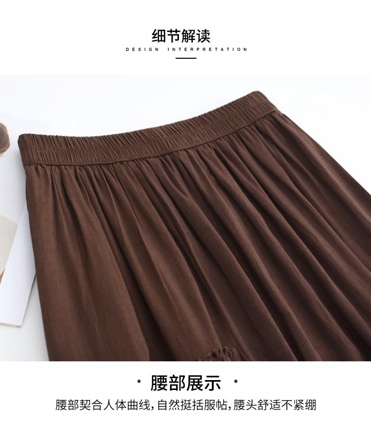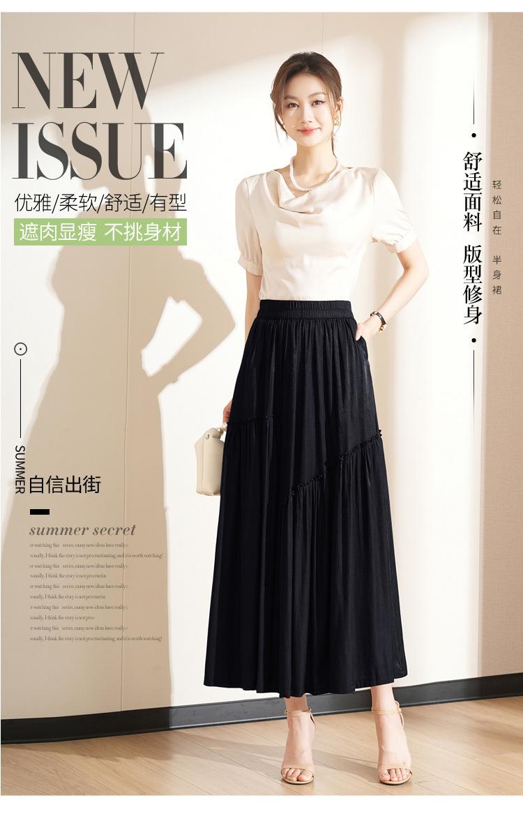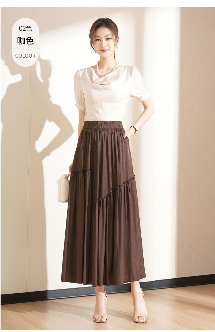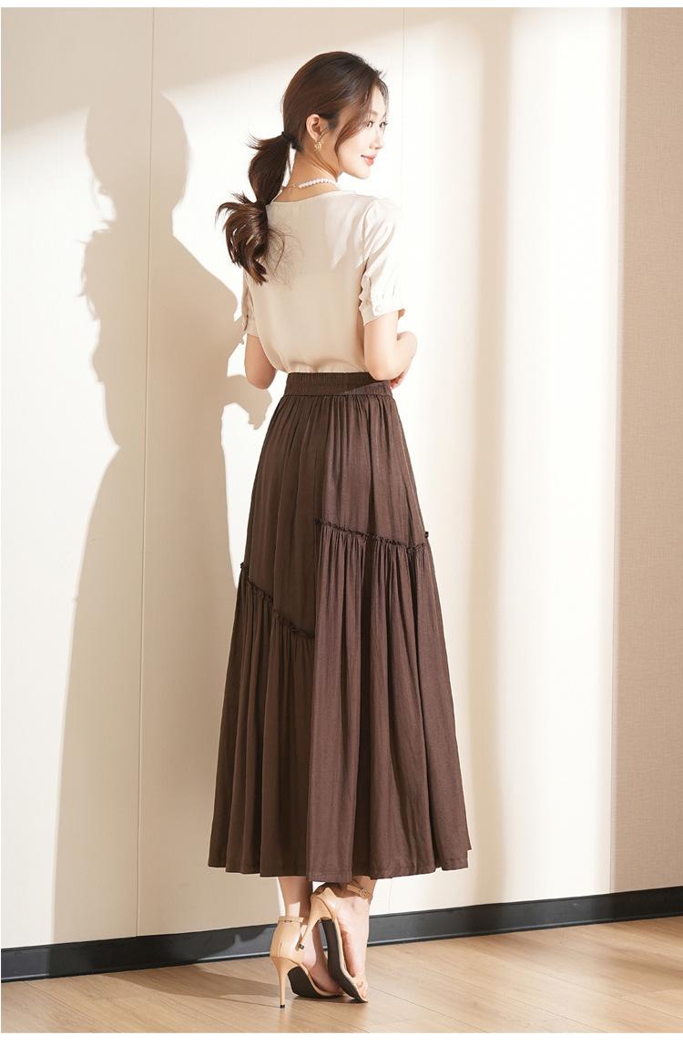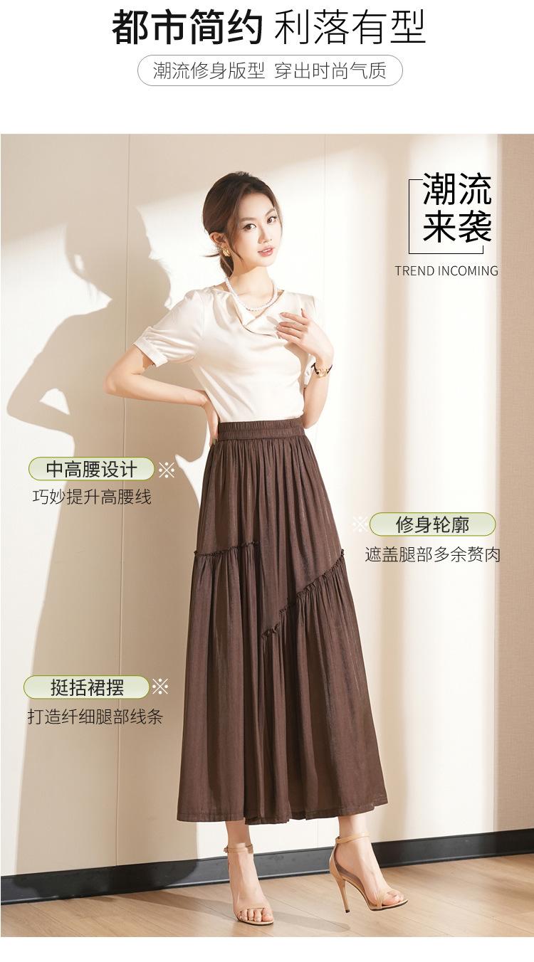 Falda de Moda de Cintura Elástica Corte A Bajo Amplio para Mujer 2025 Verano Nuevo Estilo Simple Casual Plisada Midi