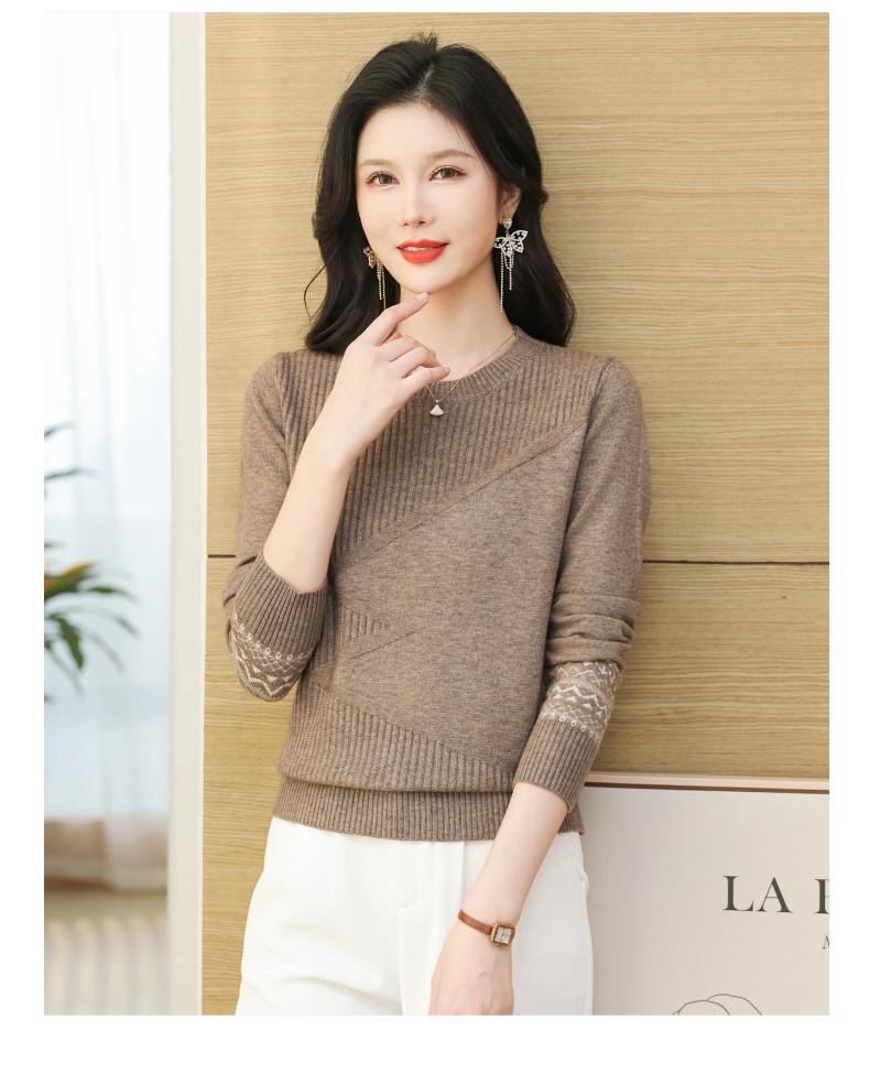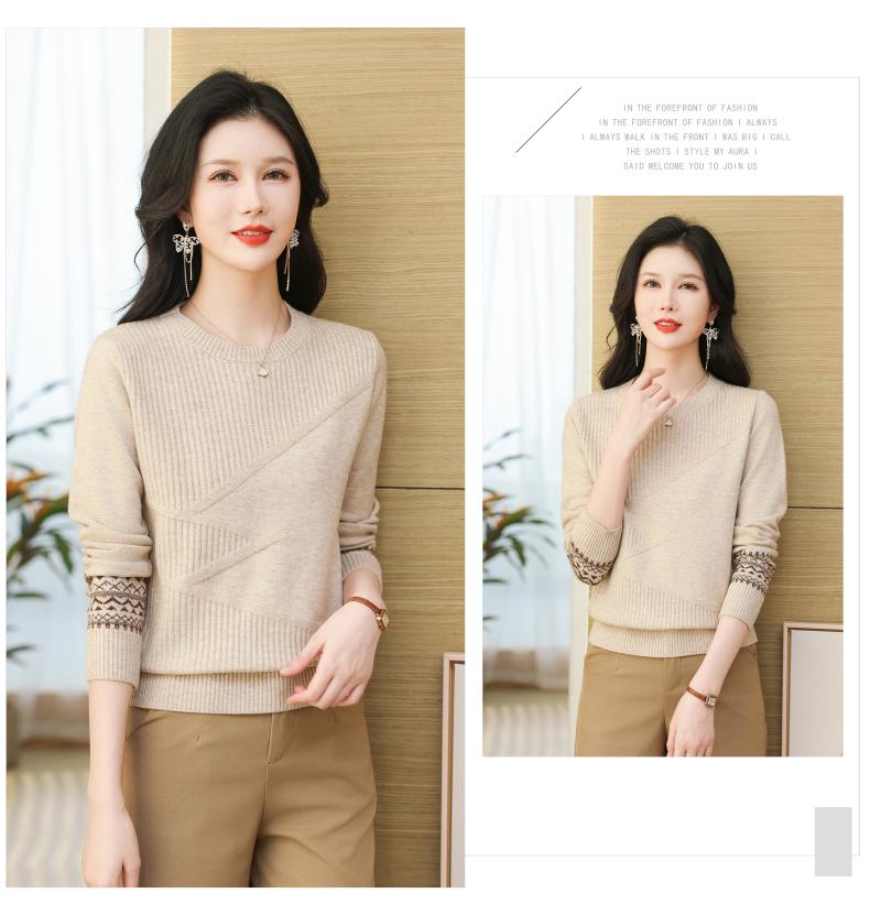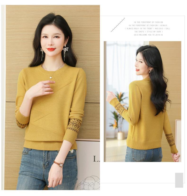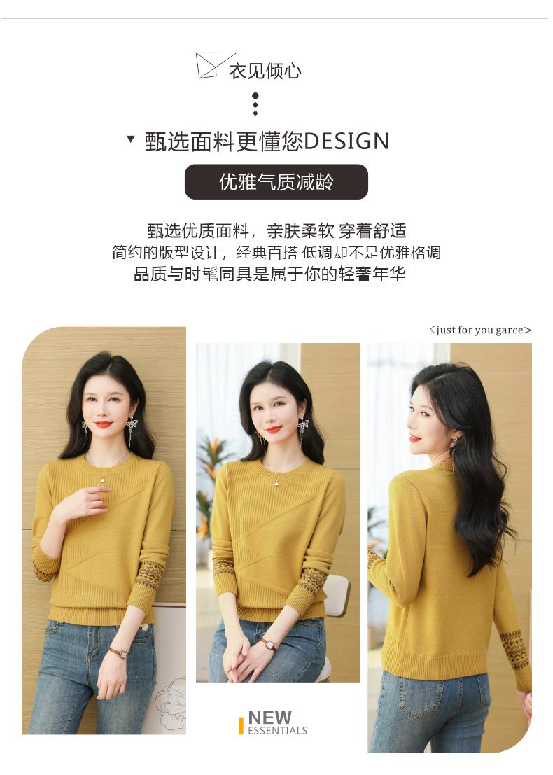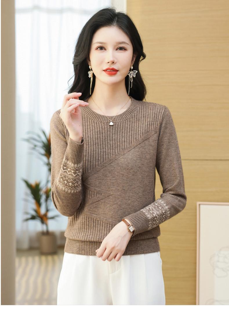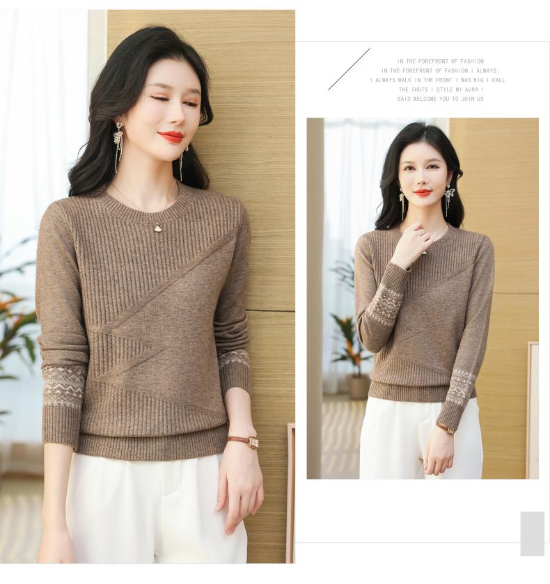 Camisa de punto con descuento de marca para mujer 2024 nueva primavera y otoño cuello redondo manga larga suéter jacquard camisa de fondo ropa superior moda