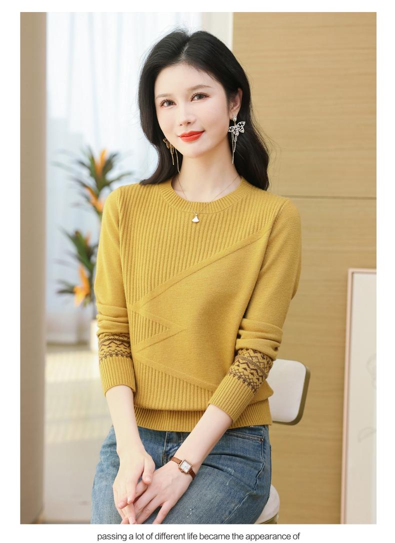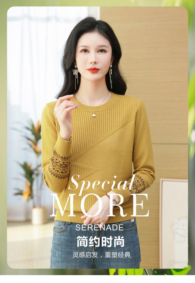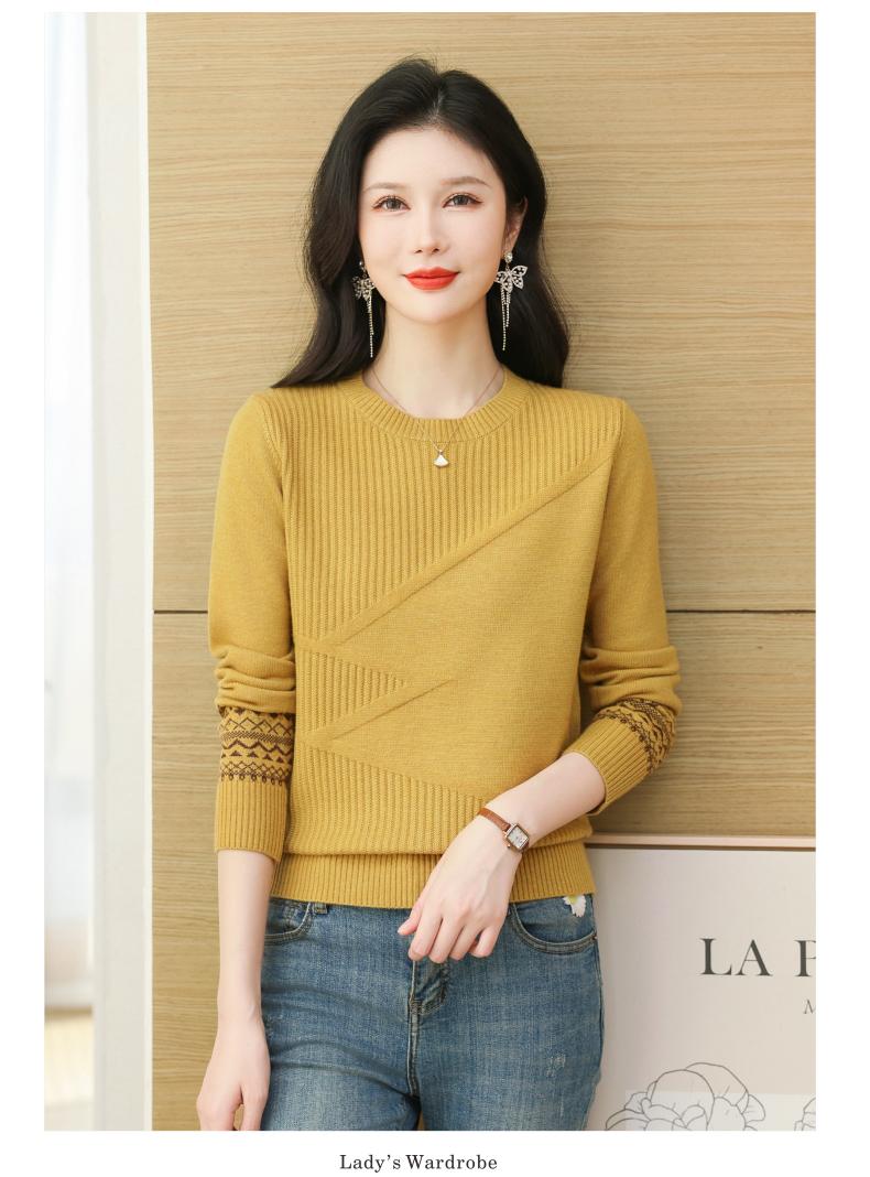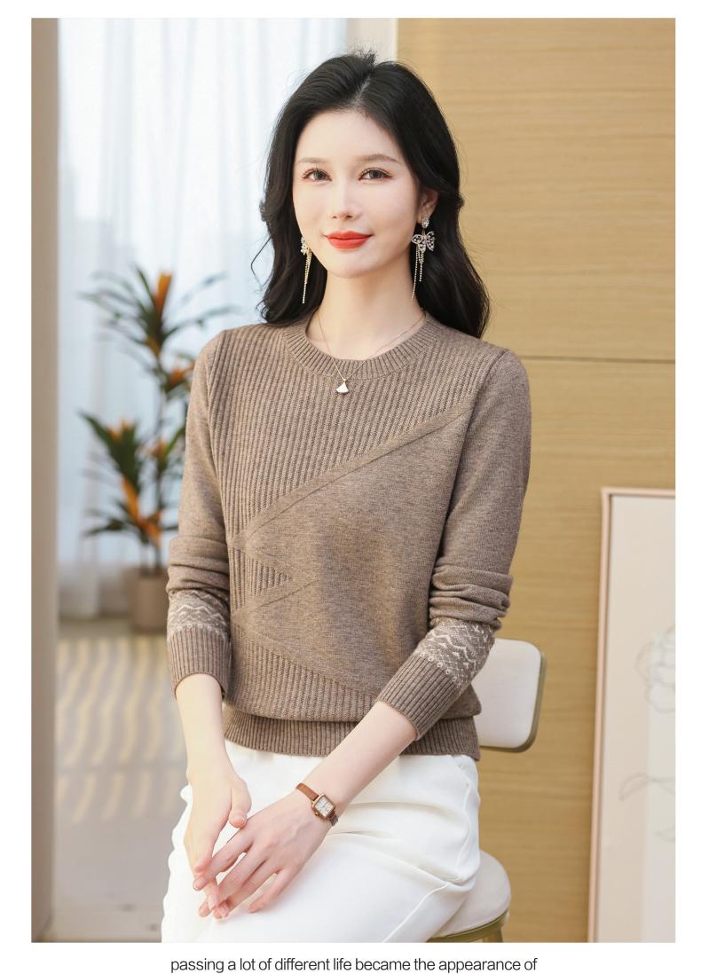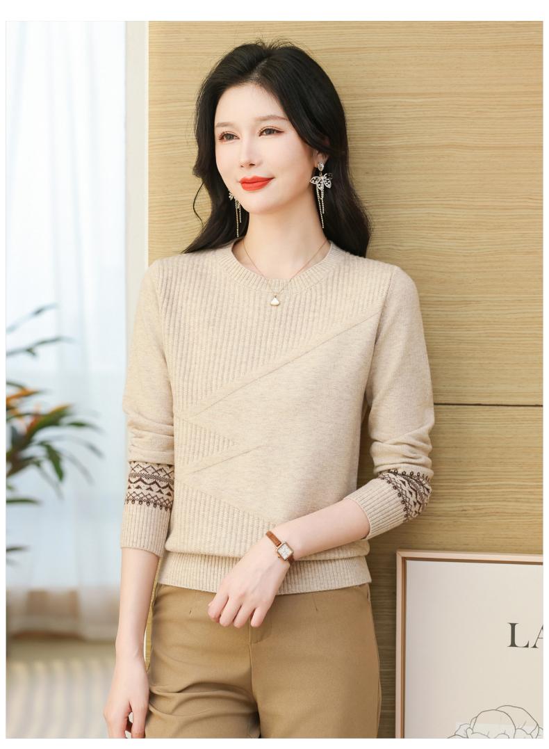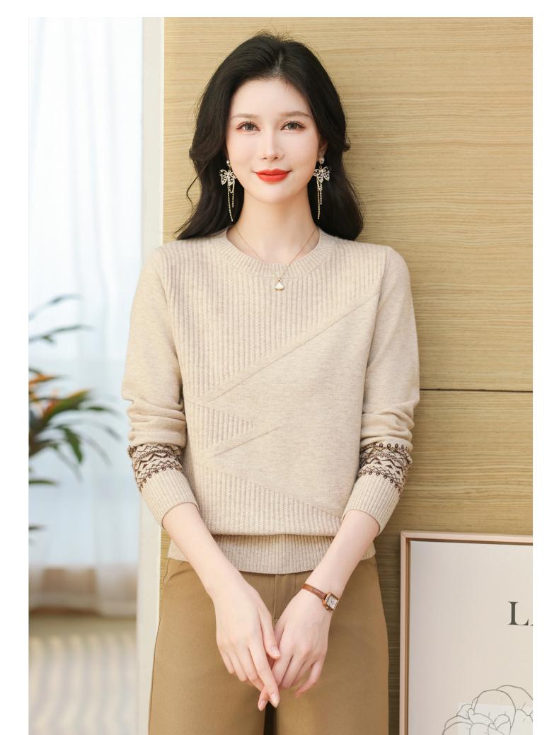 Camisa de punto con descuento de marca para mujer 2024 nueva primavera y otoño cuello redondo manga larga suéter jacquard camisa de fondo ropa superior moda