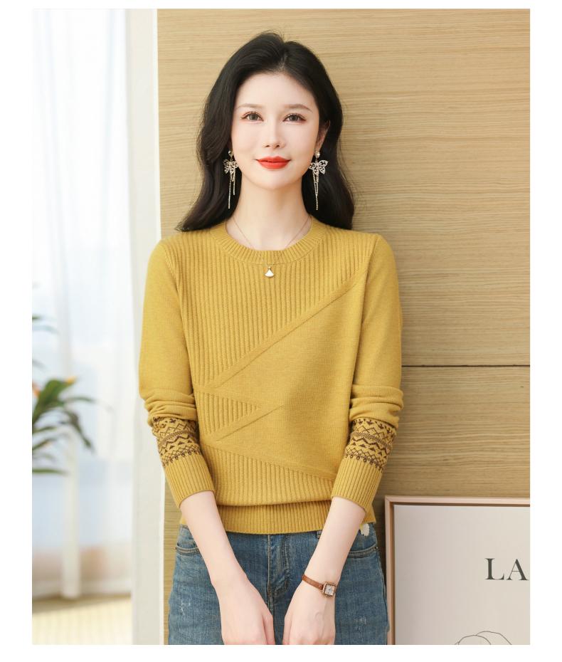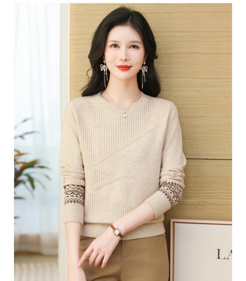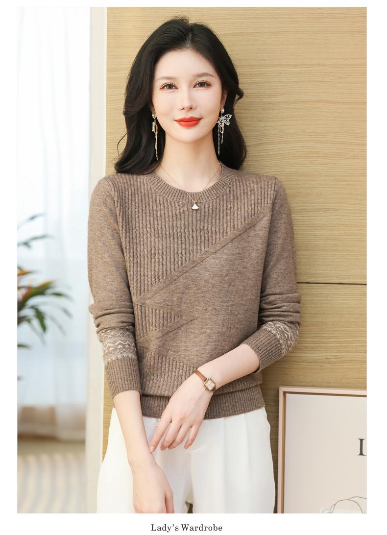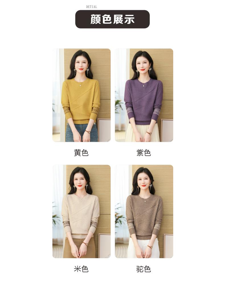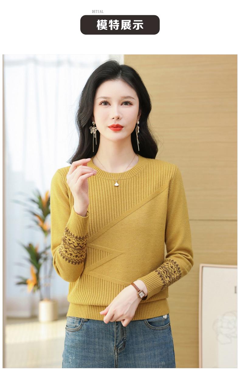 Camisa de punto con descuento de marca para mujer 2024 nueva primavera y otoño cuello redondo manga larga suéter jacquard camisa de fondo ropa superior moda