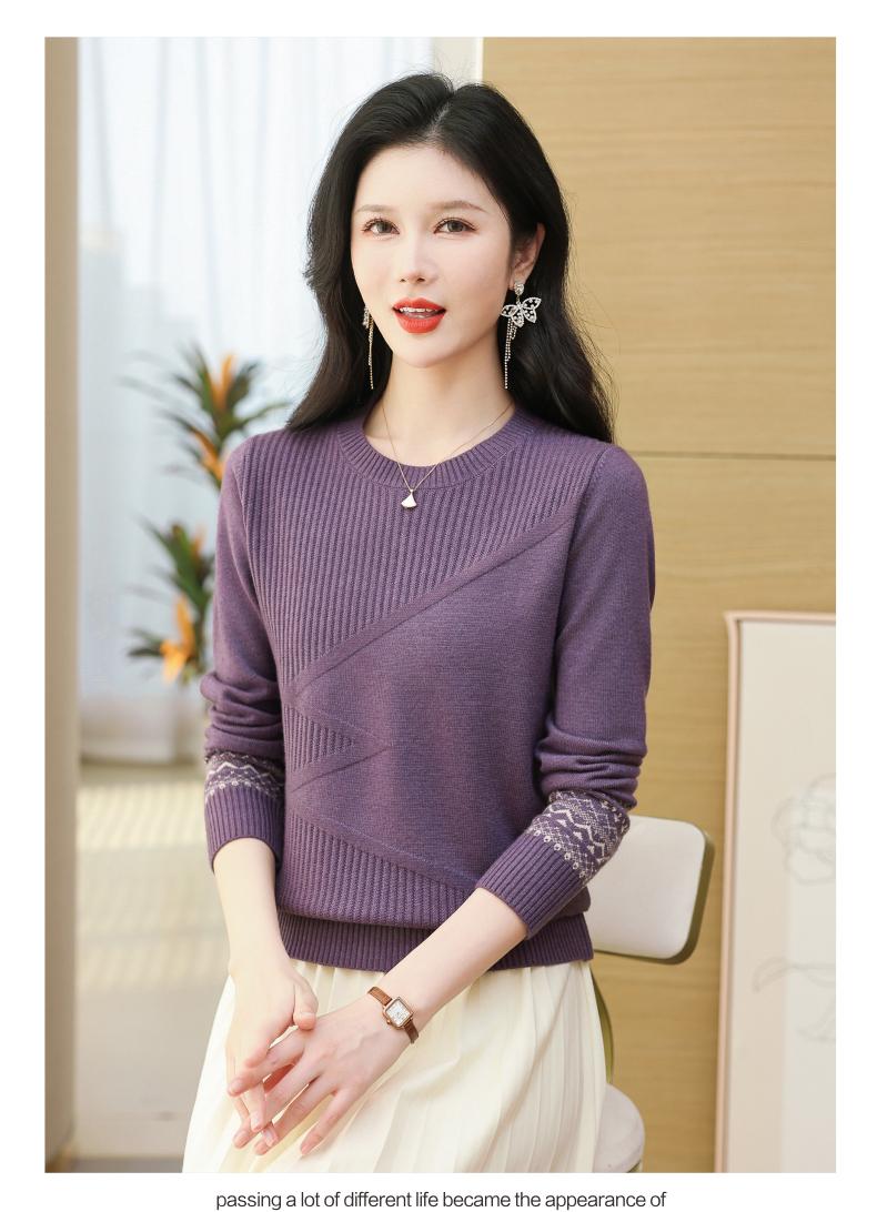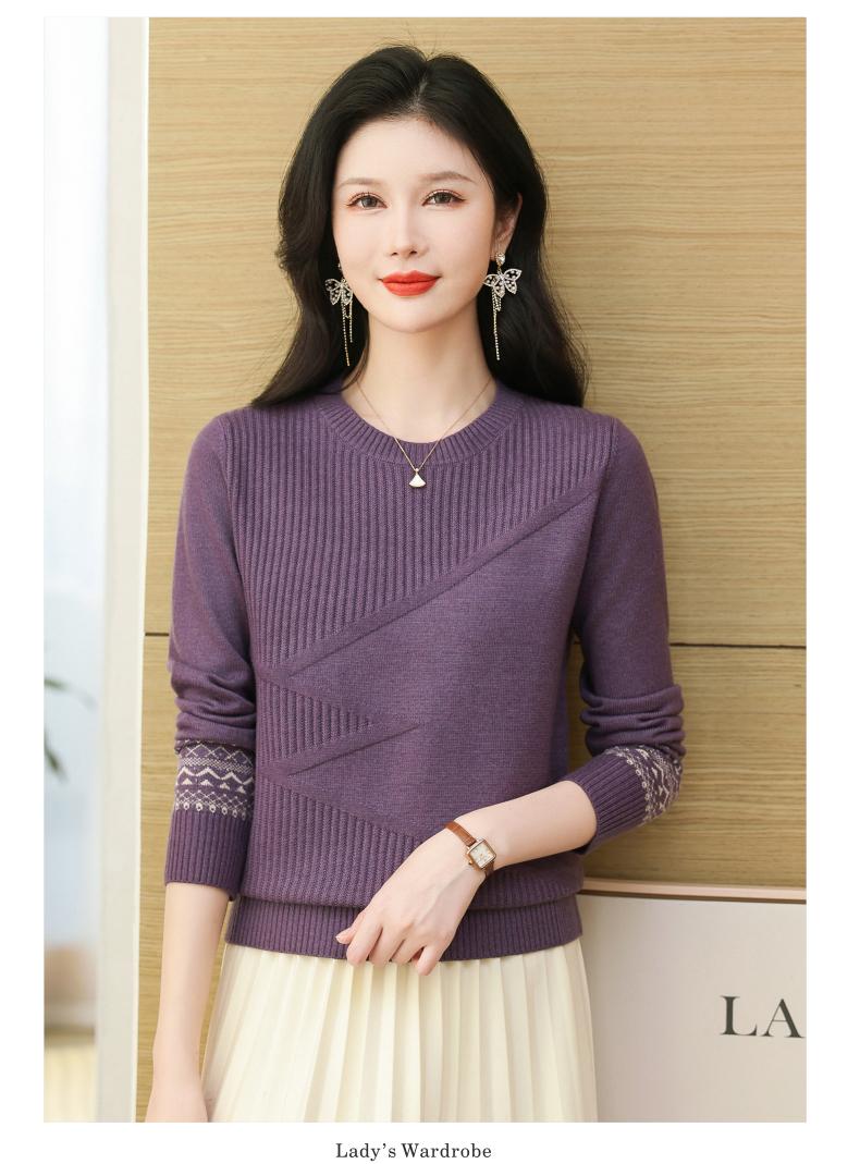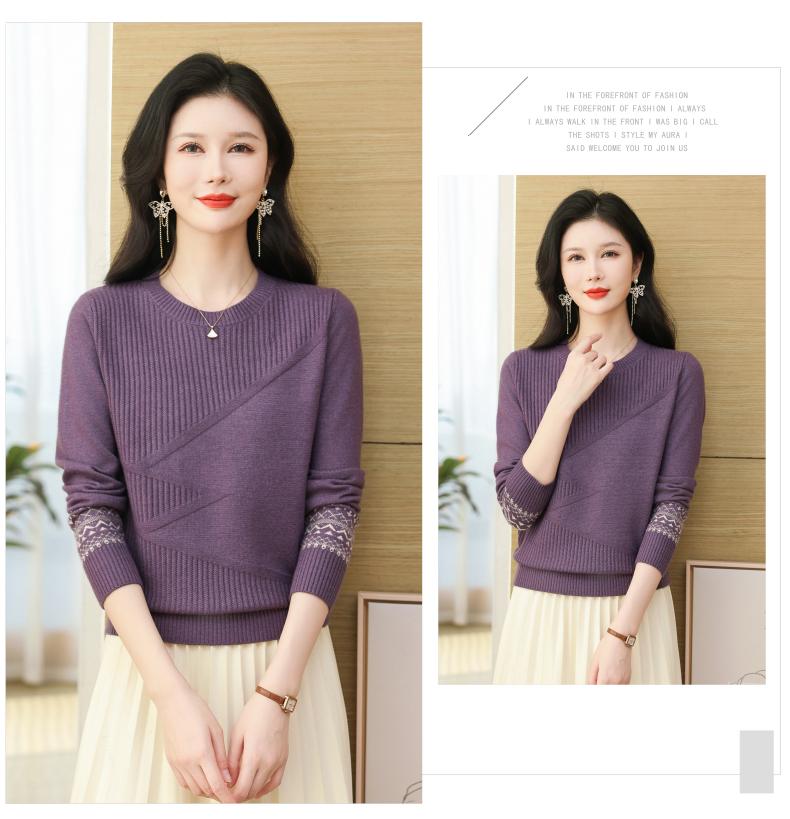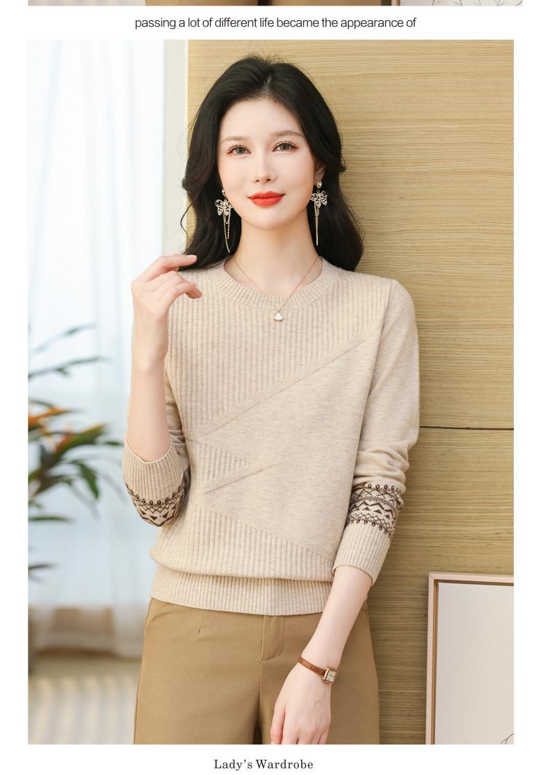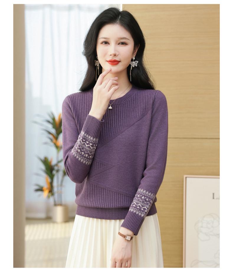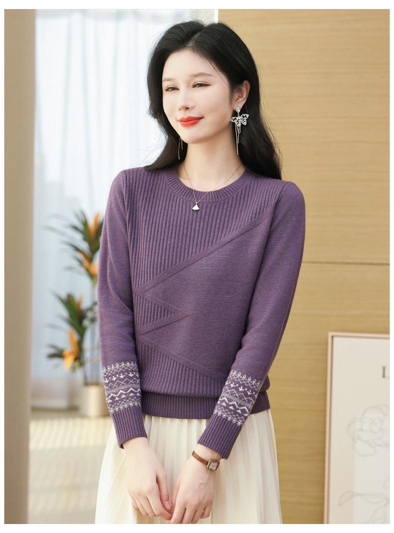 Camisa de punto con descuento de marca para mujer 2024 nueva primavera y otoño cuello redondo manga larga suéter jacquard camisa de fondo ropa superior moda