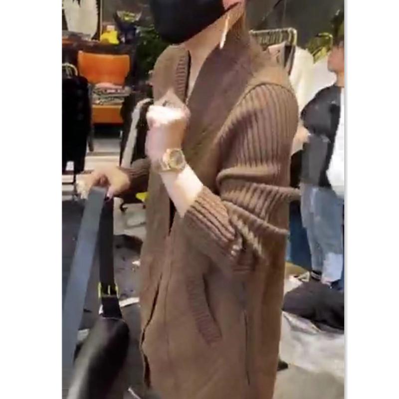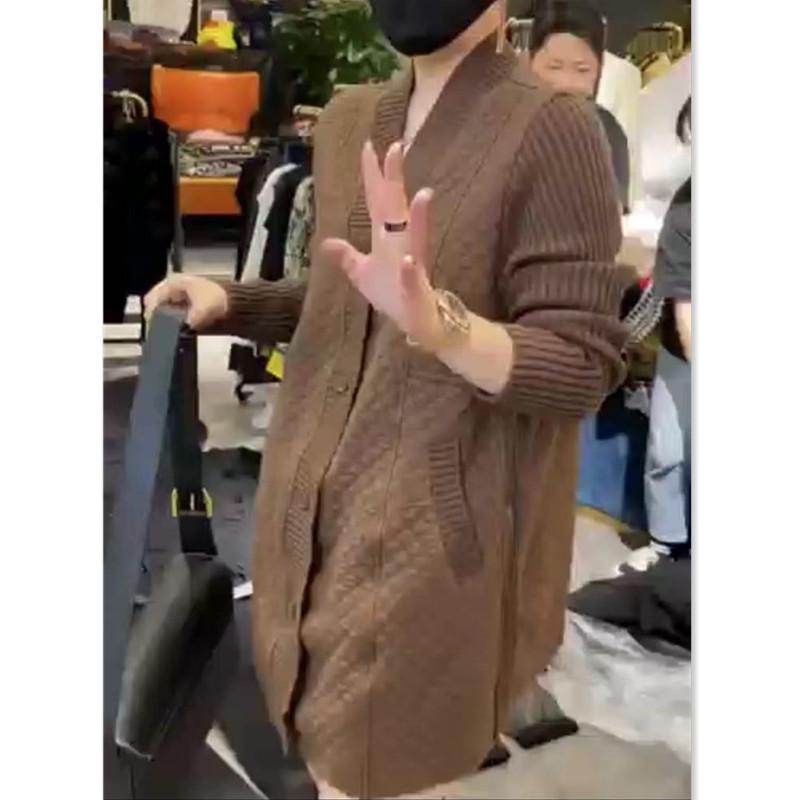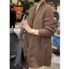 88173 Big Love Meiyuan 2025 Nuevo Estilo de Invierno Chaqueta de Manga Tejida de Largo Medio de Moda con Botonadura Sencilla para Mujer