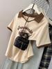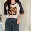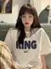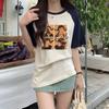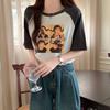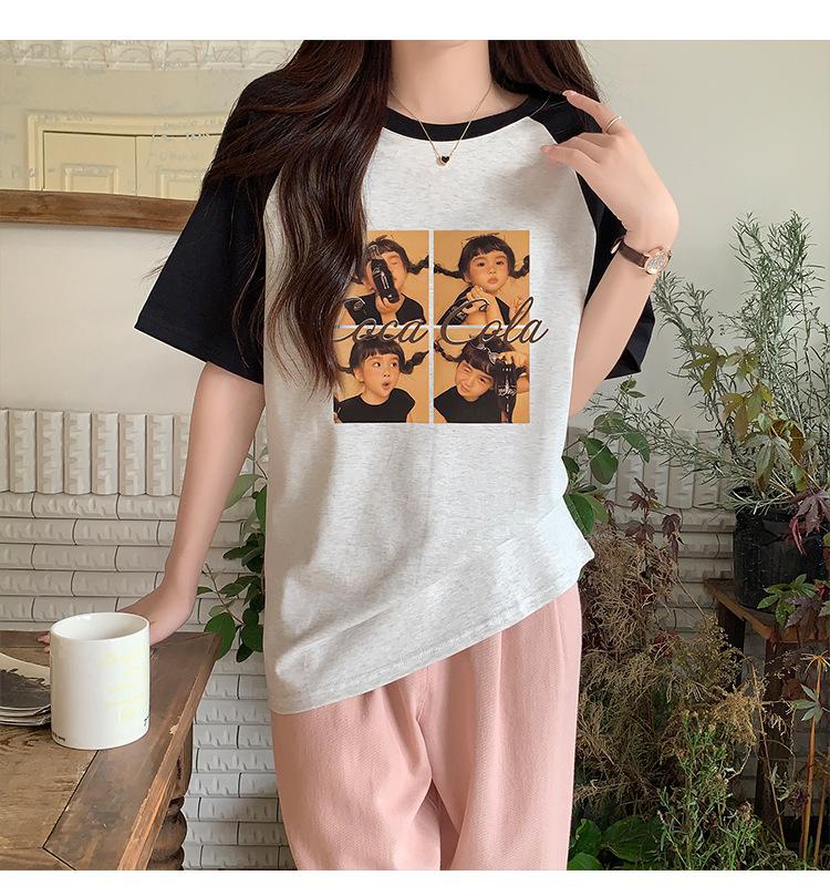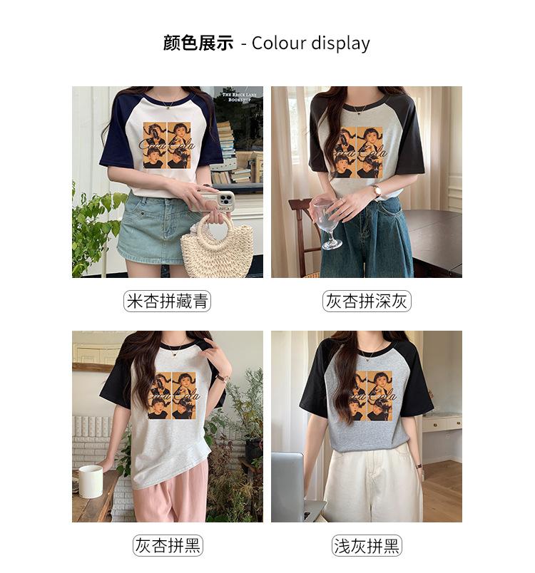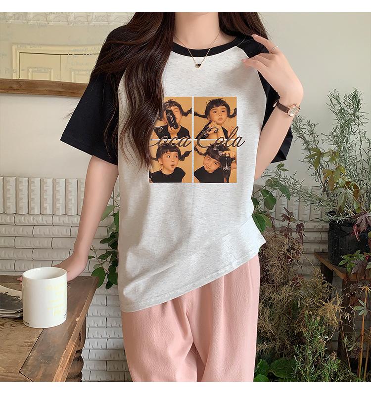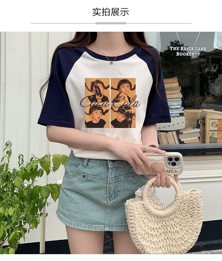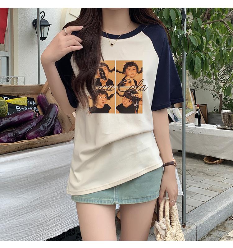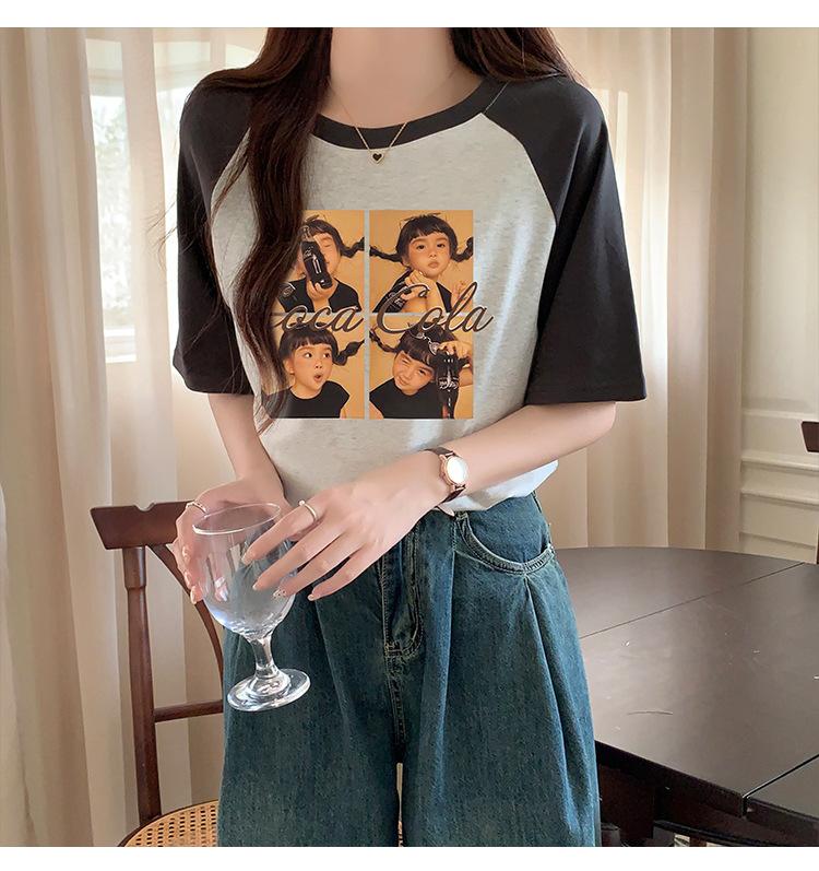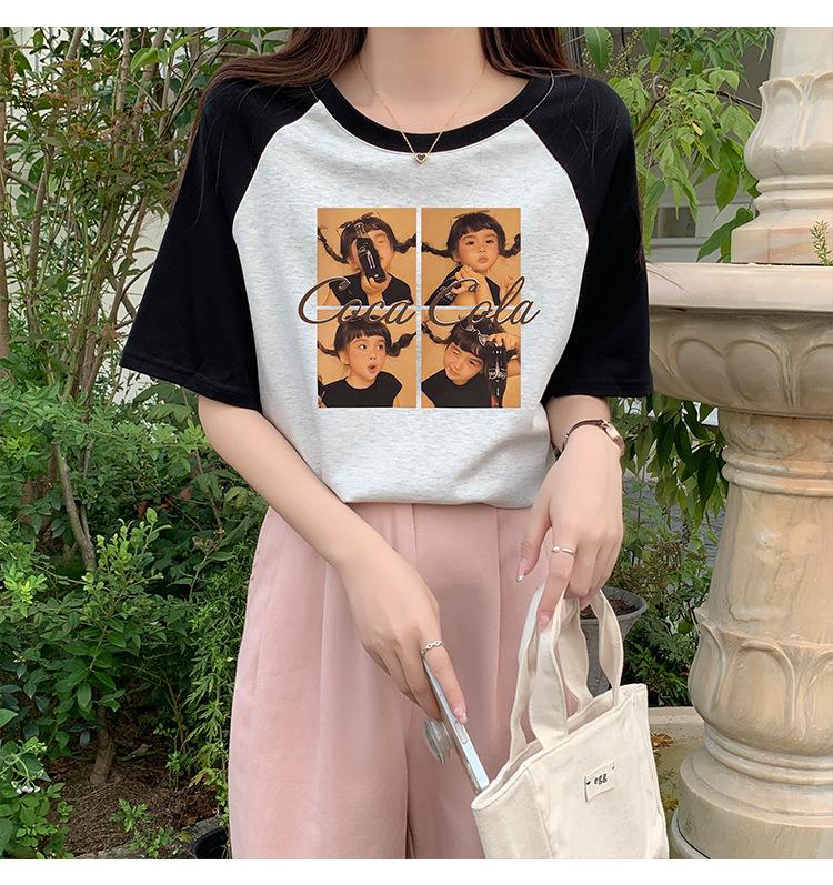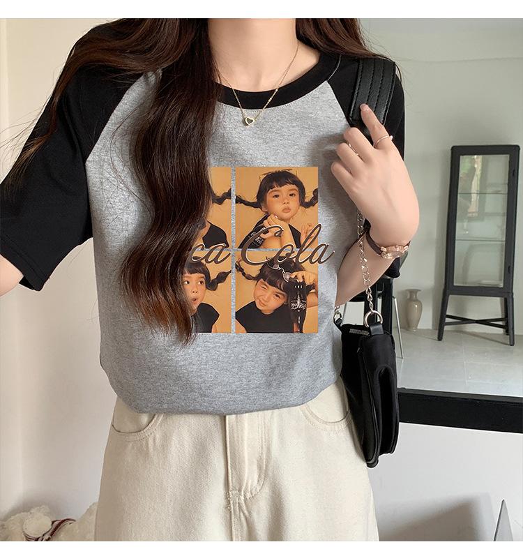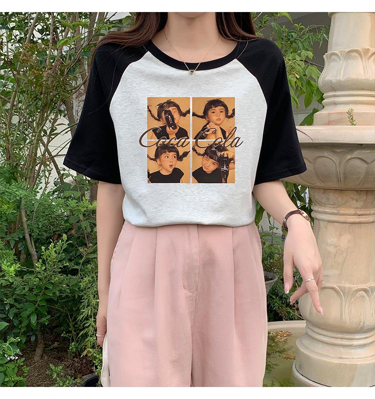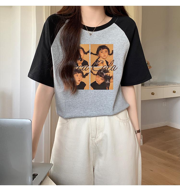 Camiseta de manga raglán retro estilo americano para mujer, diseño de verano de manga corta, holgada, talla pequeña