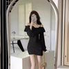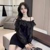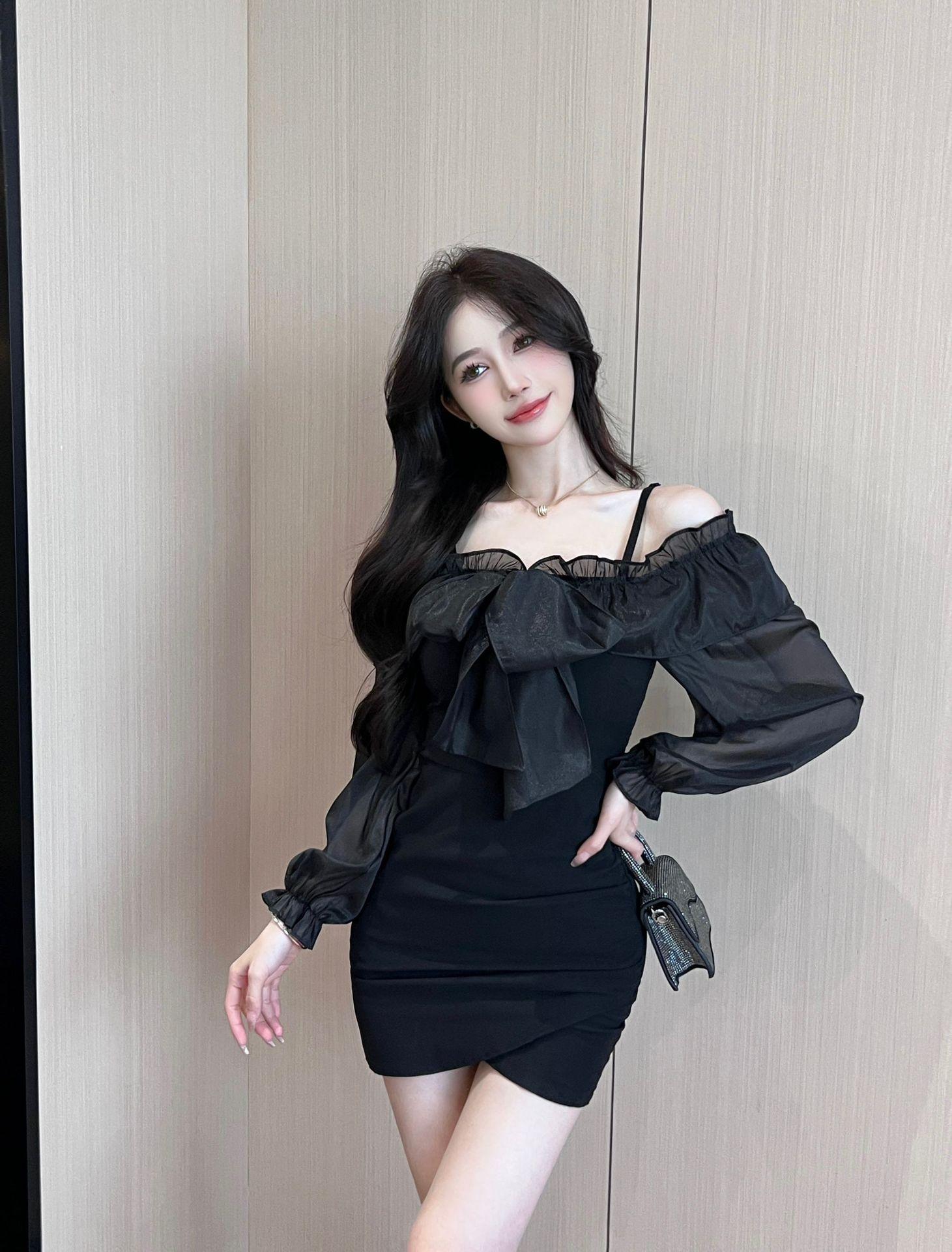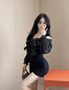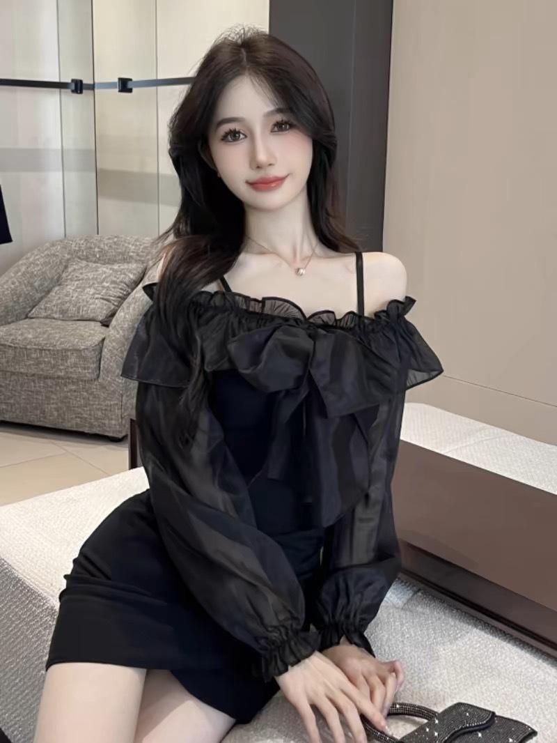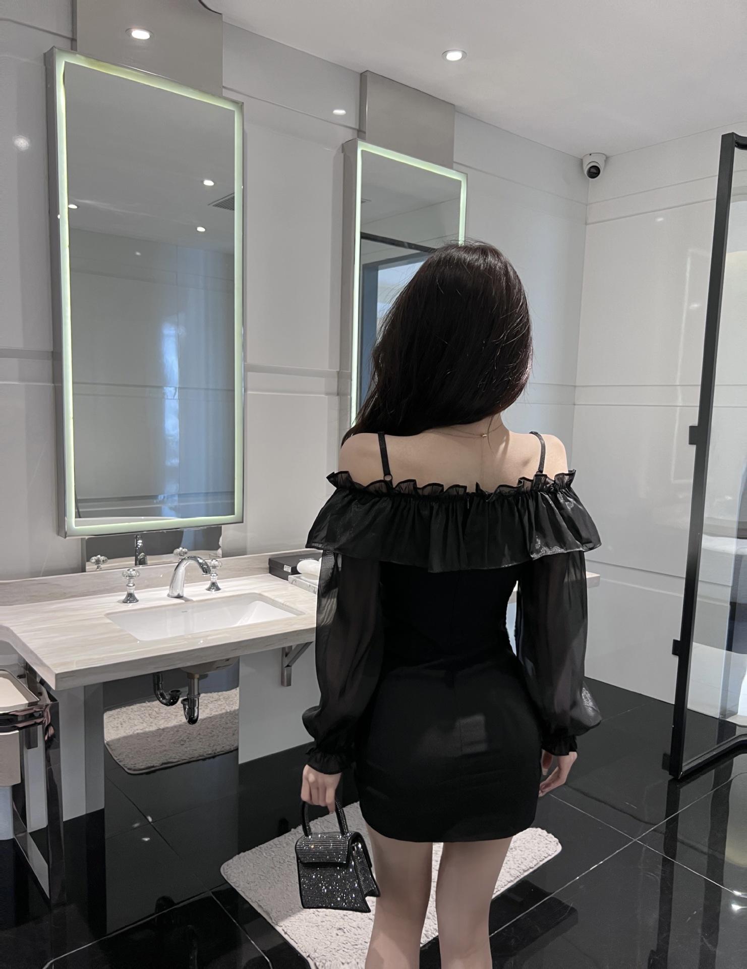 Vestido plisado ajustado con manga larga y volantes para primavera y verano con falda a la cadera con tirantes al hombro estilo Pure Wish