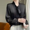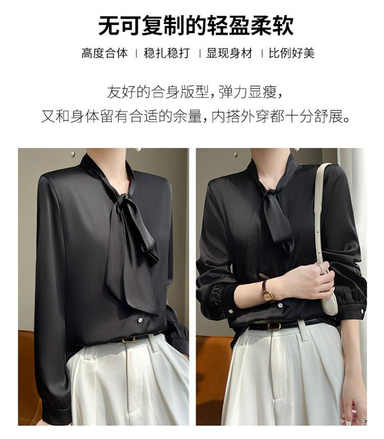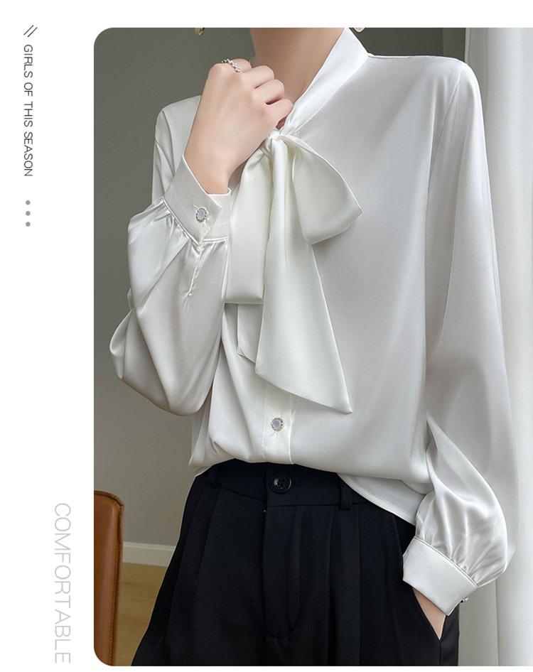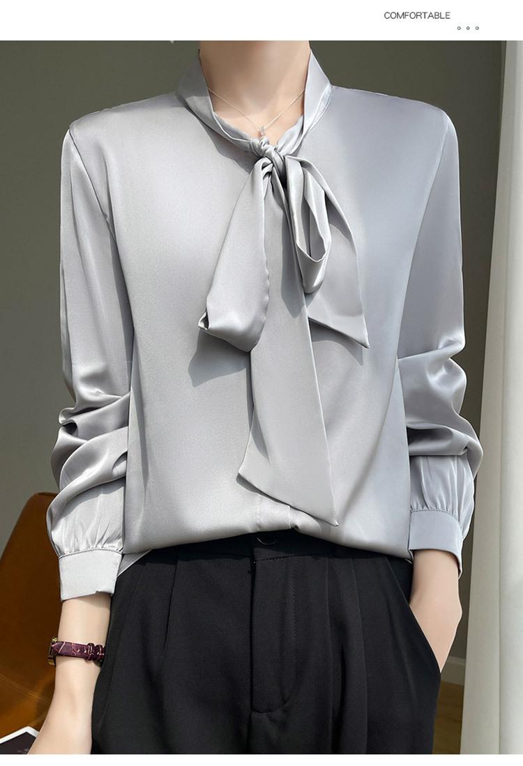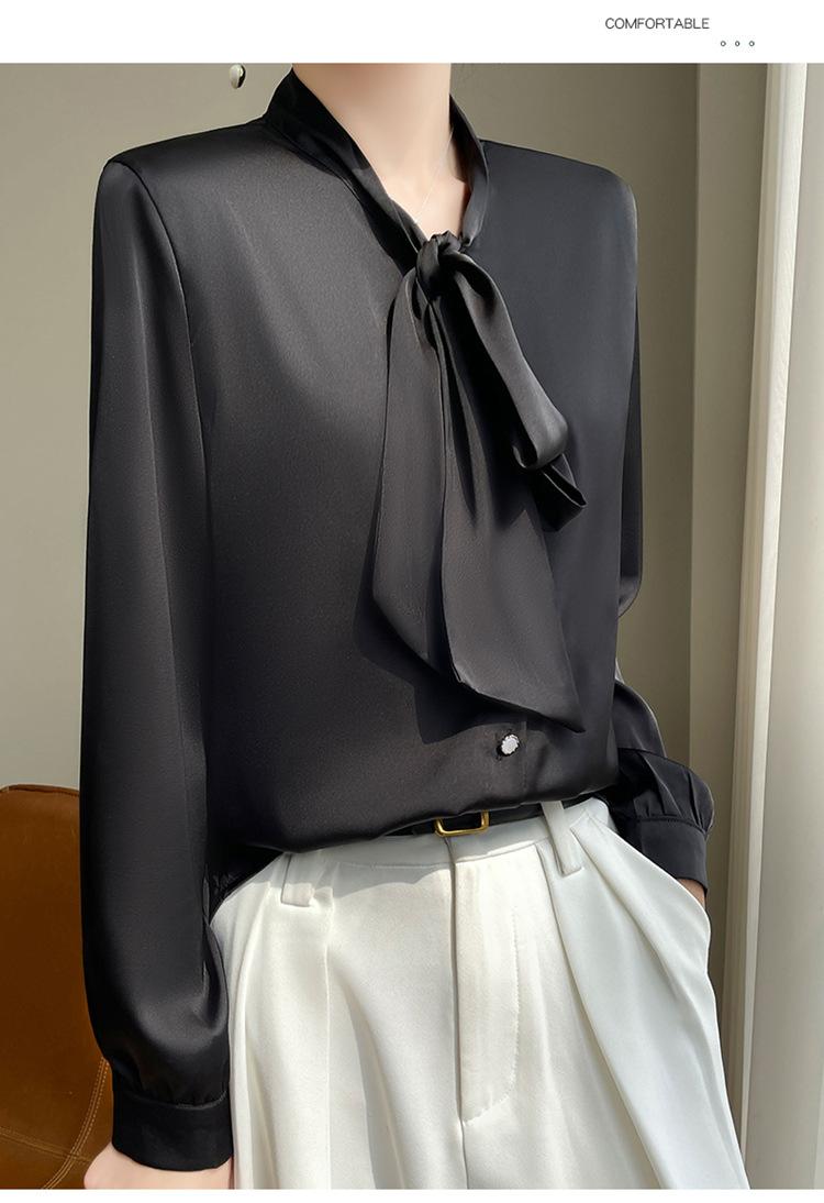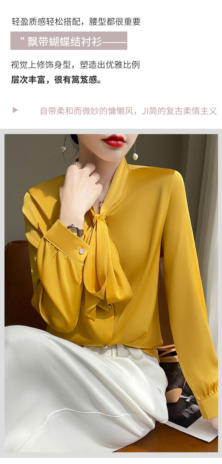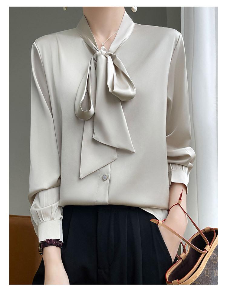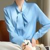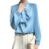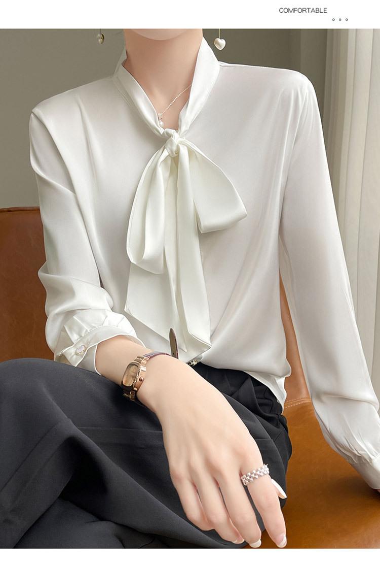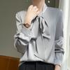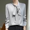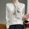 | Camisa de seda con lazo para mujer, nuevo diseño de primavera 2023, camisa de moda de nicho, top ajustado de seda morera |