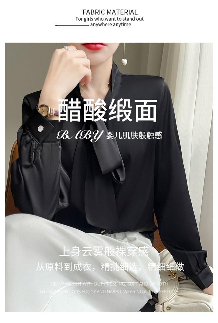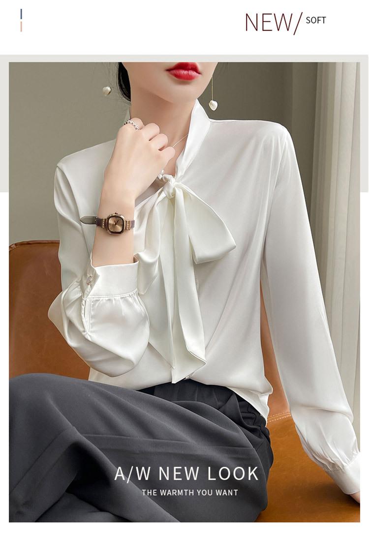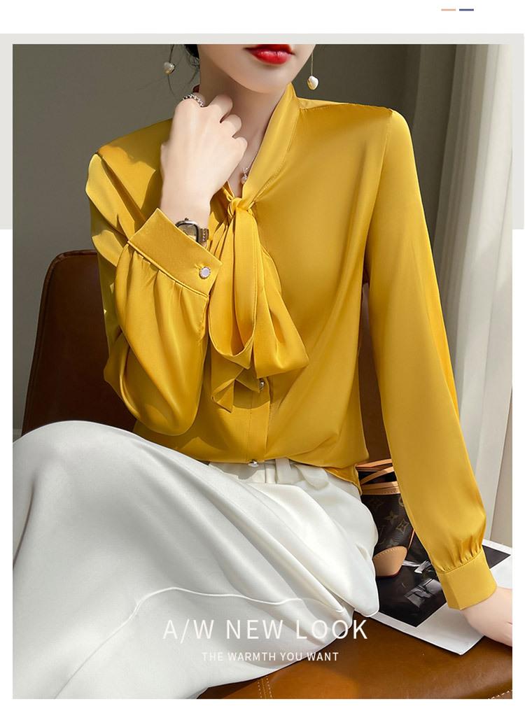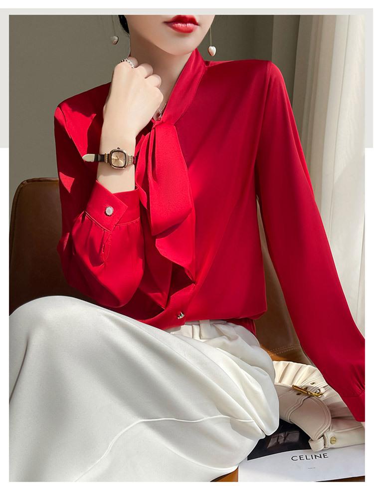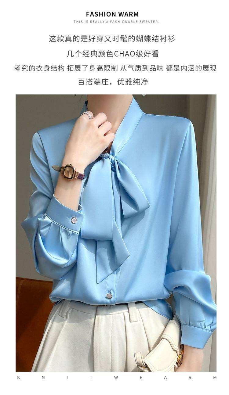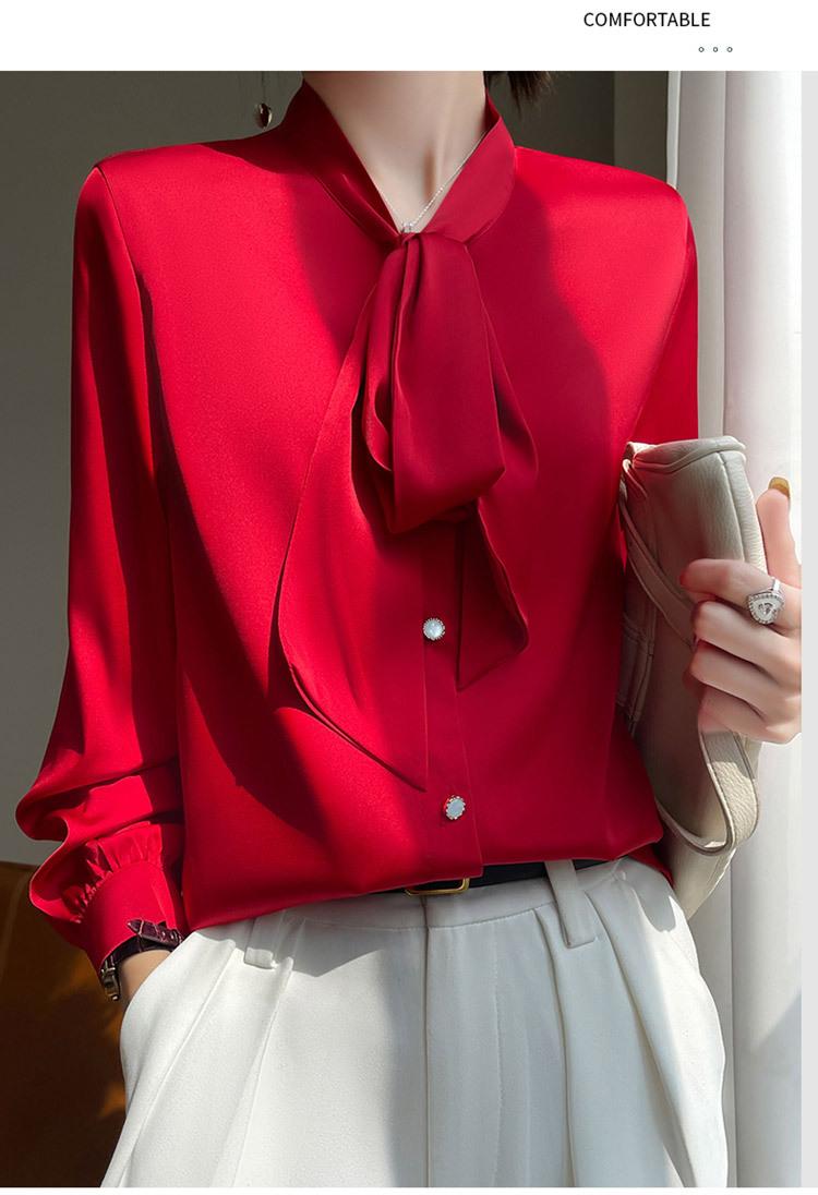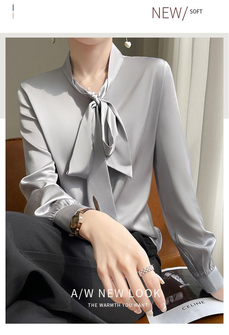 | Camisa de seda con lazo para mujer, nuevo diseño de primavera 2023, camisa de moda de nicho, top ajustado de seda morera |