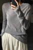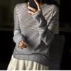 Camiseta básica de punto fino merino para mujer 2023 primavera suéter de rayas blancas y negras diseño nicho ligera y delgada