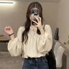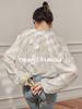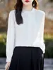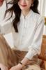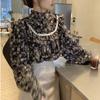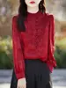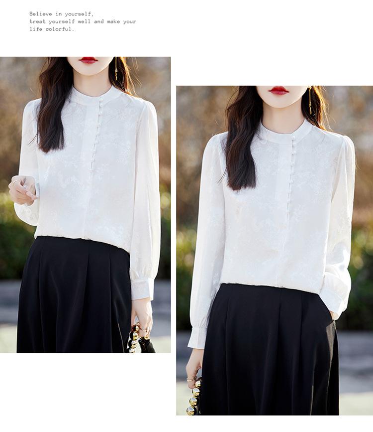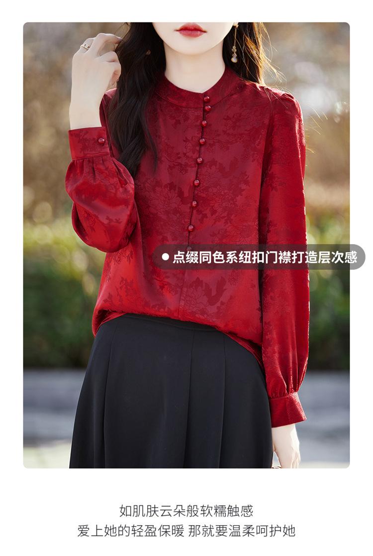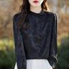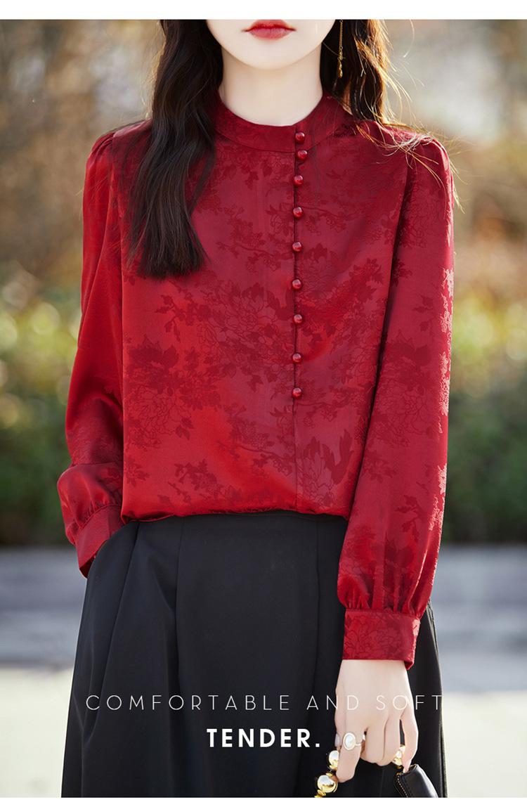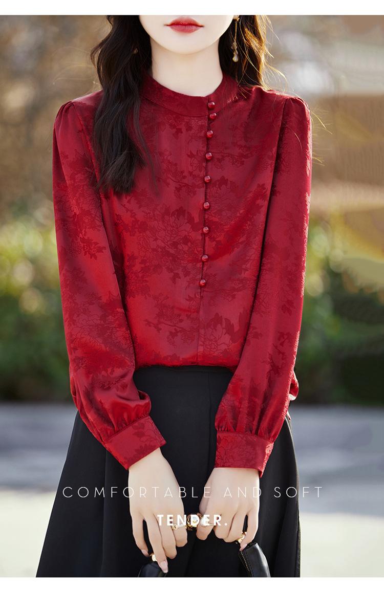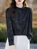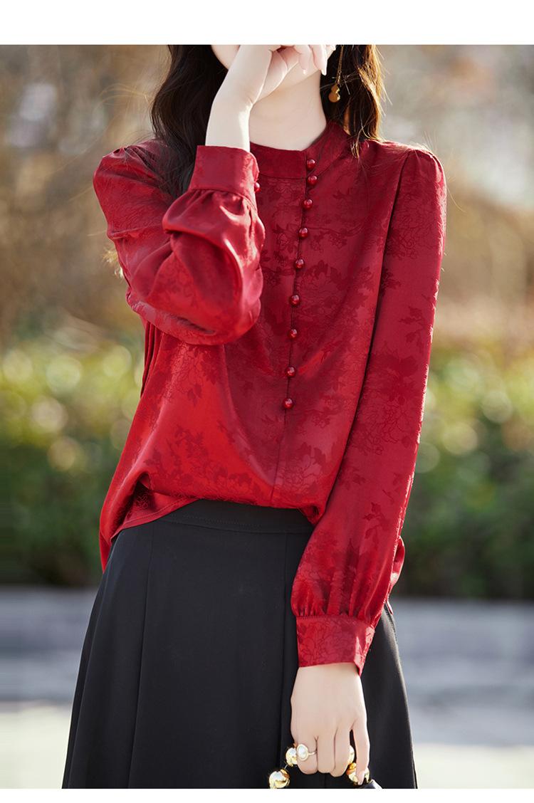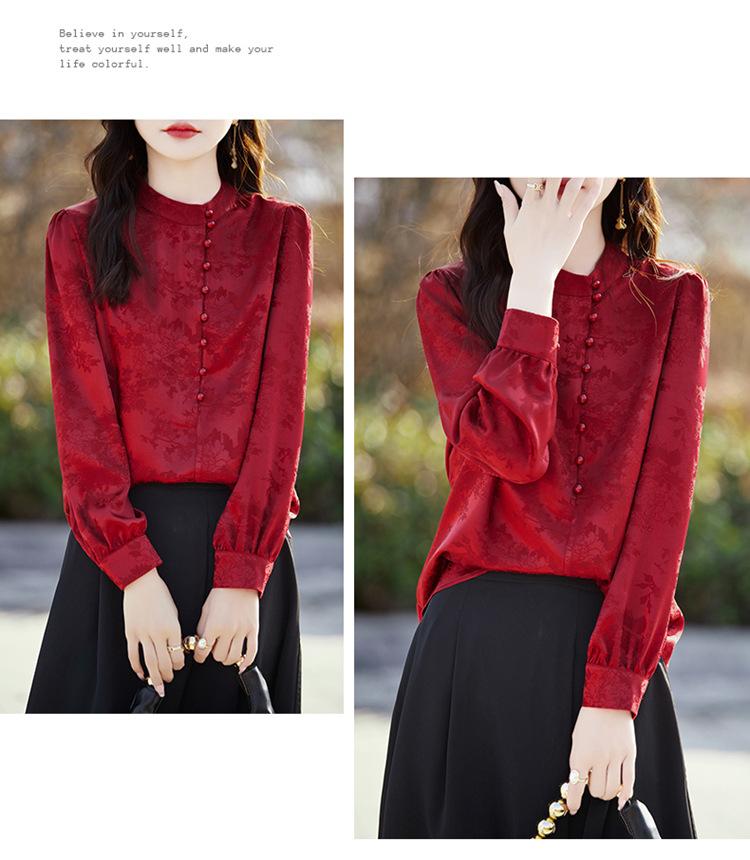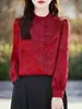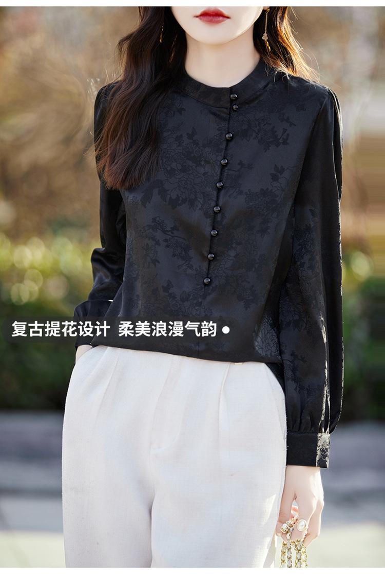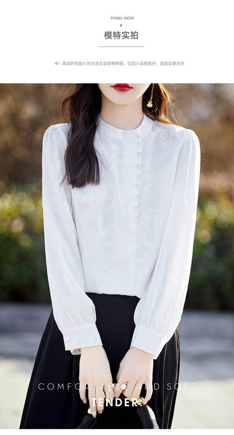 Camisa jacquard retro francesa de cuello alto para mujer, manga larga, de alta calidad, estilo chino nuevo, diseño de nicho con sentido del diseño de hebilla de perla