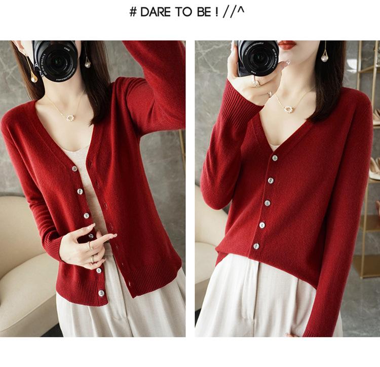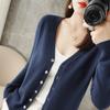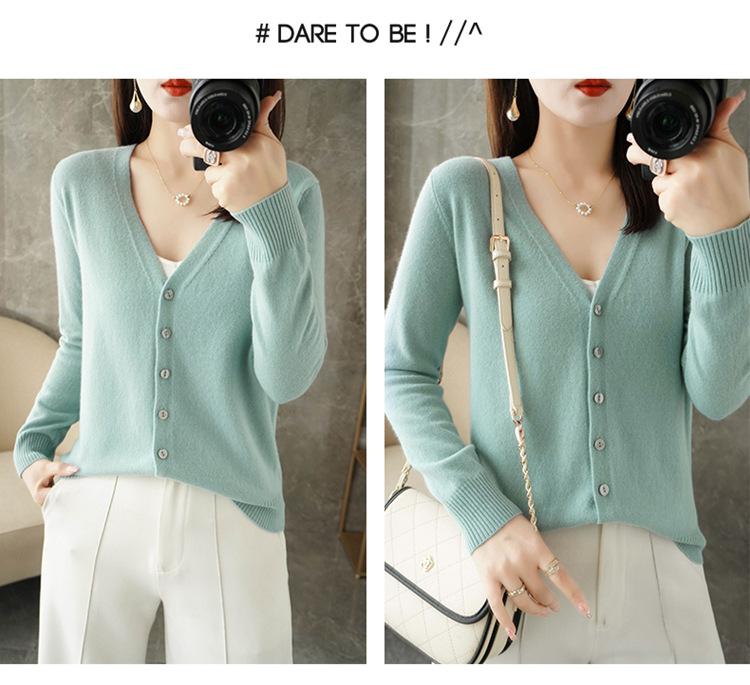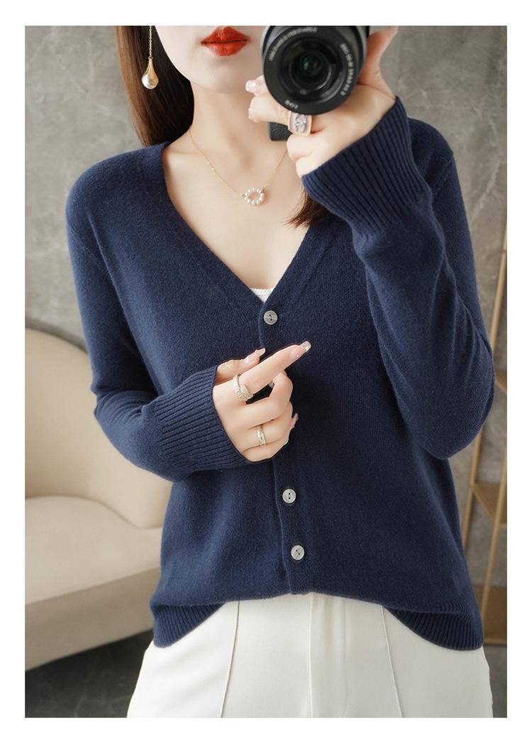Cárdigan de punto nuevo de primavera y otoño para mujer, suéter con cuello en V que combina con todo, abrigo exterior de manga larga