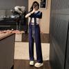 Traje Deportivo Europeo de Manga Corta para Mujer Verano 2025 Nueva Moda y Diseño Elegante Casual Pantalones Anchos Conjunto de Dos Piezas
