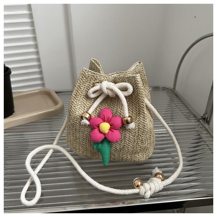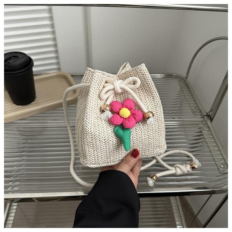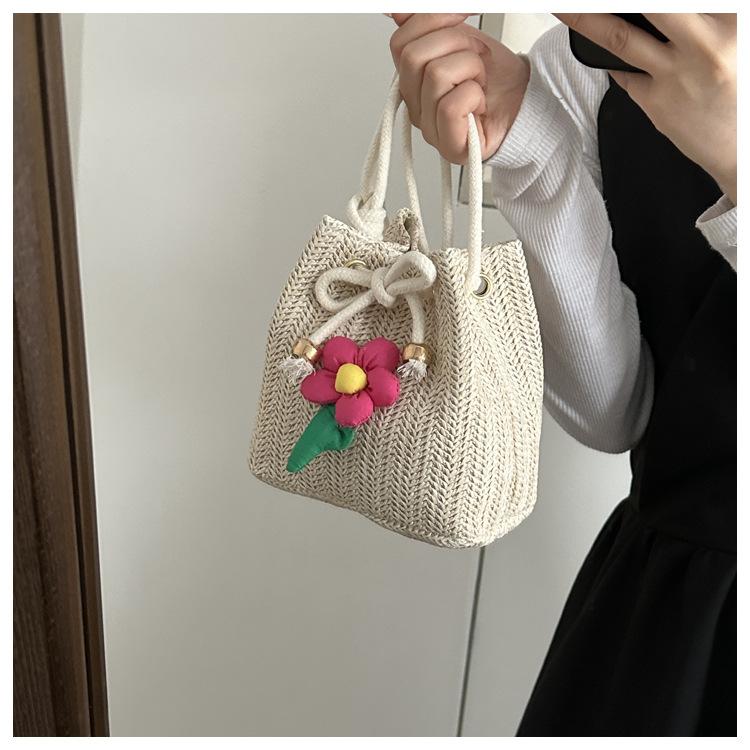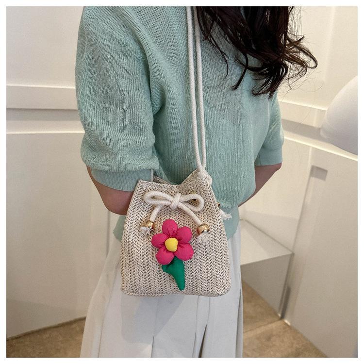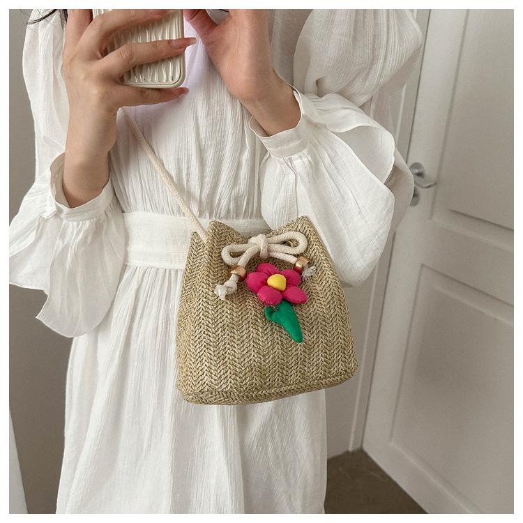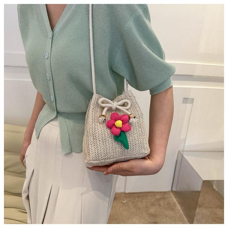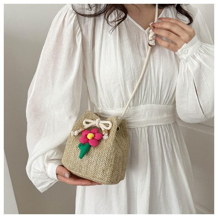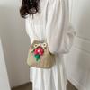 Bolso de paja de verano Sweet Lady para mujer, novedad de 2023, bolso de cubo tejido, bandolera pequeña