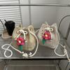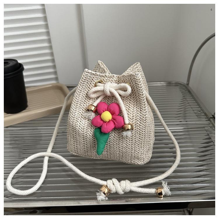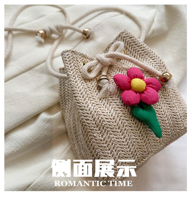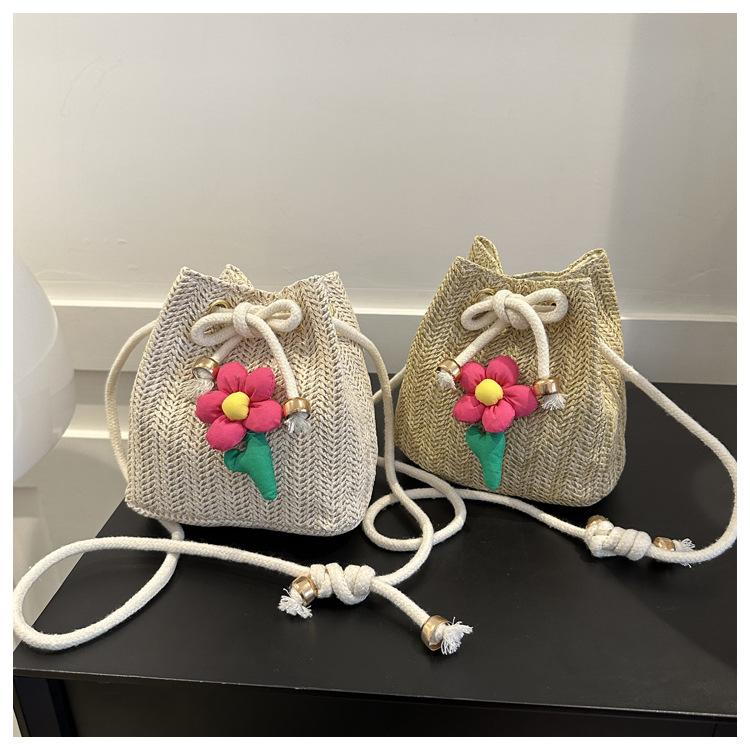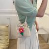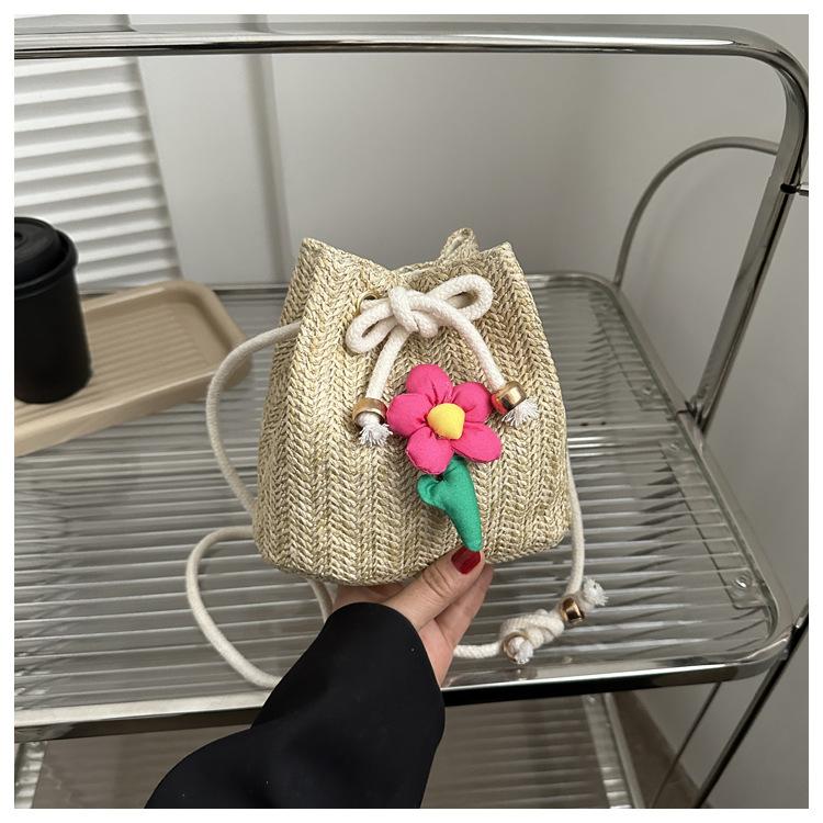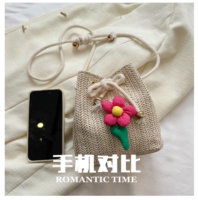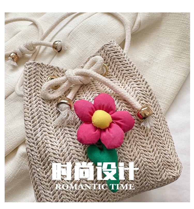 Bolso de paja de verano Sweet Lady para mujer, novedad de 2023, bolso de cubo tejido, bandolera pequeña