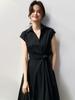 Vestido Camisa de Algodón Elegante y Gracioso de Verano Estilo Francés con Diseño Plisado, Cintura Ceñida con Lazo, Adelgazante 15336