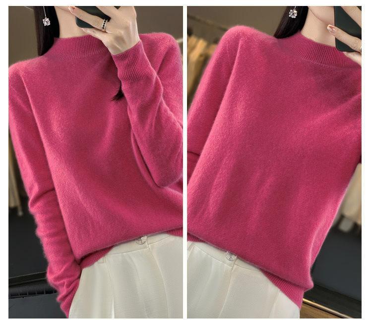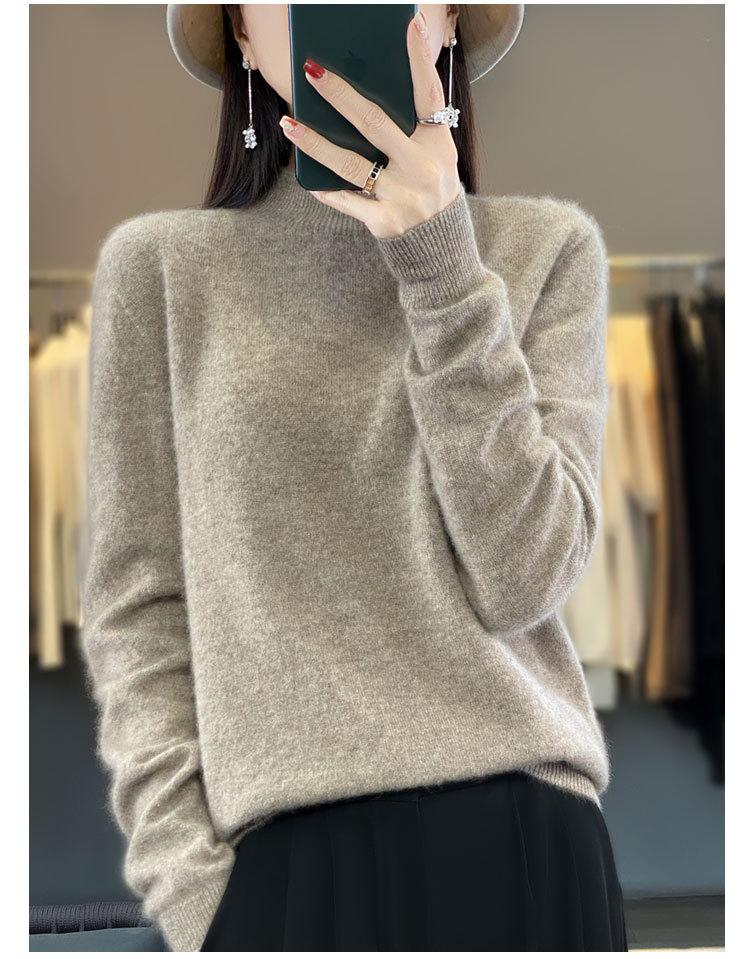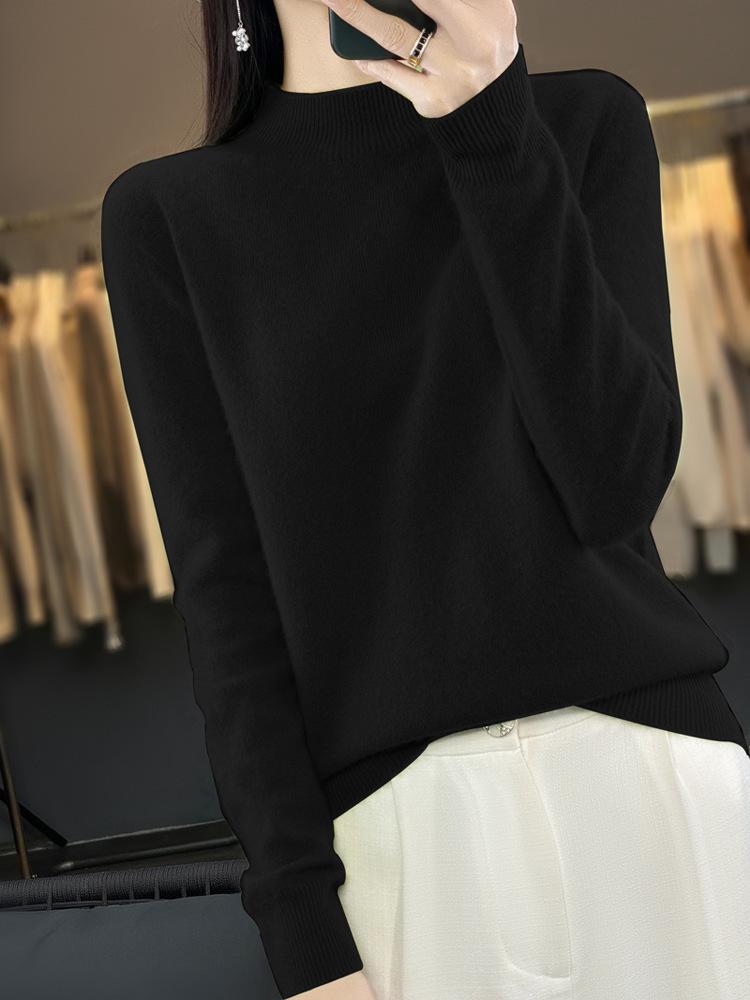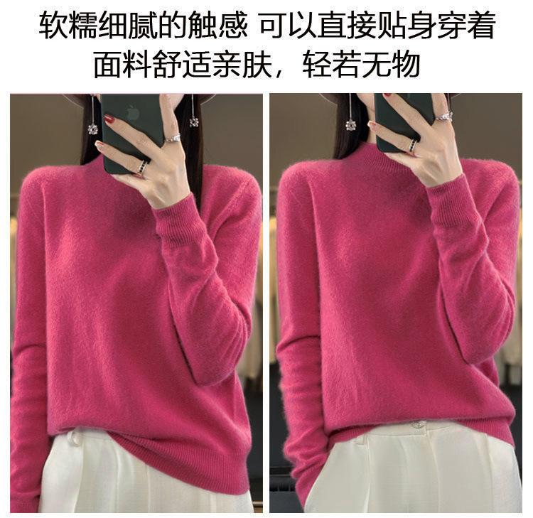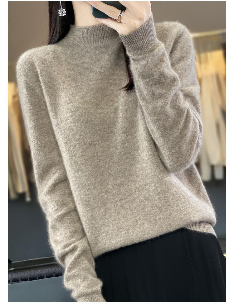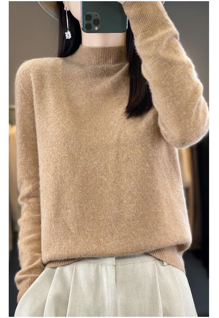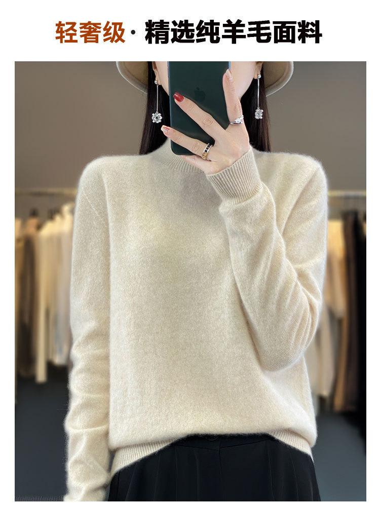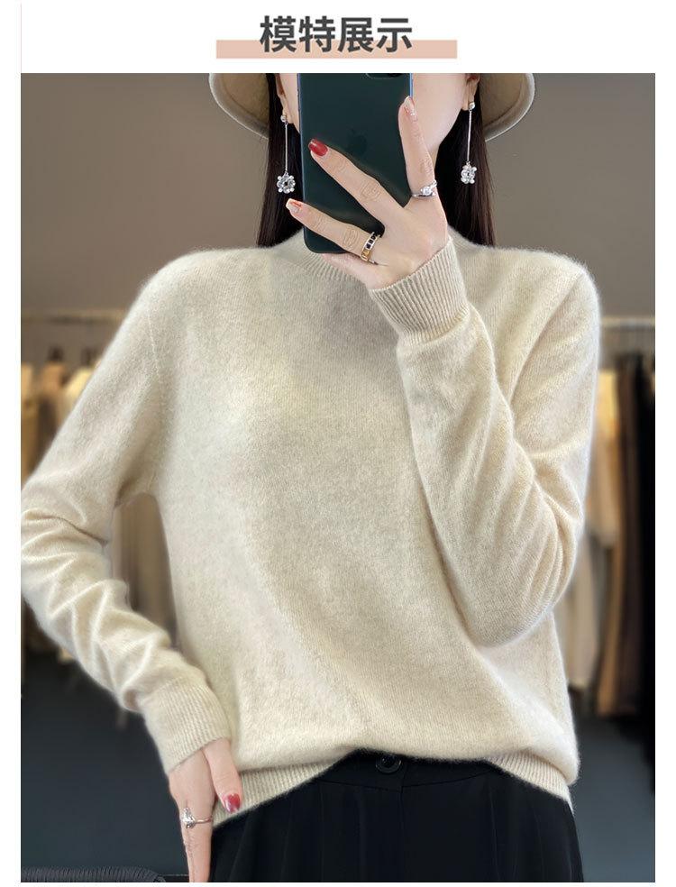 Suéter de Lana Pura de Primera Línea Listo para Usar Otoño e Invierno para Mujer, Suéter de Cuello Medio Alto, Estilo Otoño e Invierno, Camisa de Fondo Tejida