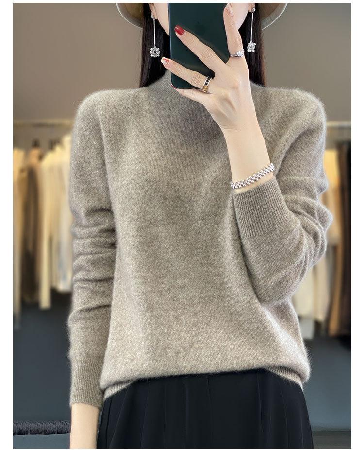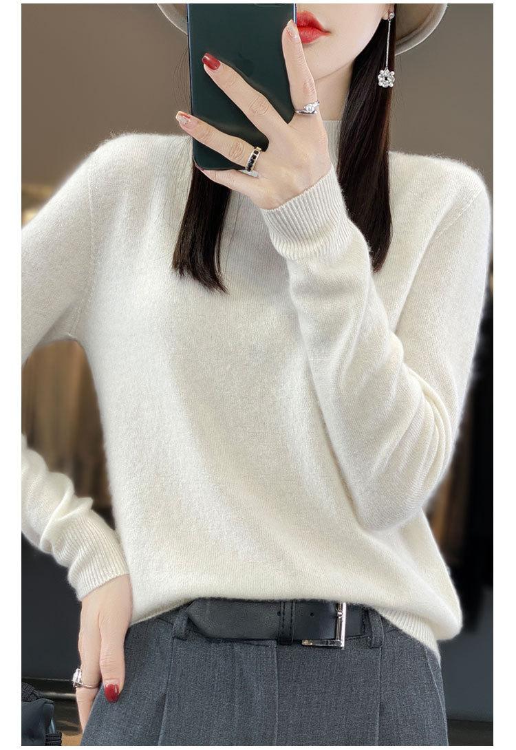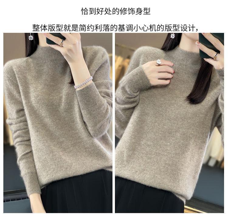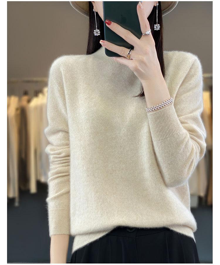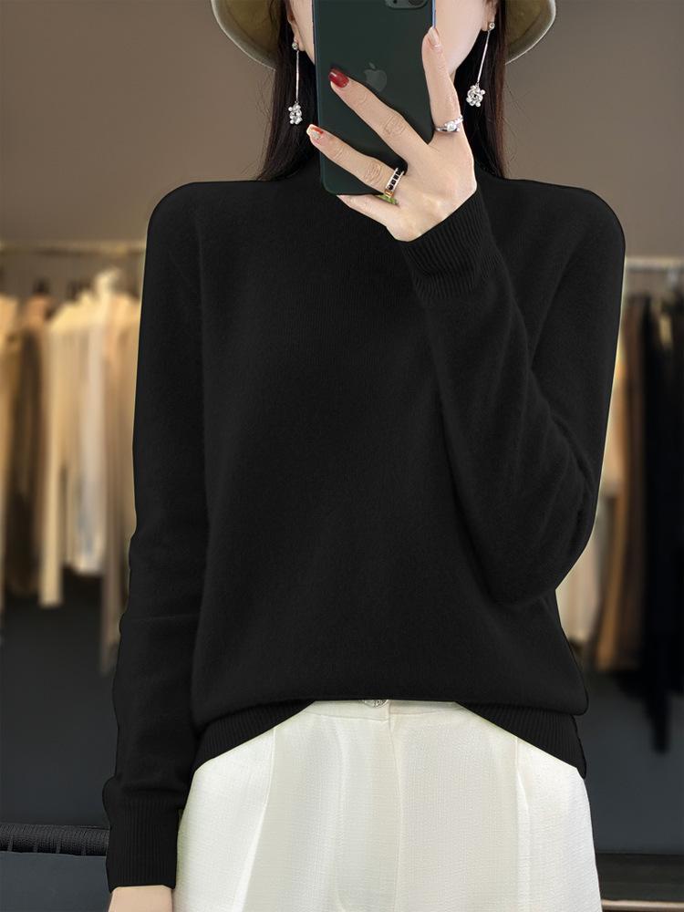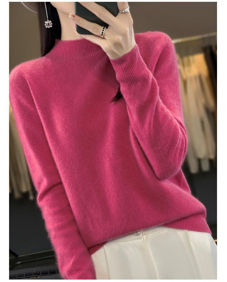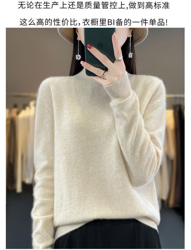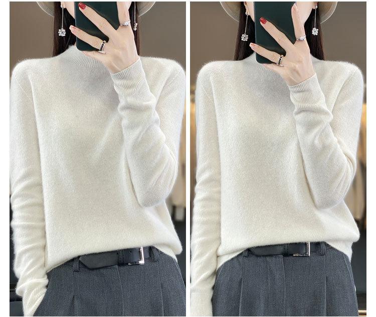Suéter de Lana Pura de Primera Línea Listo para Usar Otoño e Invierno para Mujer, Suéter de Cuello Medio Alto, Estilo Otoño e Invierno, Camisa de Fondo Tejida
