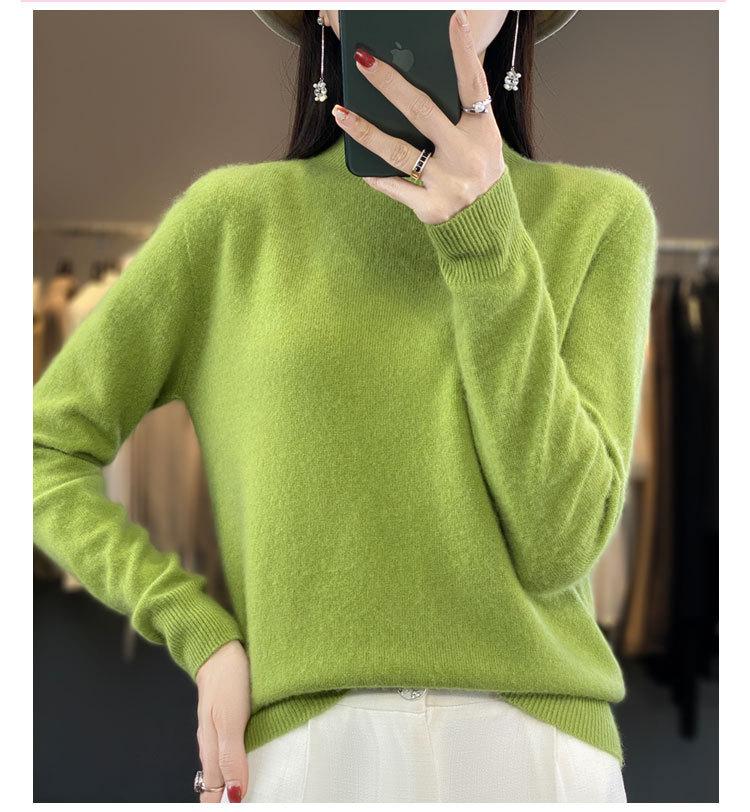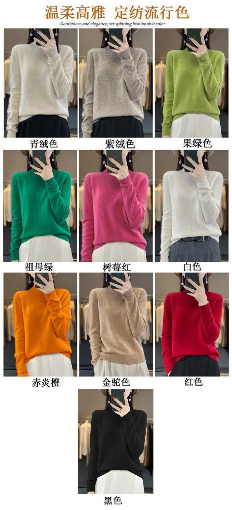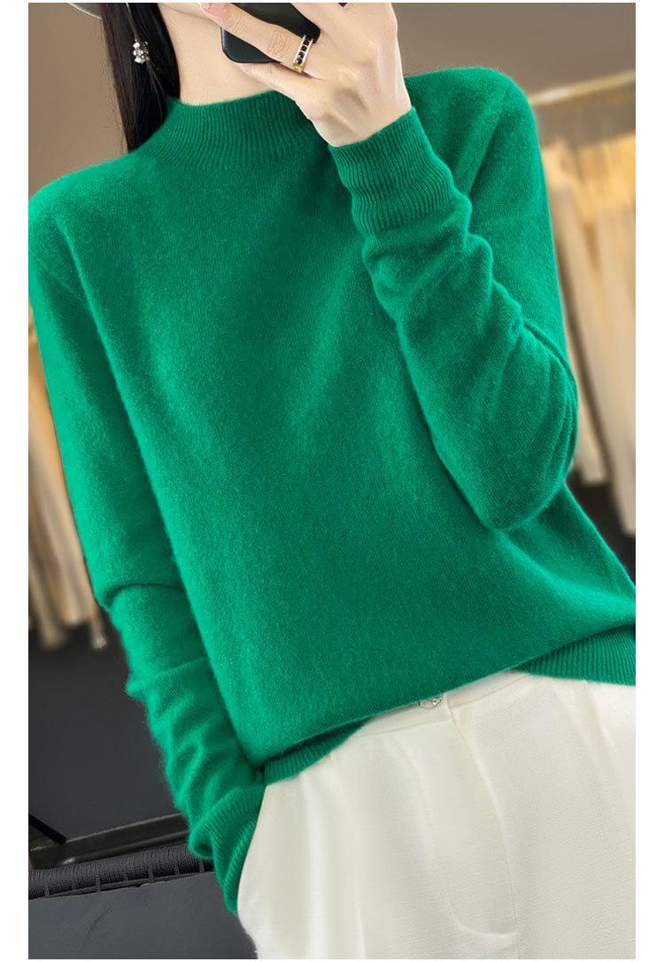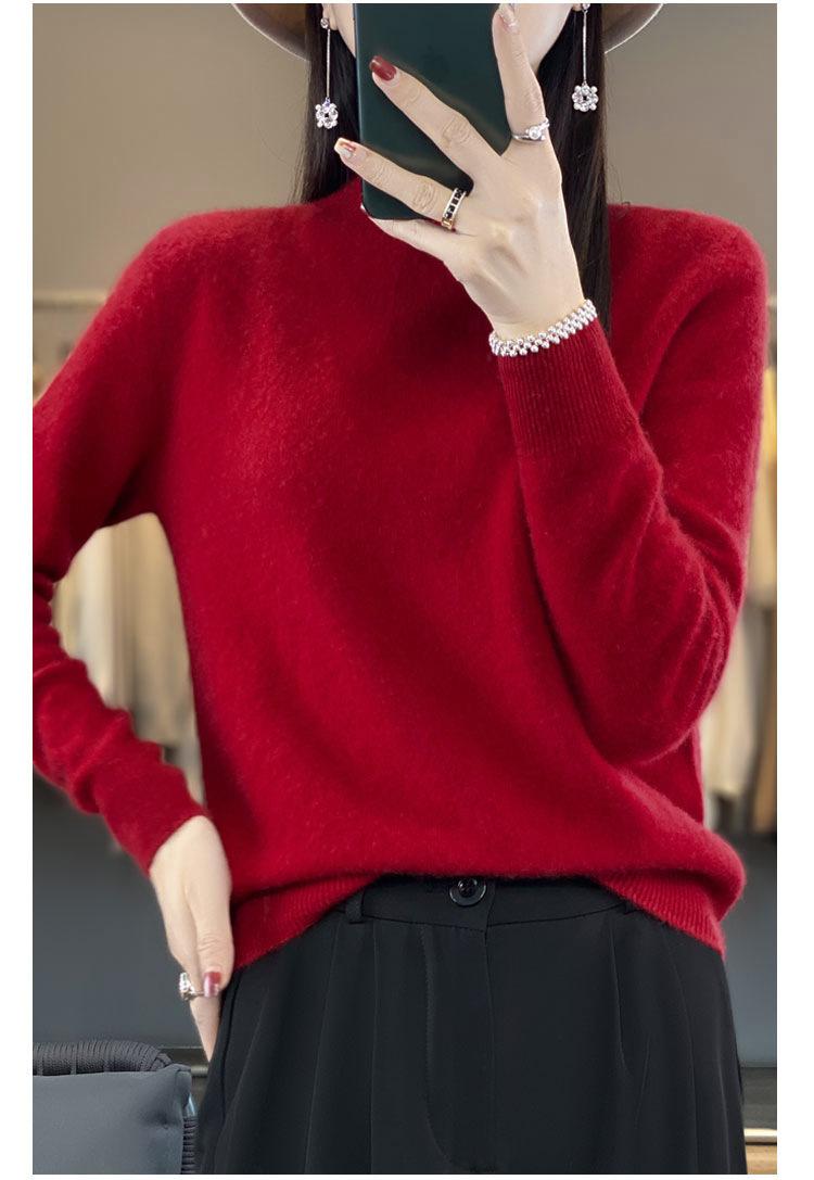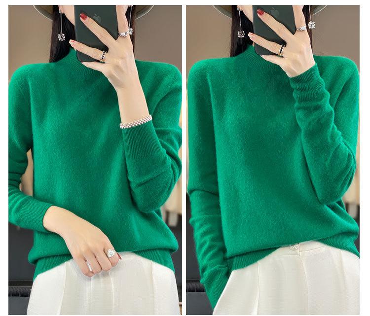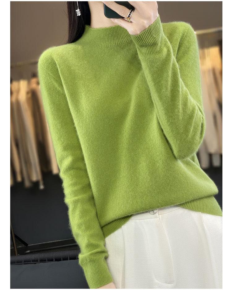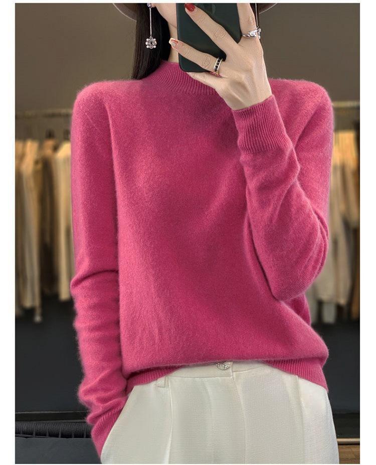Suéter de Lana Pura de Primera Línea Listo para Usar Otoño e Invierno para Mujer, Suéter de Cuello Medio Alto, Estilo Otoño e Invierno, Camisa de Fondo Tejida