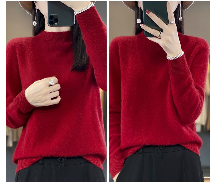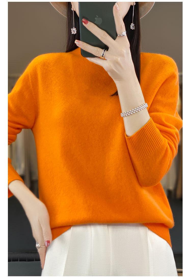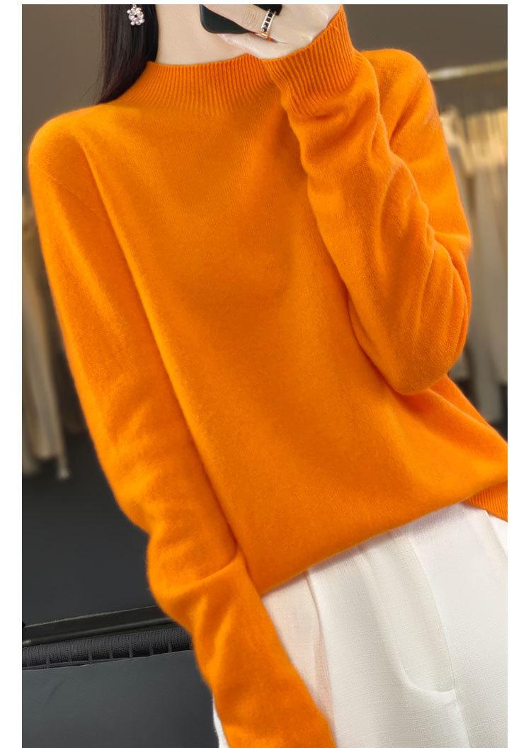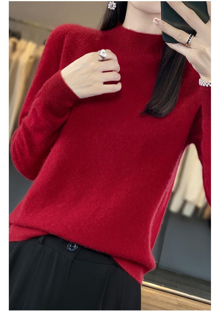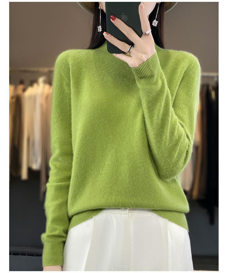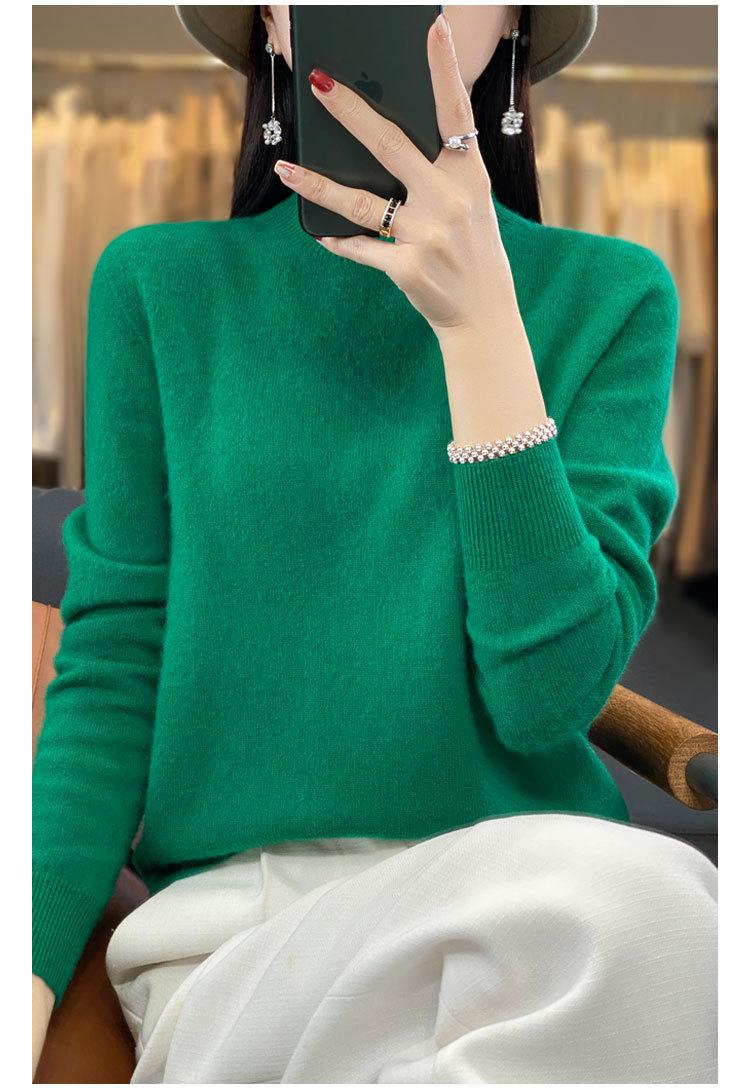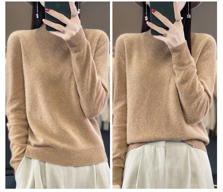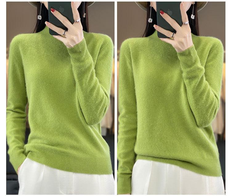 Suéter de Lana Pura de Primera Línea Listo para Usar Otoño e Invierno para Mujer, Suéter de Cuello Medio Alto, Estilo Otoño e Invierno, Camisa de Fondo Tejida