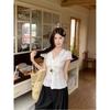 Camisa francesa de manga corta para mujer, nueva y elegante camisa de gasa de verano, elegante, elegante, holgada, con cuello en V.