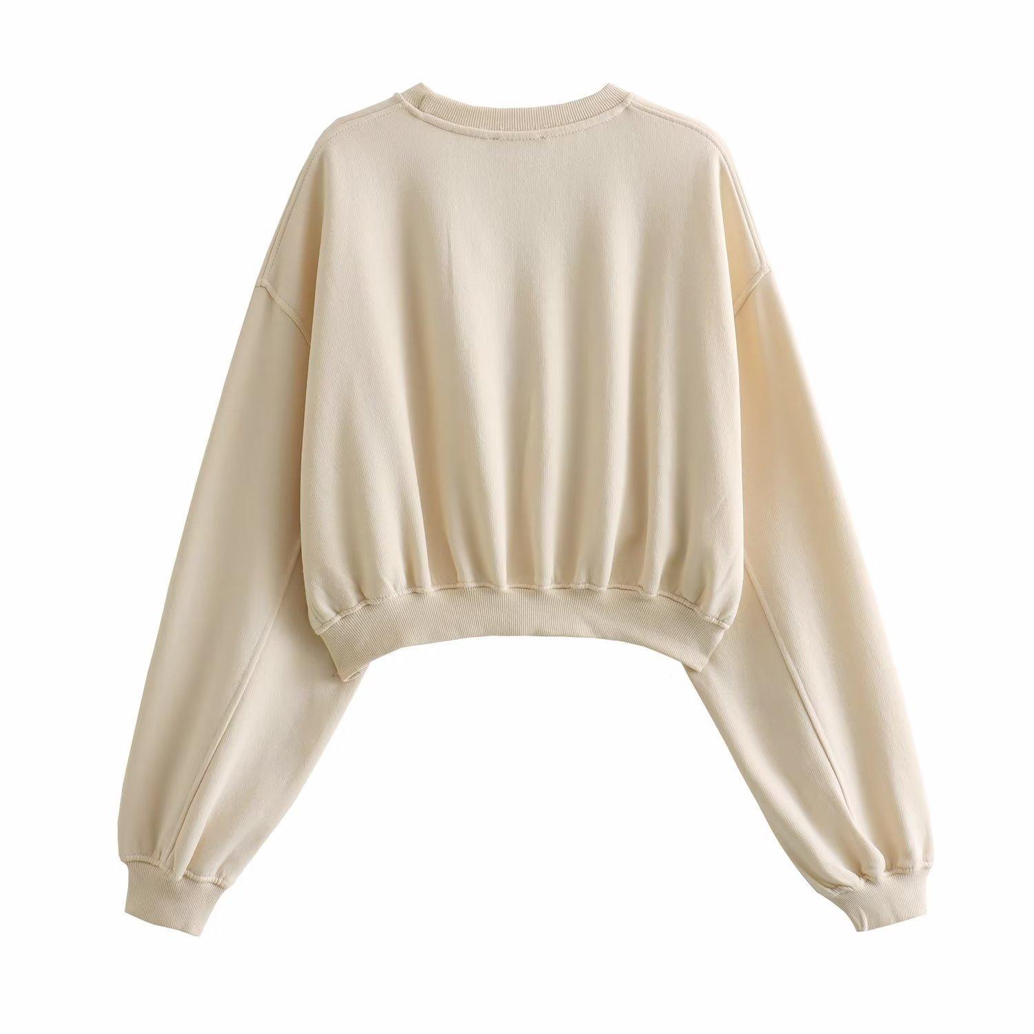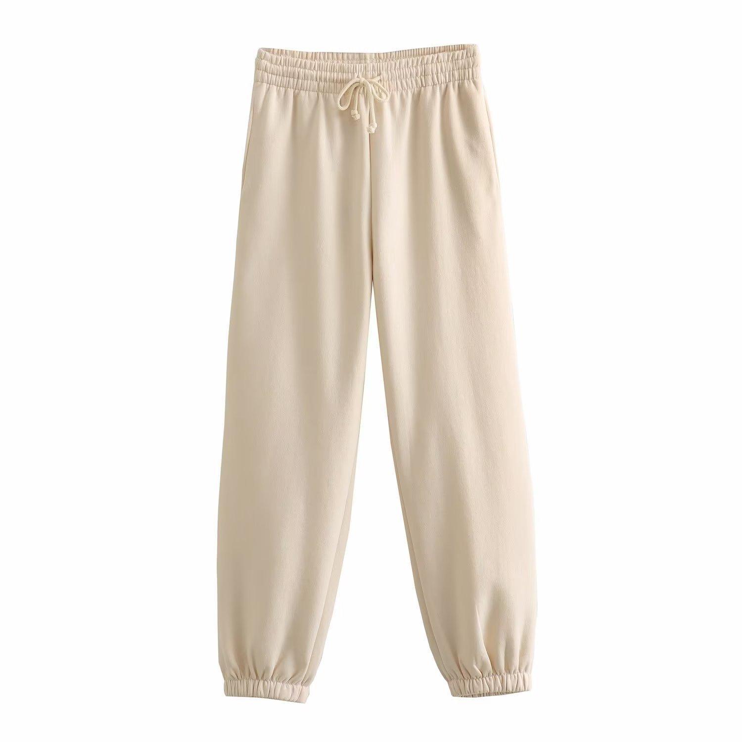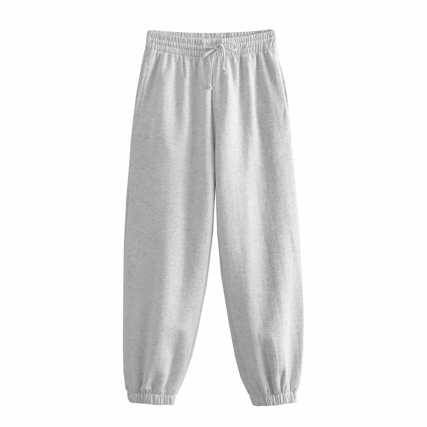 Ropa de mujer de principios de otoño, nueva, estilo europeo y americano, cuello redondo, color sólido, sudadera básica combinable, pantalones casuales de cintura alta, traje