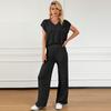 Conjunto de suéter básico de cuello redondo y pantalones casuales de cintura alta para mujer, estilo europeo y americano, 9757