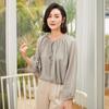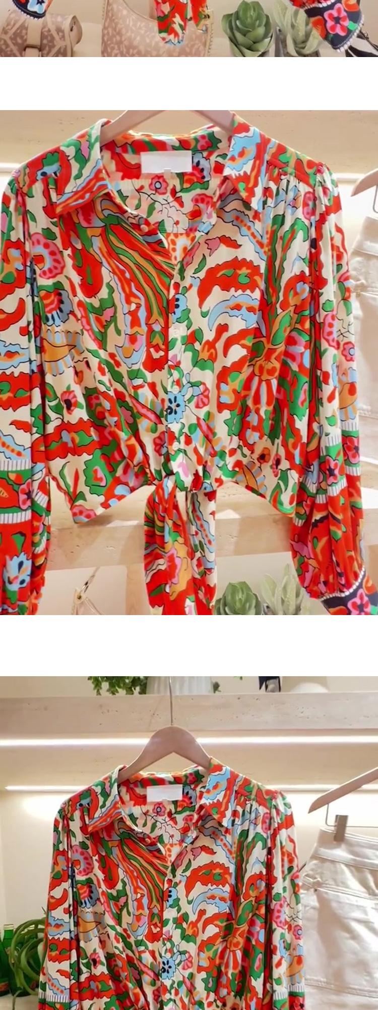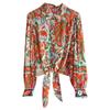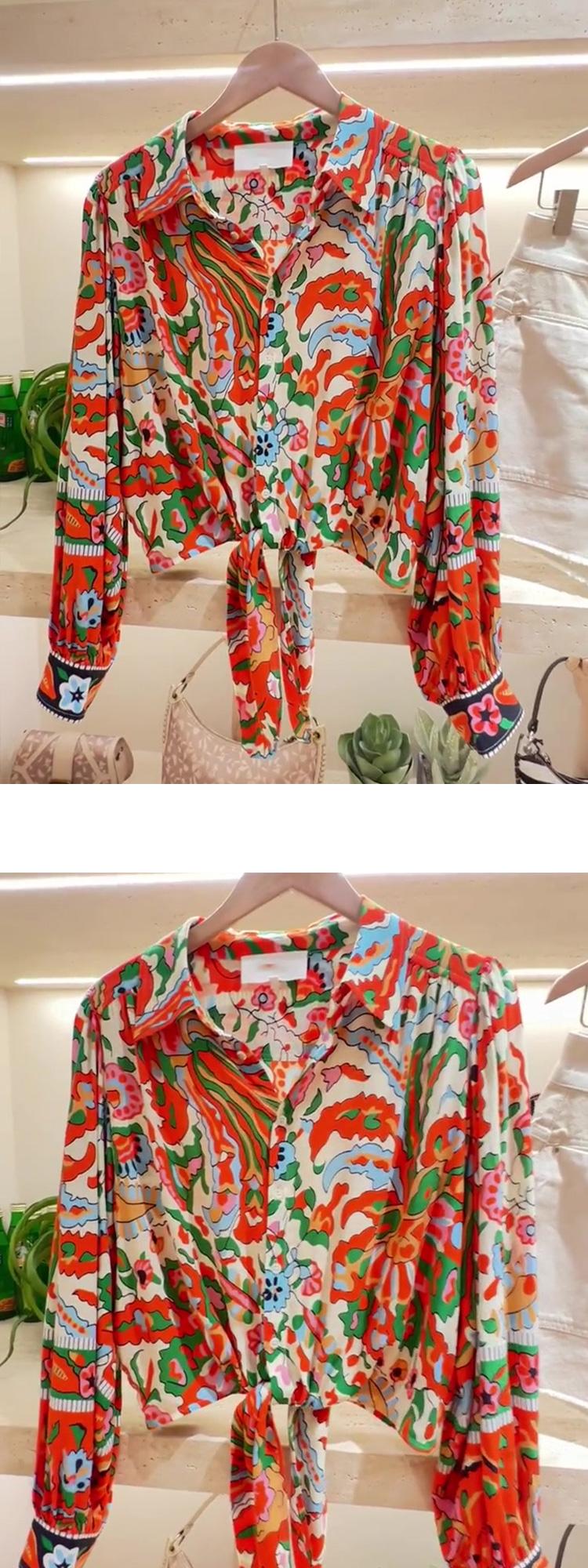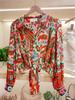 Orange color printed single-breasted hem lace-up sun protection shirt