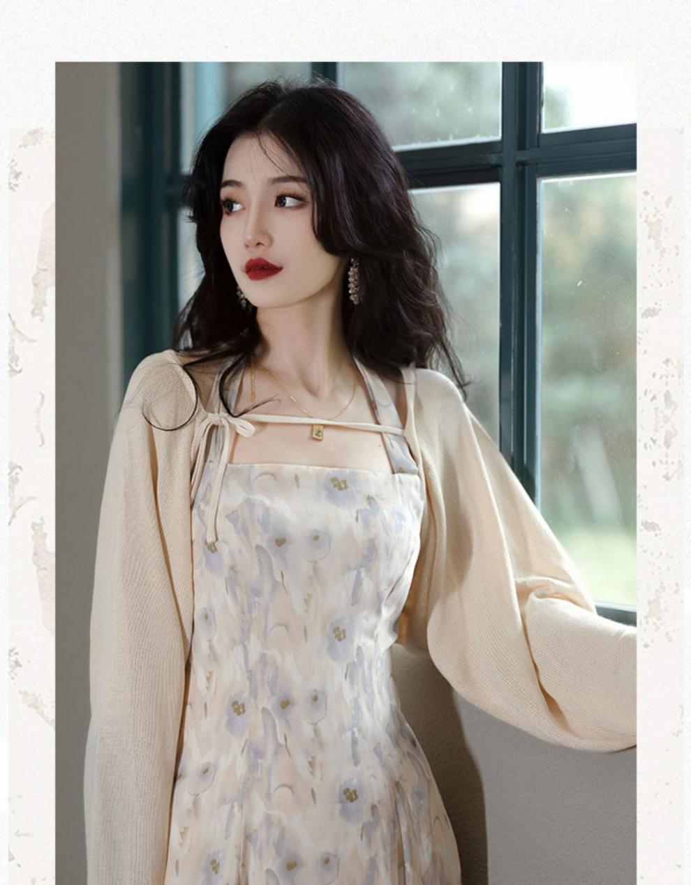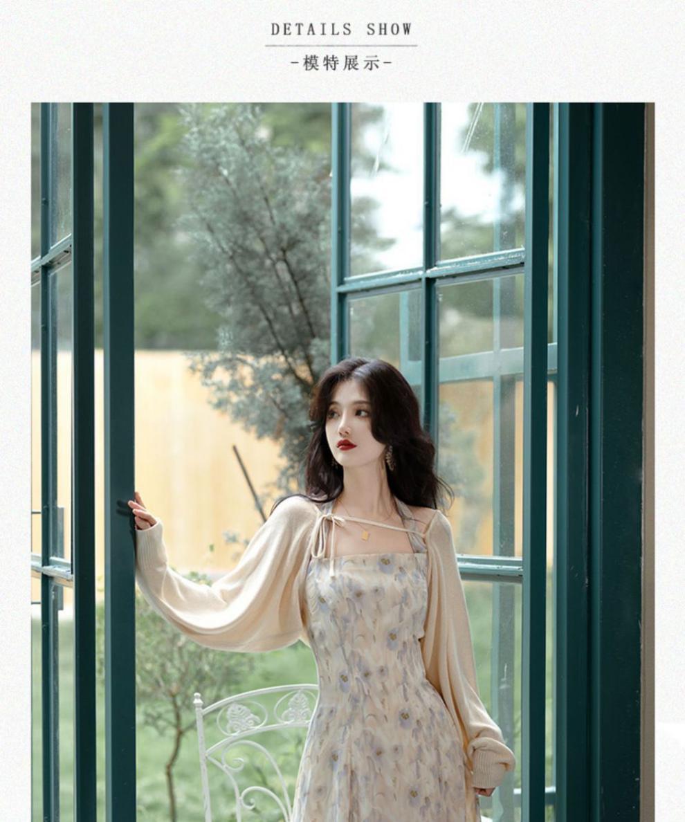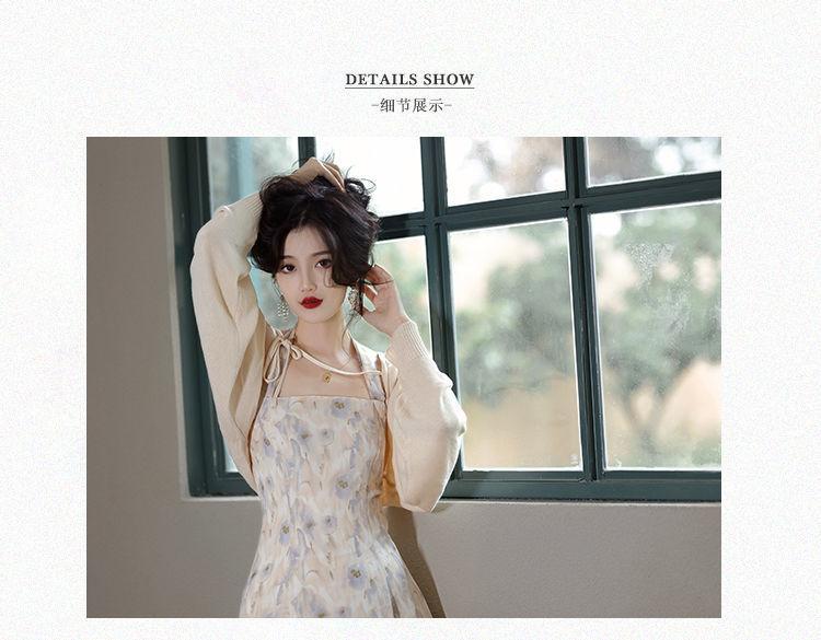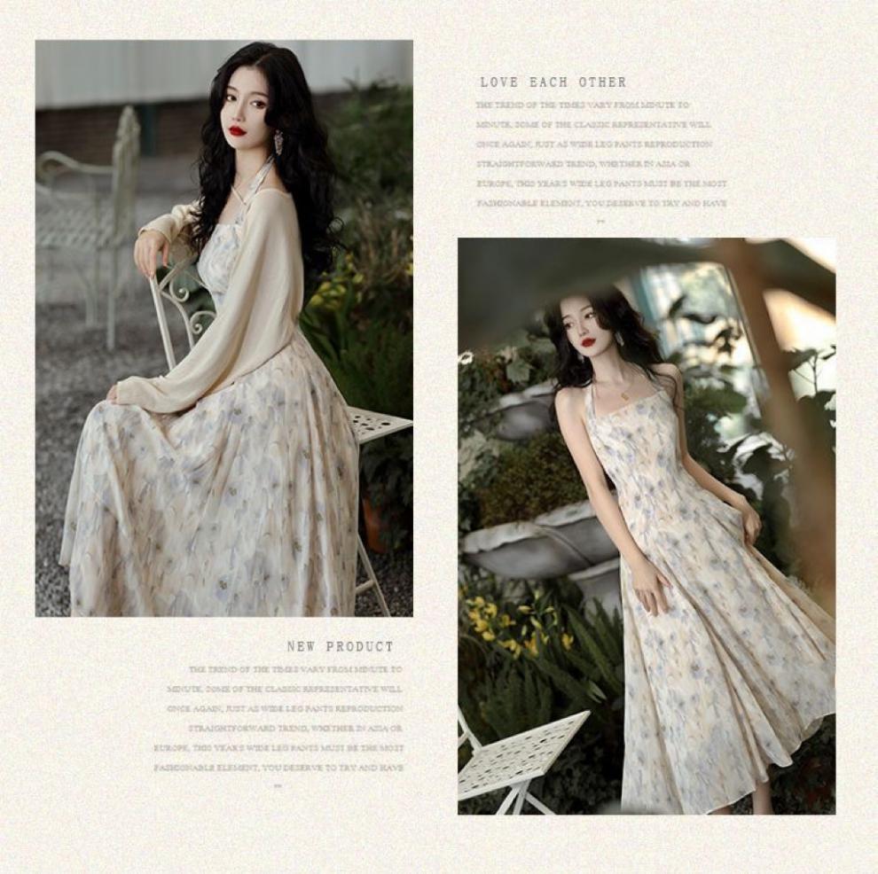 Vestido Francés Floral de Tirantes para Mujer Primavera 2023 Nuevo Nicho Estilo Gentil Elegante Dulce Vestido de Dos Piezas