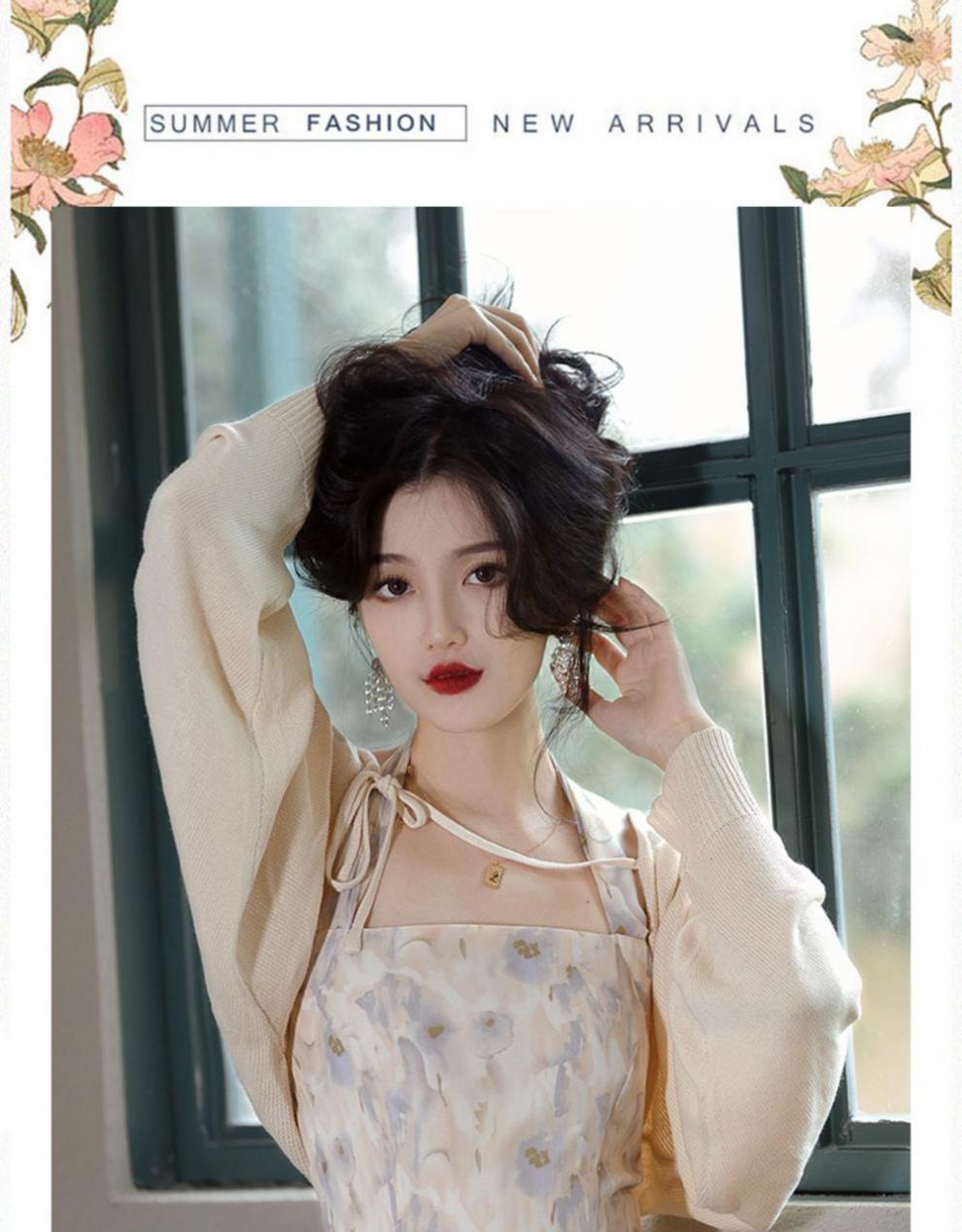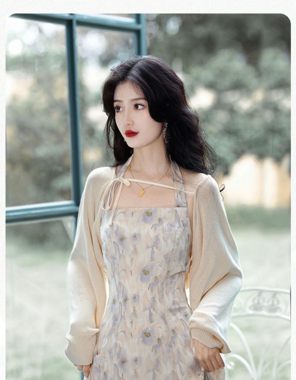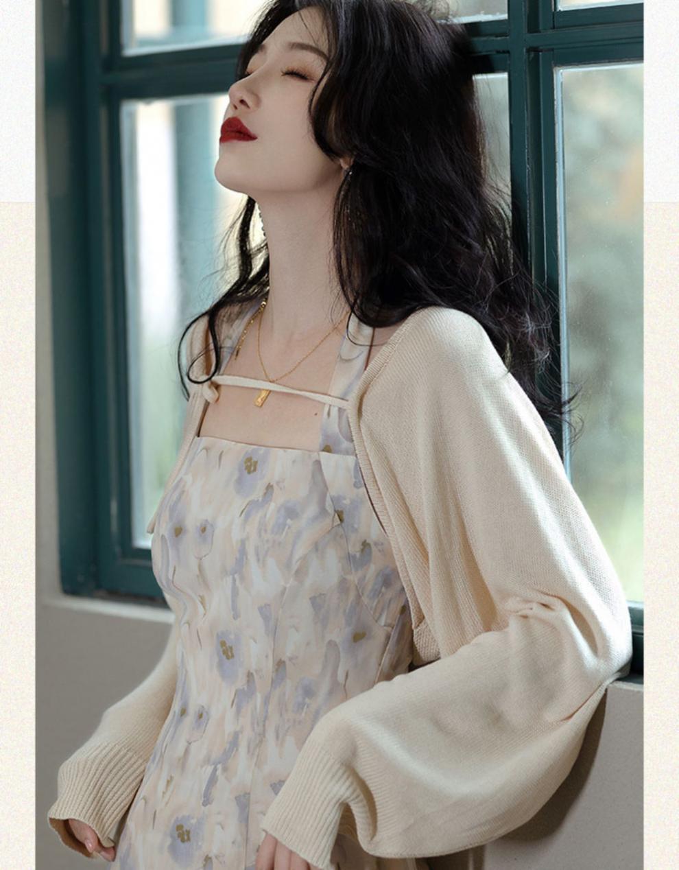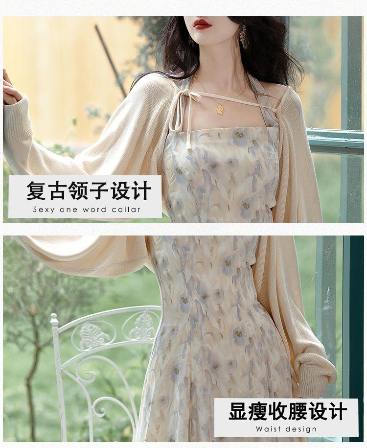 Vestido Francés Floral de Tirantes para Mujer Primavera 2023 Nuevo Nicho Estilo Gentil Elegante Dulce Vestido de Dos Piezas