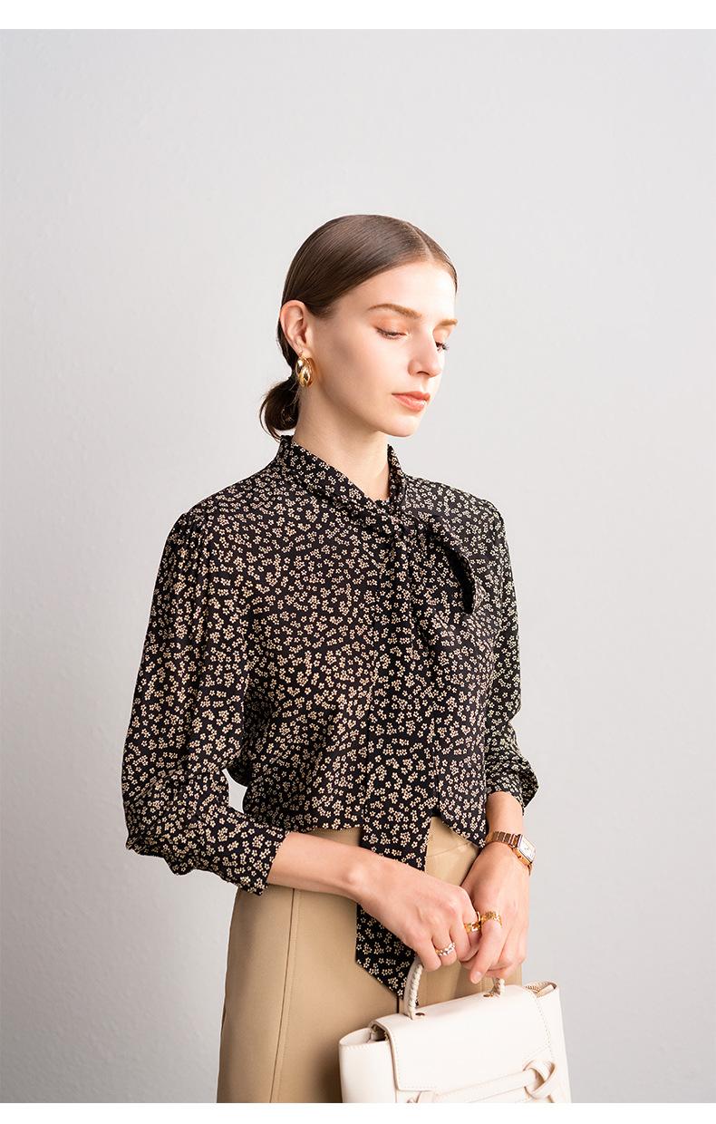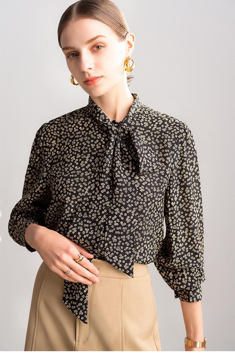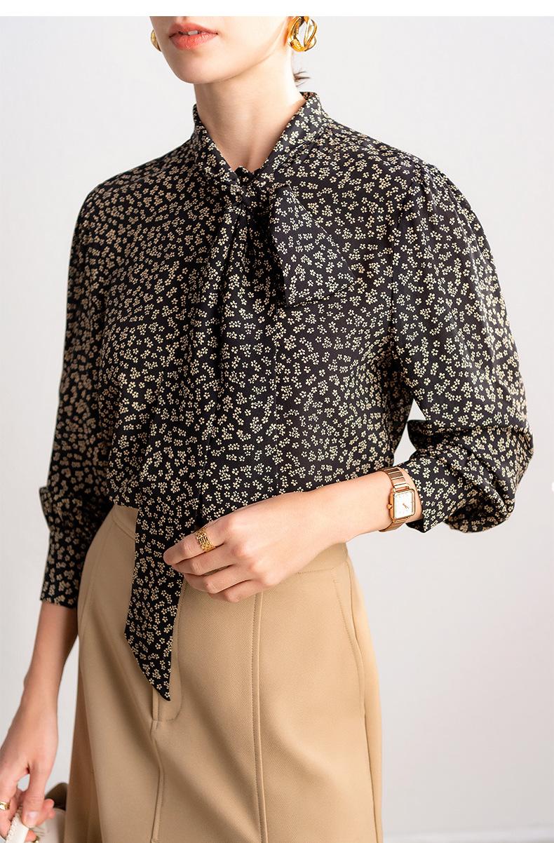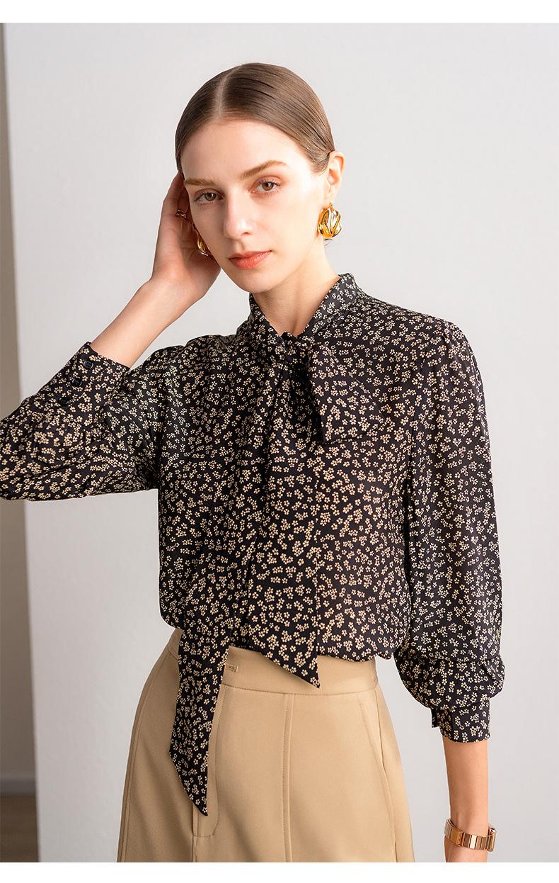 Camisa de seda Camisa con cordones para mujer seda de morera primavera y verano 2023 nuevo top de lujo ligero floral para oficina y para el día a día
