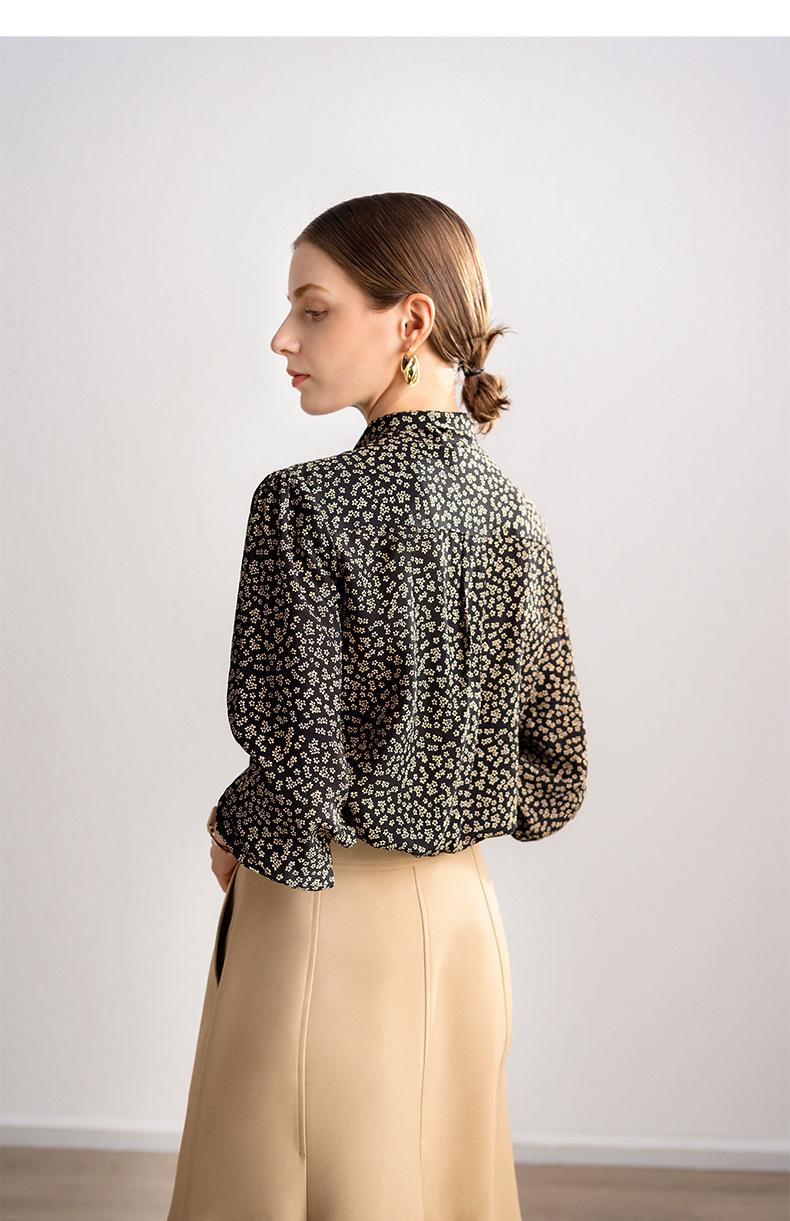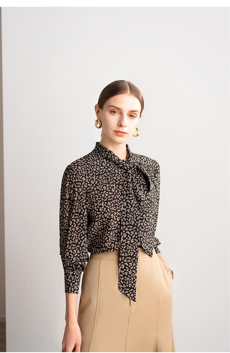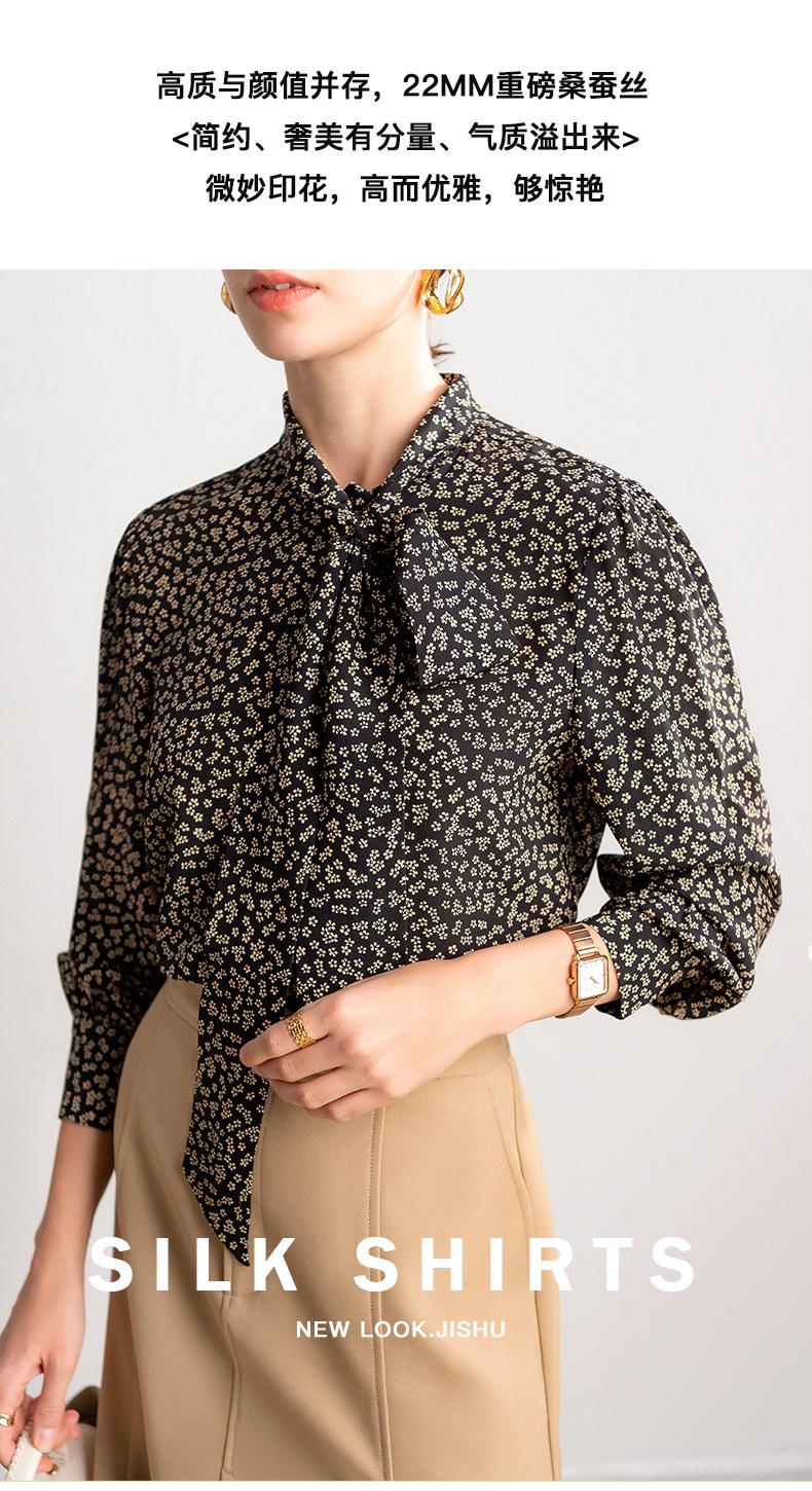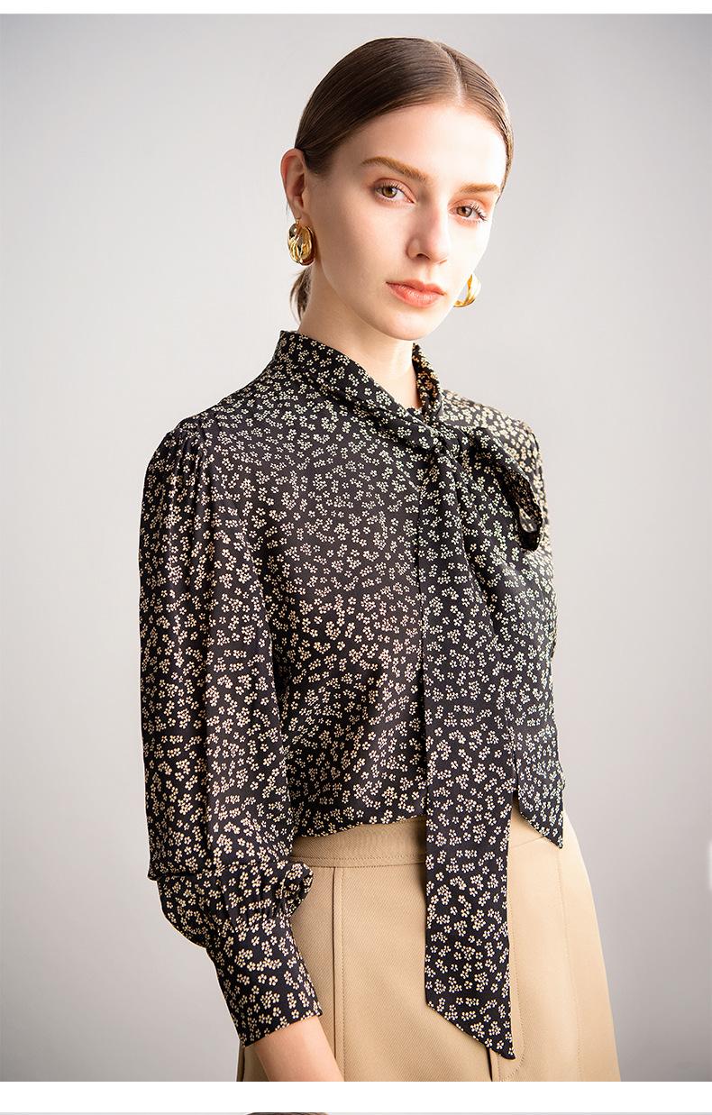 Camisa de seda Camisa con cordones para mujer seda de morera primavera y verano 2023 nuevo top de lujo ligero floral para oficina y para el día a día