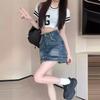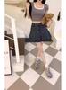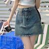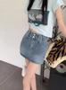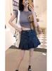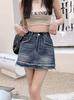 Falda vaquera vintage americana, falda vaquera plisada vintage de verano para mujer, falda con volantes en la cadera y corte A