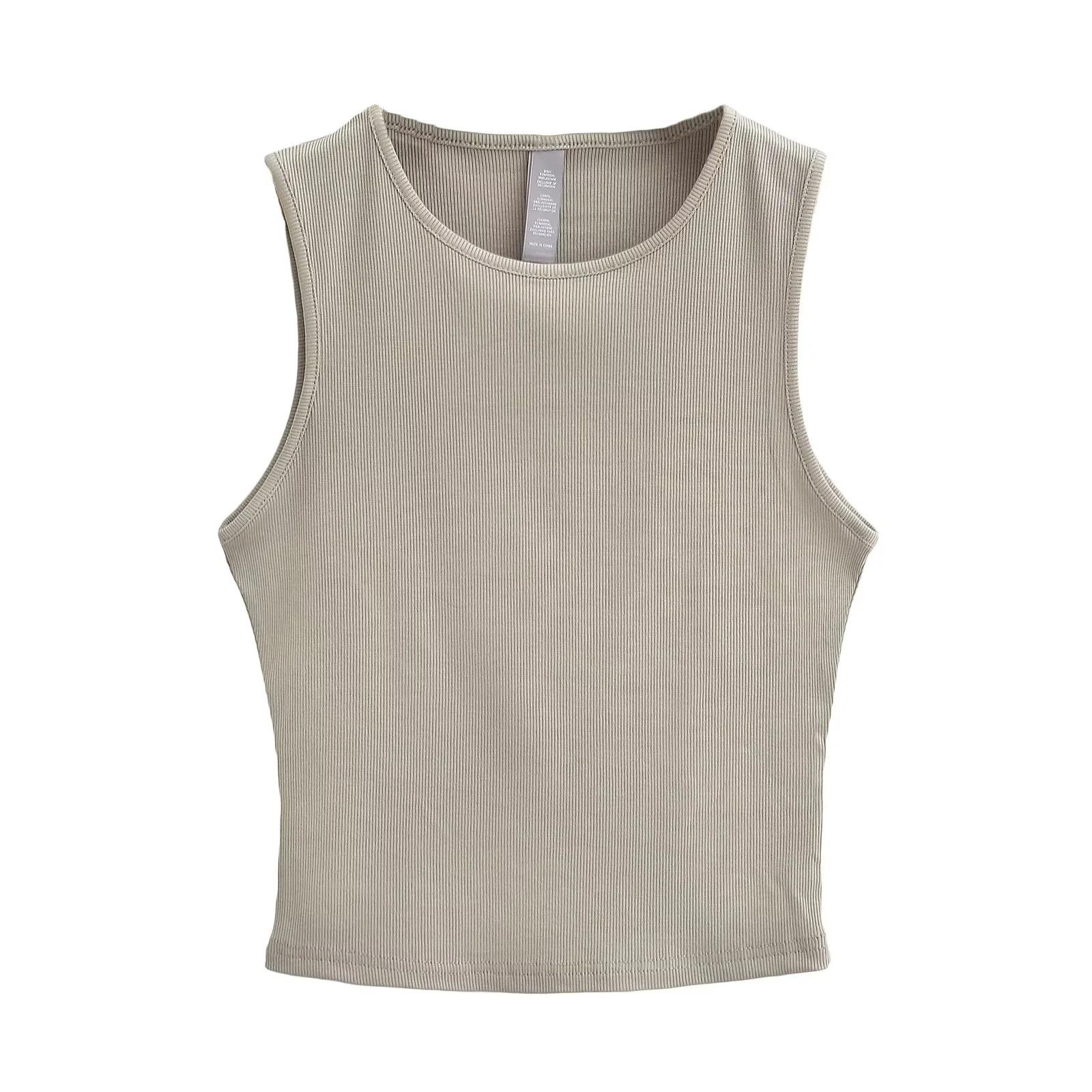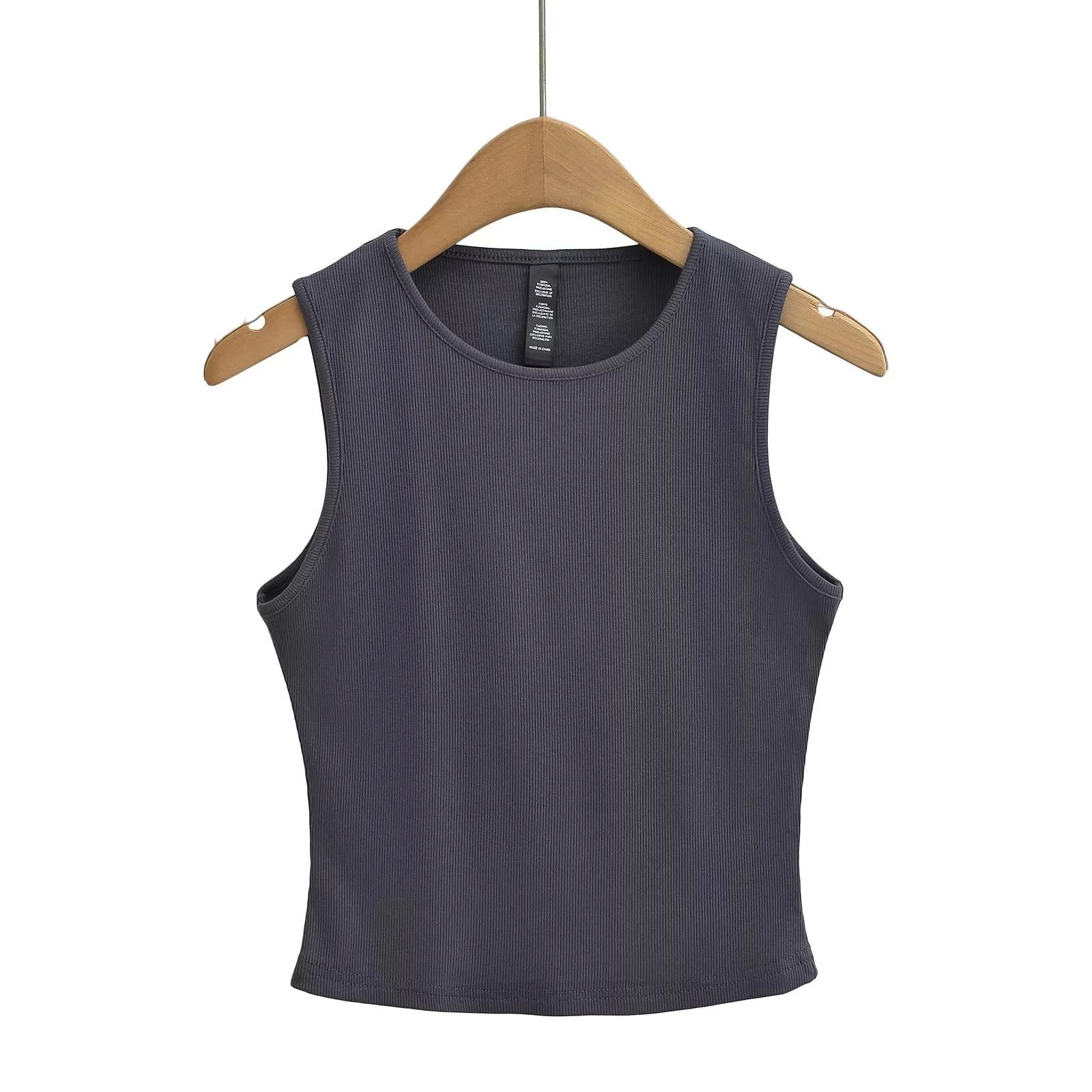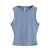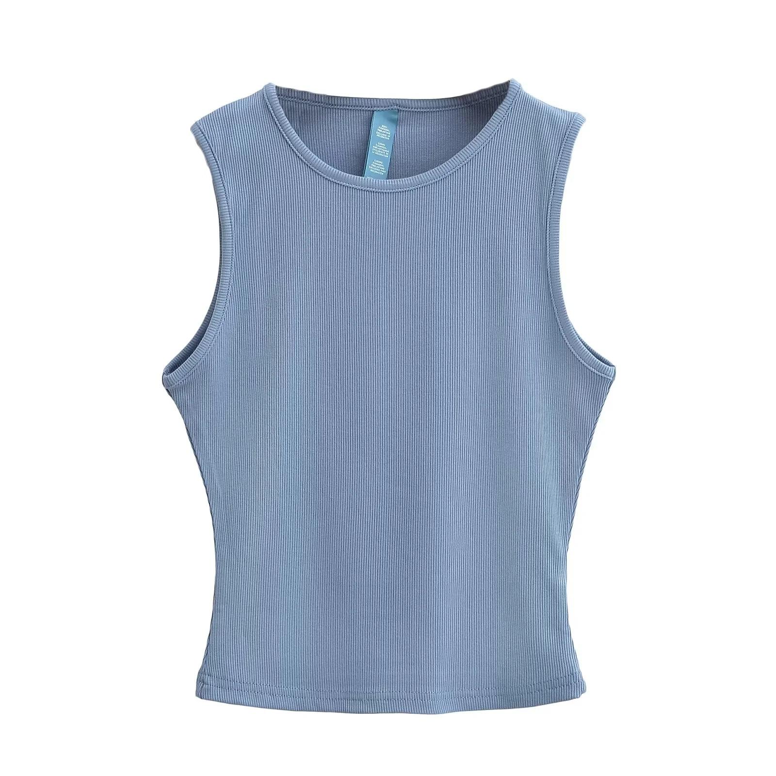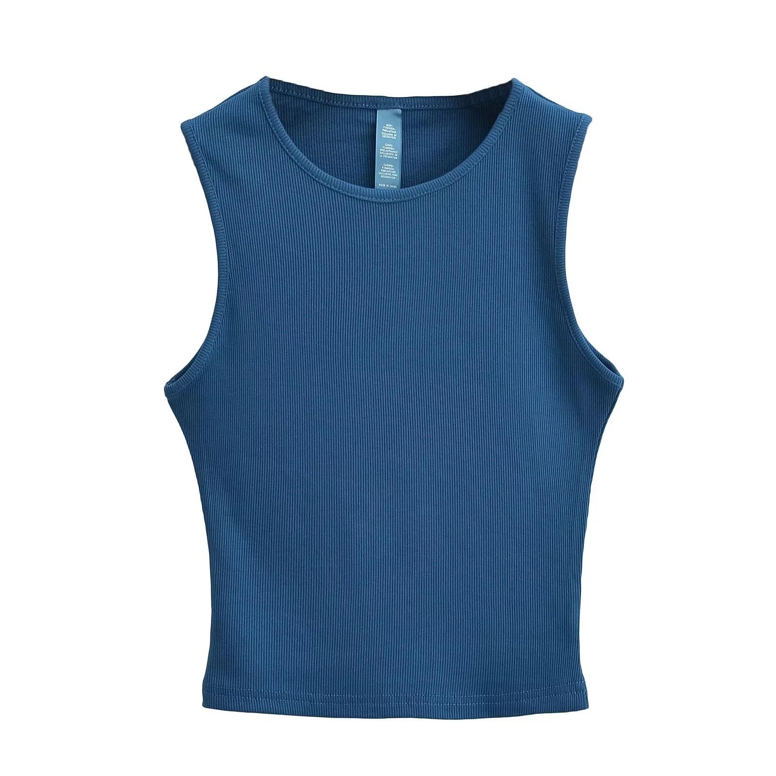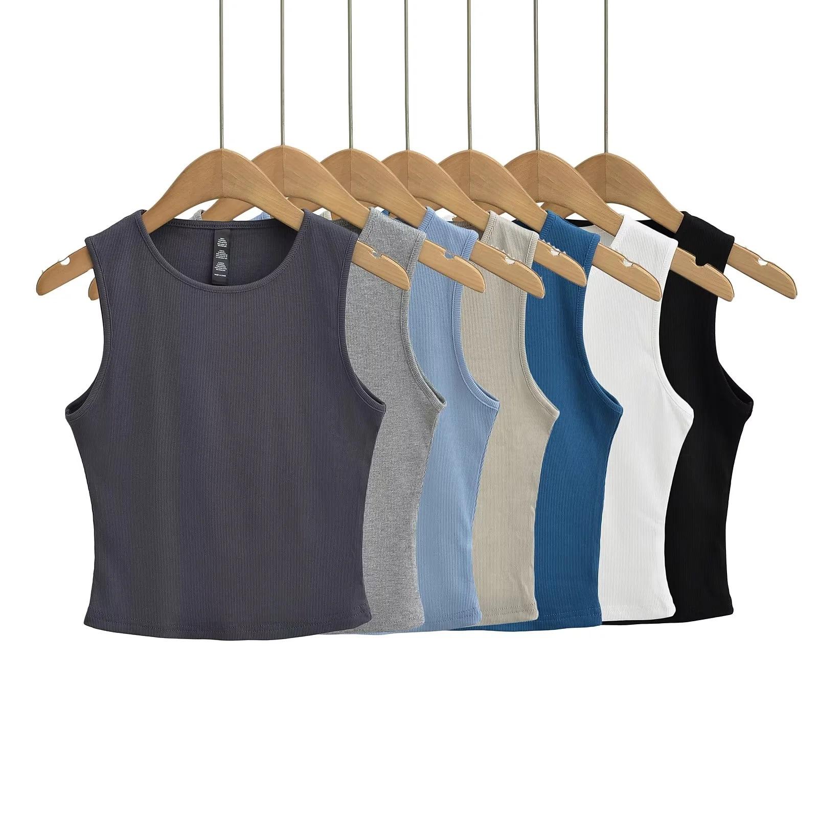 Novedad de verano 2024, camiseta sexy sin mangas para chica sexy, ajustada, combinable con todo, chaleco deportivo elástico de cuello redondo pequeño
