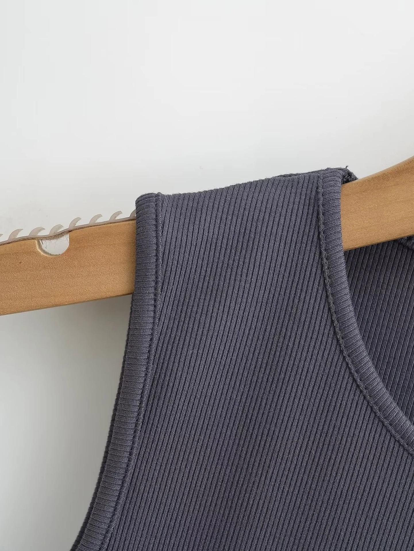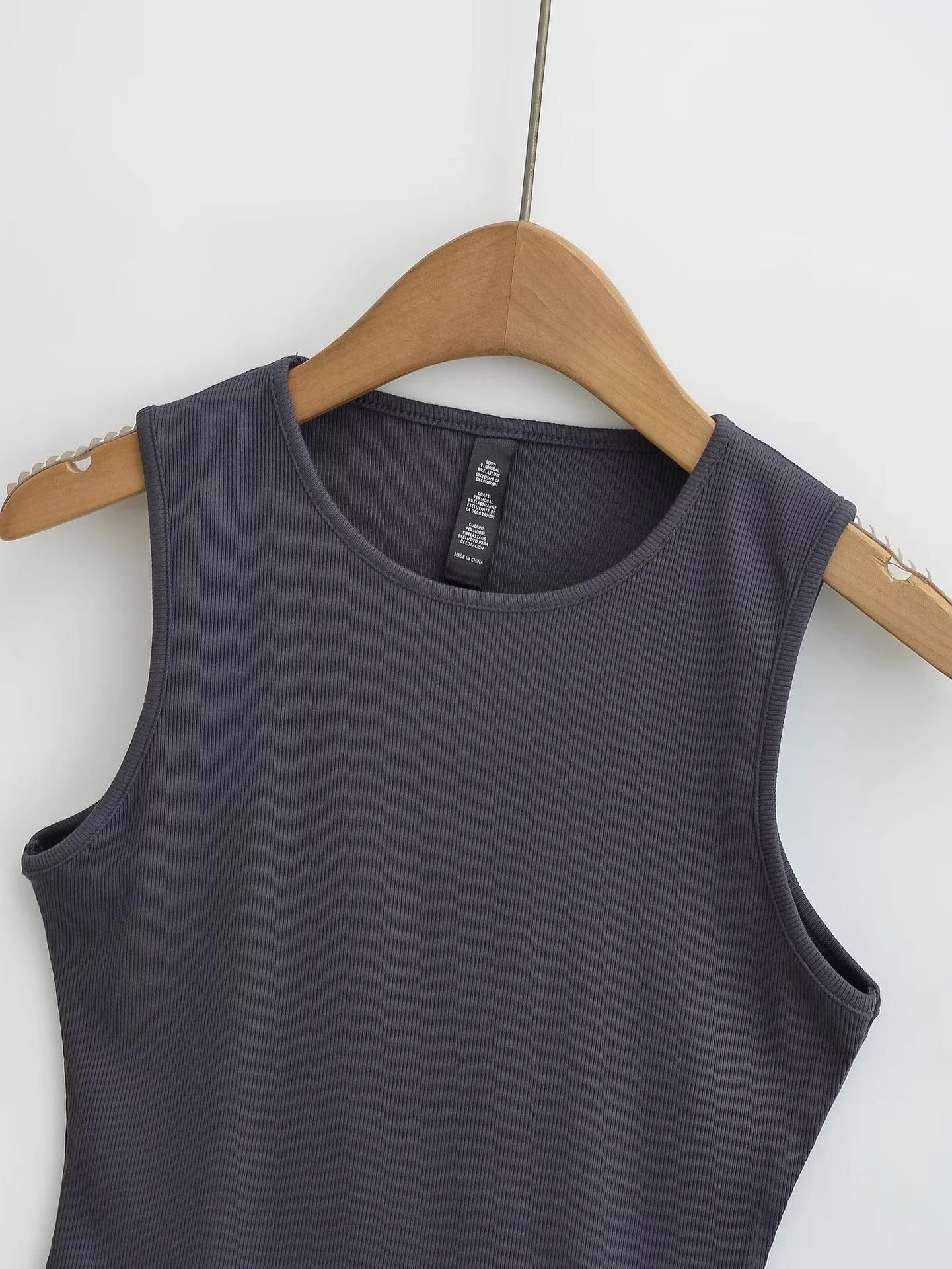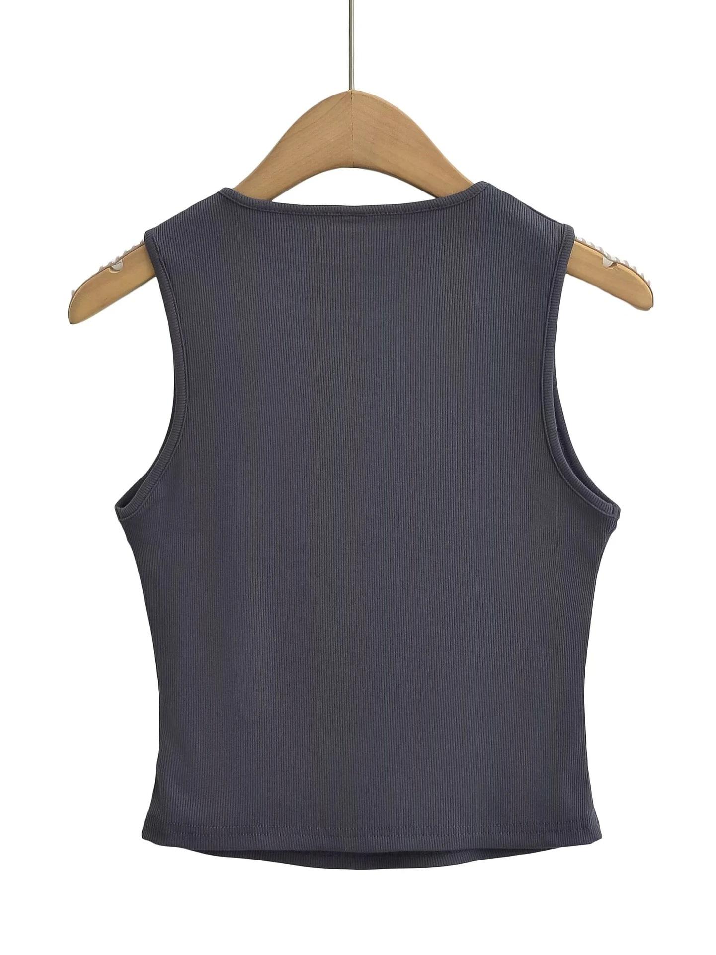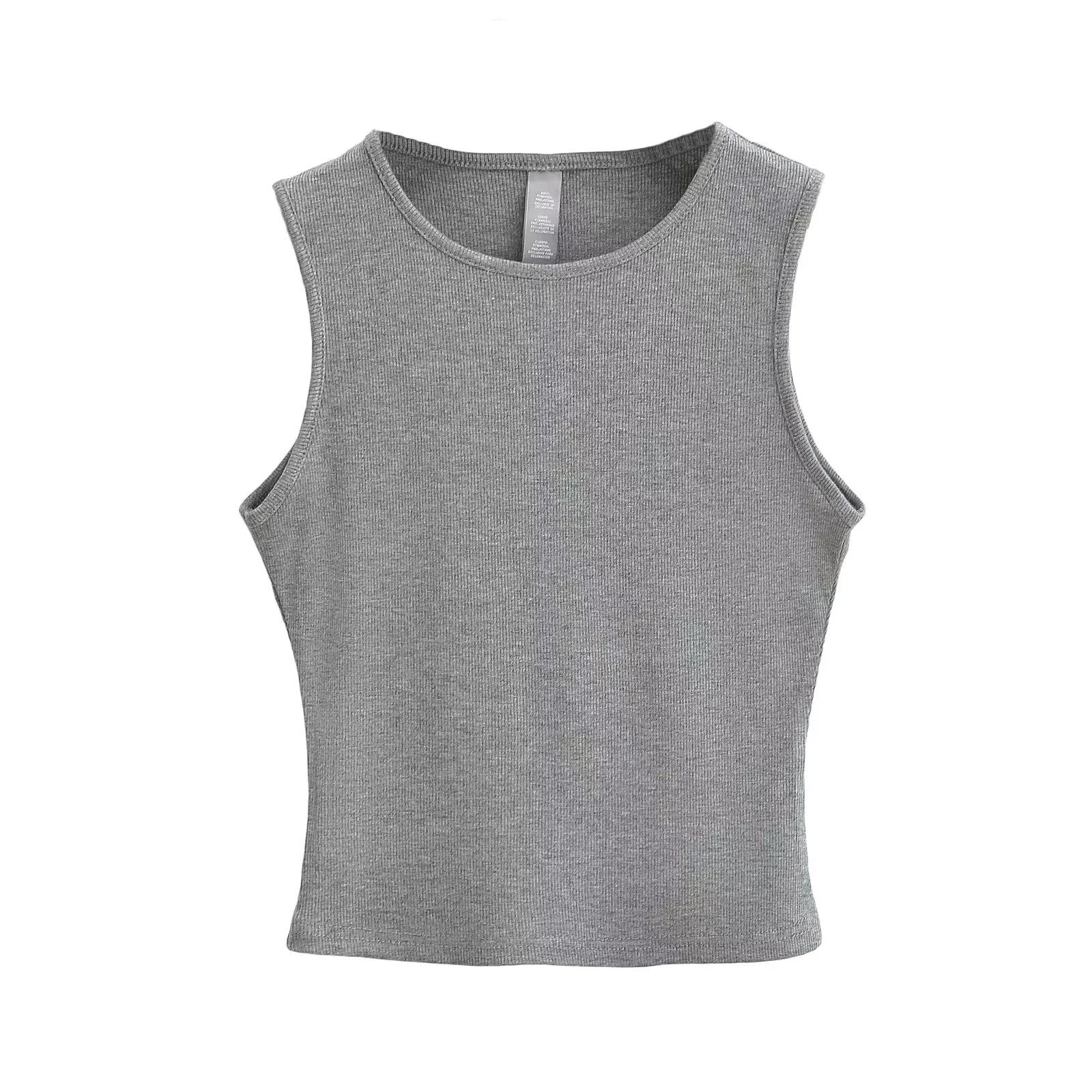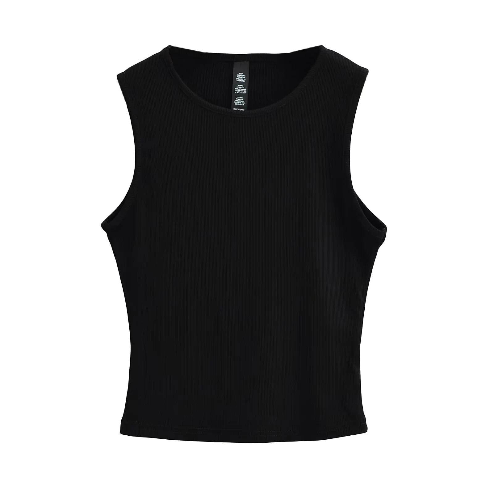 Novedad de verano 2024, camiseta sexy sin mangas para chica sexy, ajustada, combinable con todo, chaleco deportivo elástico de cuello redondo pequeño