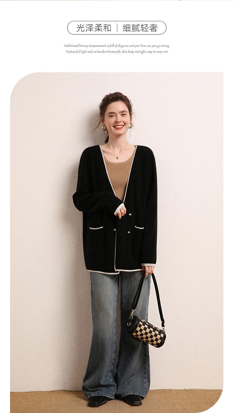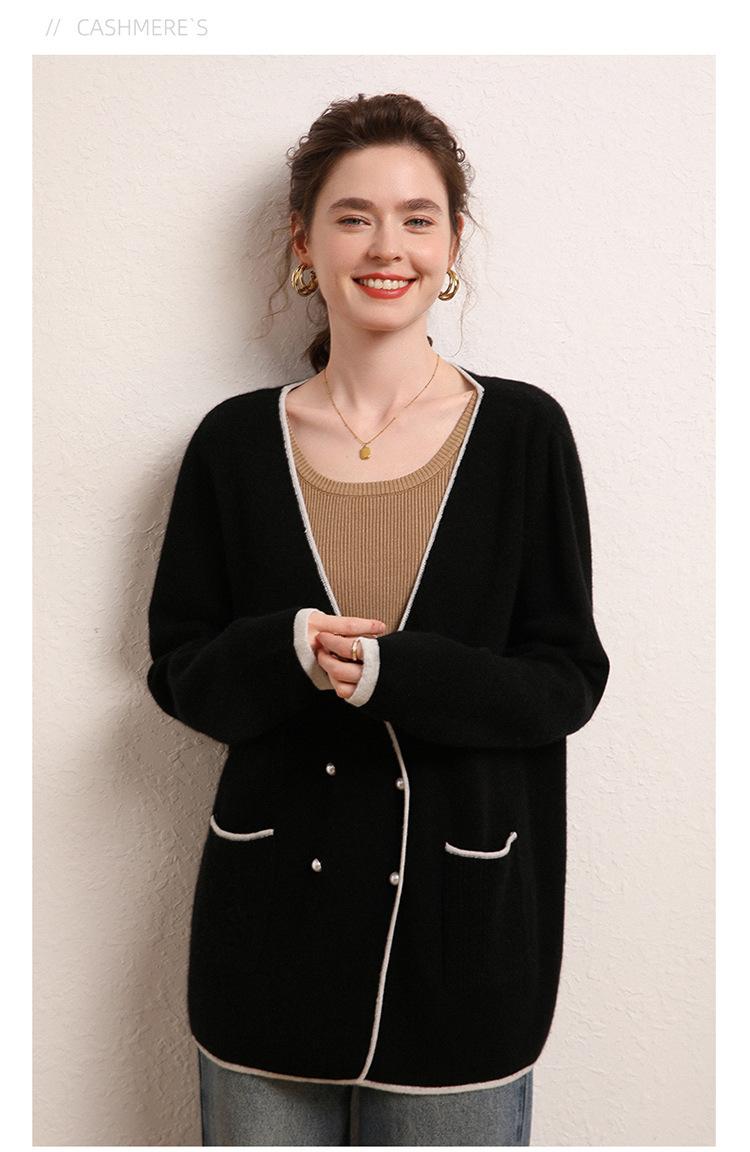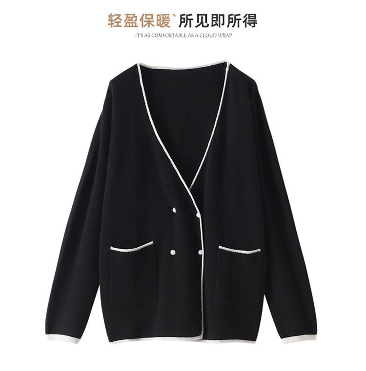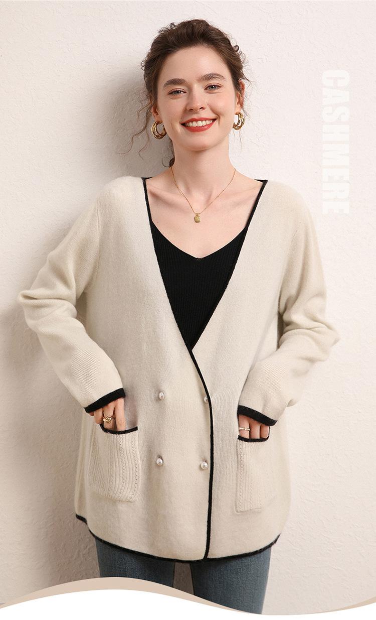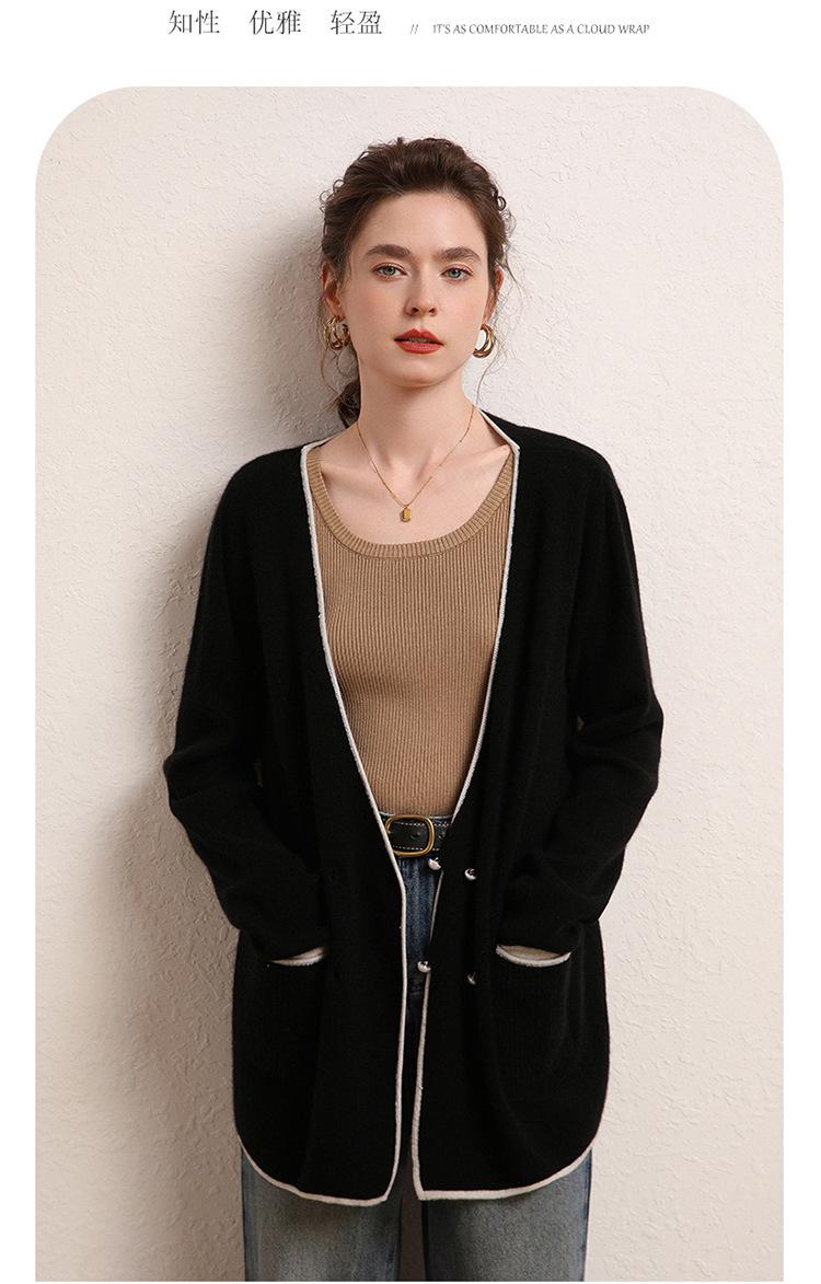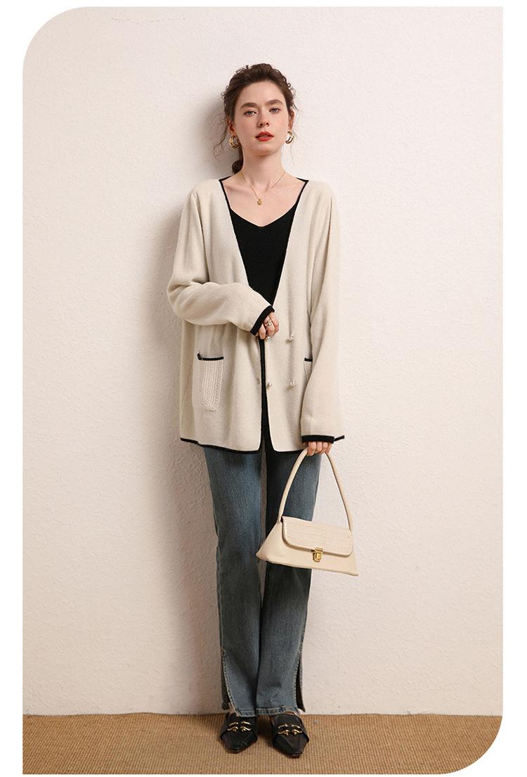 Cárdigan Suéter Estilo Tweed Cachemira Moda Nuevo Casual Otoño e Invierno Estilo Coreano Cuello en V Holgado Tejido