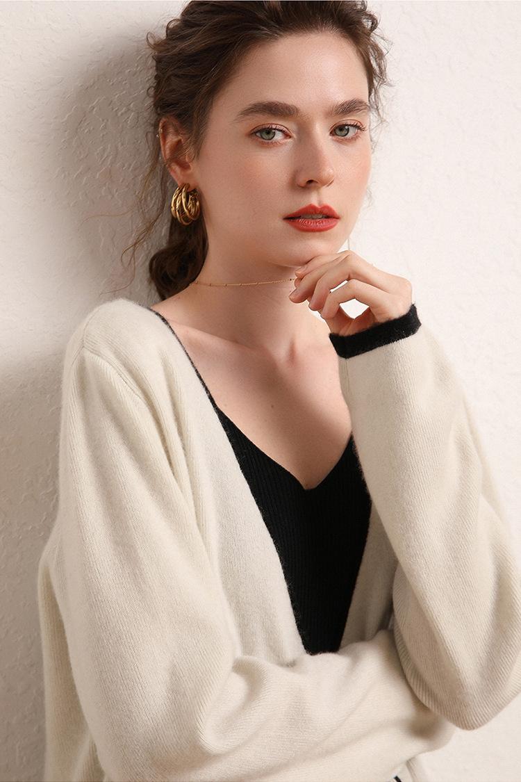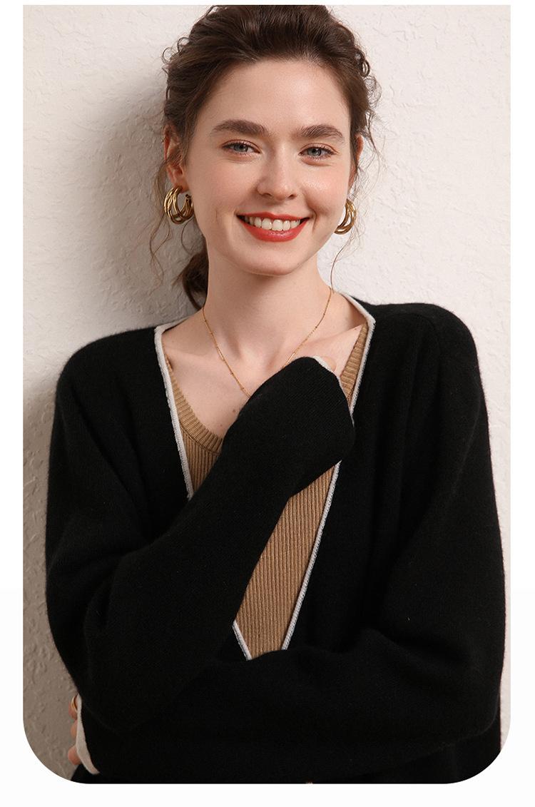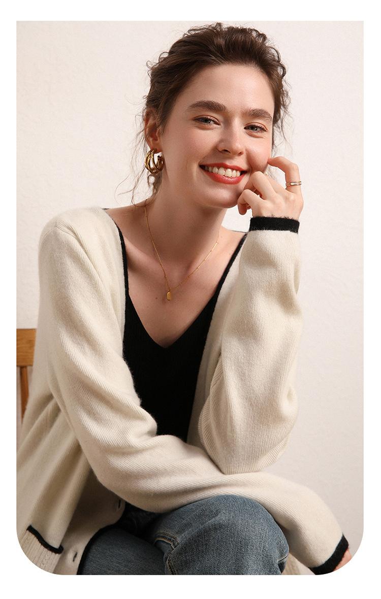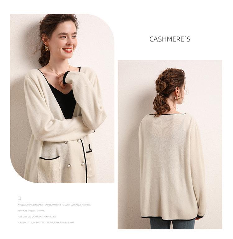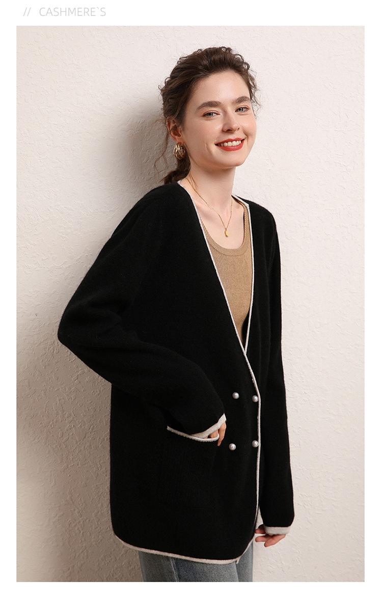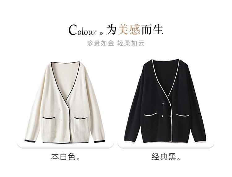 Cárdigan Suéter Estilo Tweed Cachemira Moda Nuevo Casual Otoño e Invierno Estilo Coreano Cuello en V Holgado Tejido