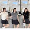 Camiseta de manga corta con solapa tipo polo de tela de seda de hielo, estilo universitario de dos piezas, color de contraste simple, informal, para mujer, combina con todo