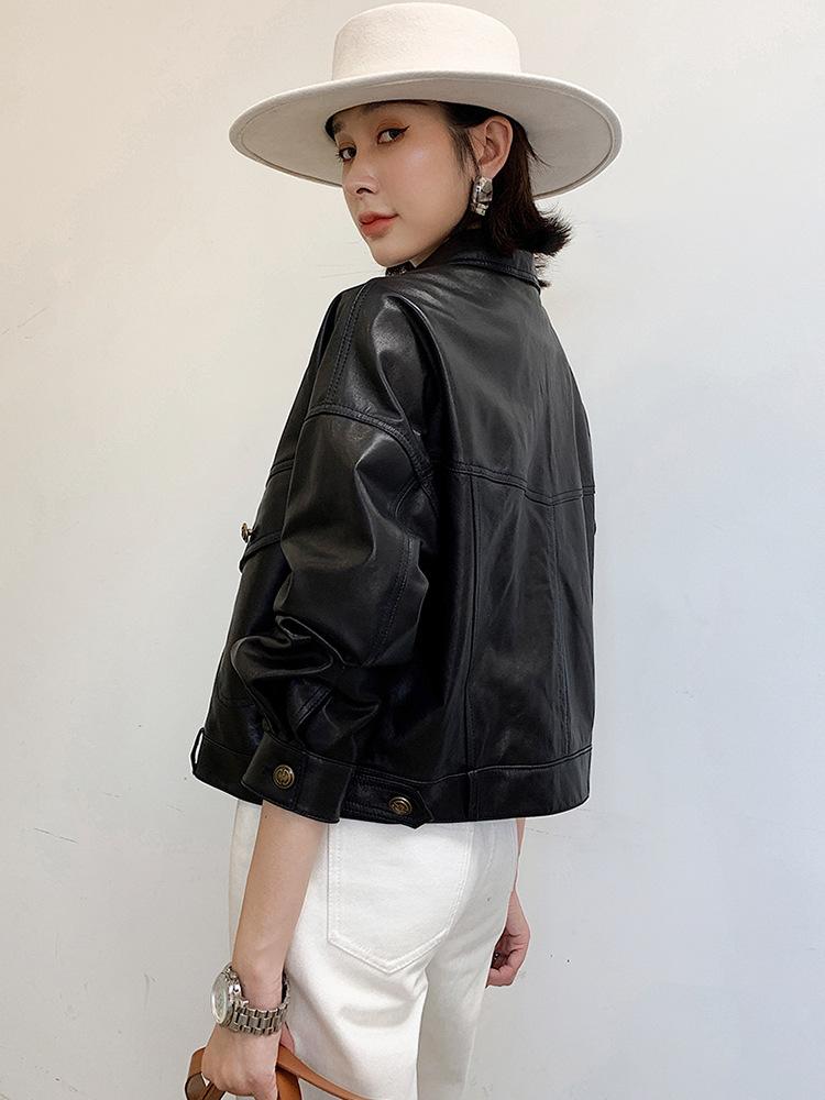 Chaqueta de Cuero Genuino para Mujer Corta Casual Versátil 2025 Primavera & Otoño Nueva Ajustada Chaqueta de Motociclista Piel de Cabra