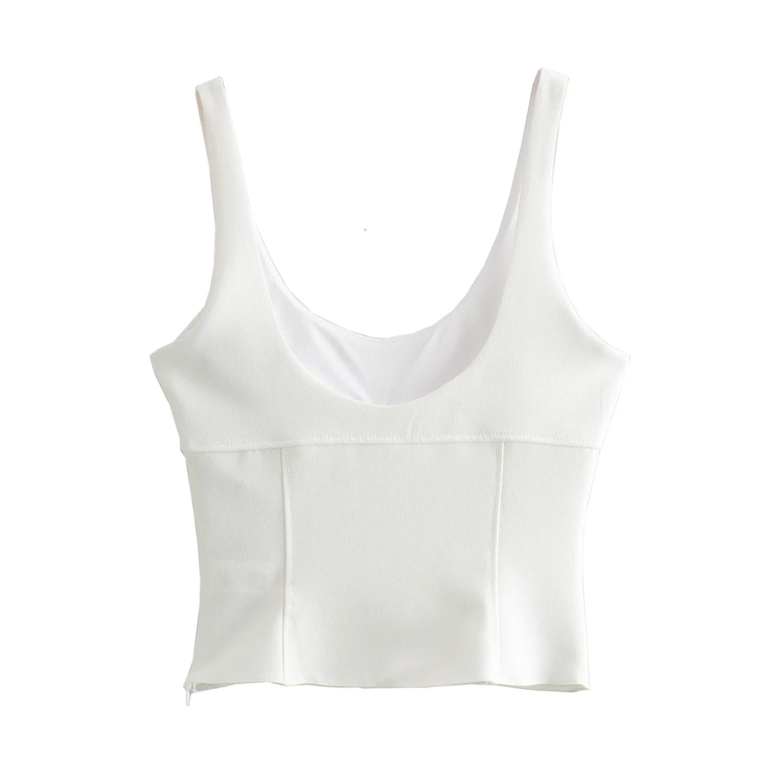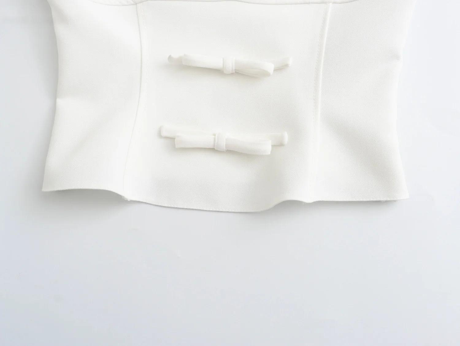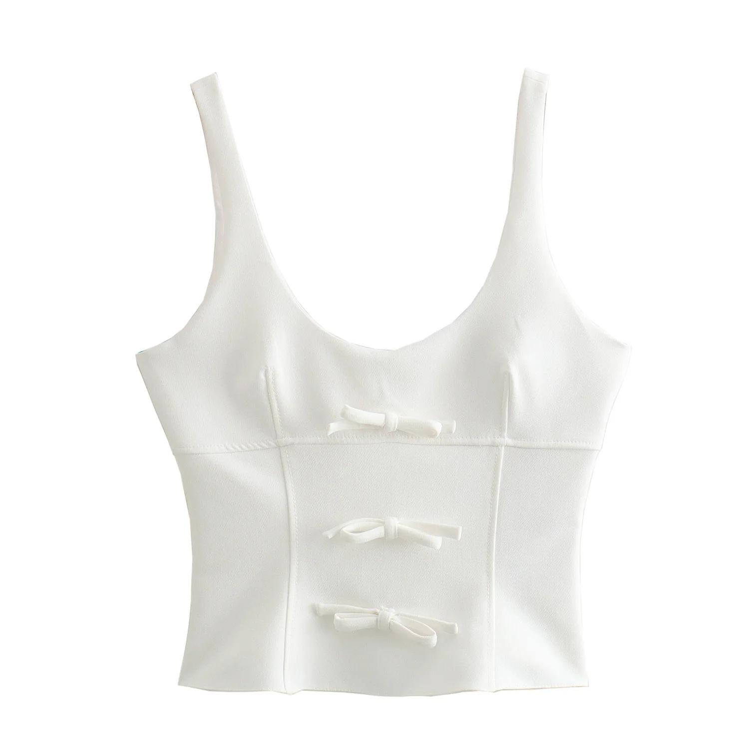Camiseta con lazo y tirantes de color puro para mujer, estilo europeo y americano, primavera 2024