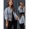 Nueva Chaqueta de Mezclilla Rota de Otoño e Invierno Transfronteriza para Mujer de Manga Larga Estación Independiente Estampado de Leopardo Empalmado Top Corto