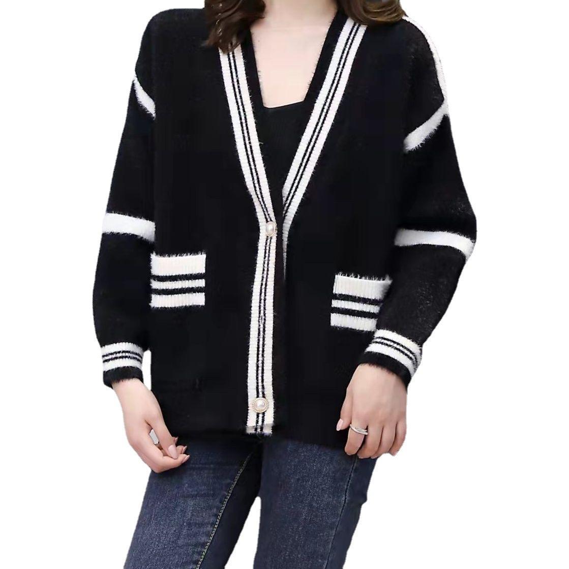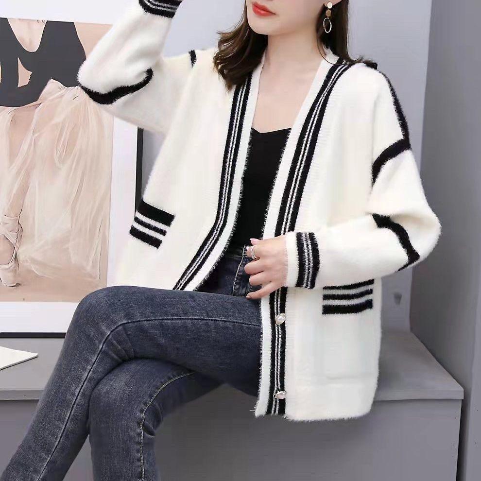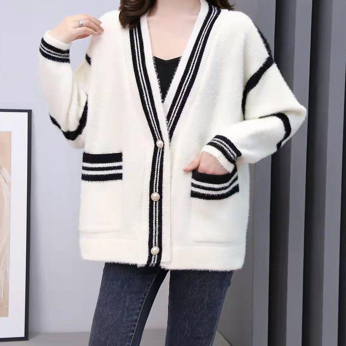 2025 Nuevo Suéter Cárdigan de Terciopelo Visón Imitación Estilo Coreano Holgazán para Primavera y Otoño Chaqueta Suéter Casual Holgada para Mujer
