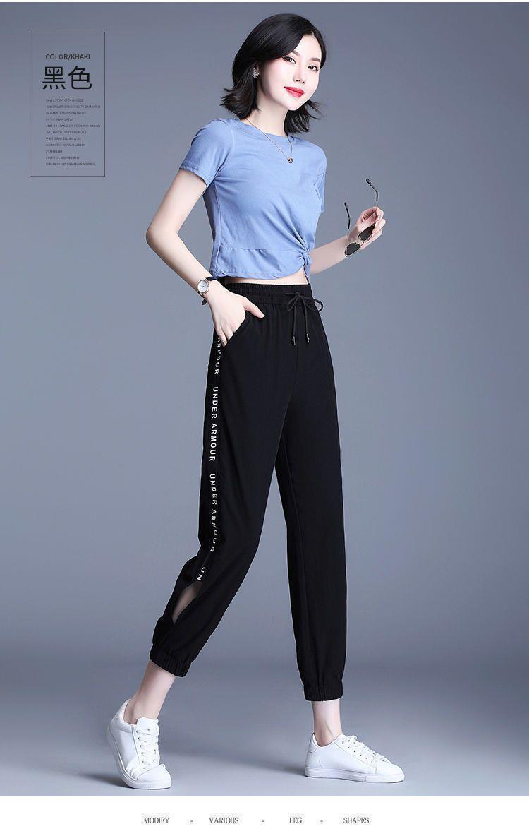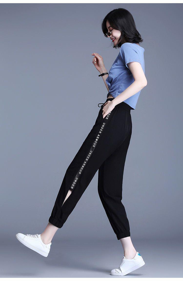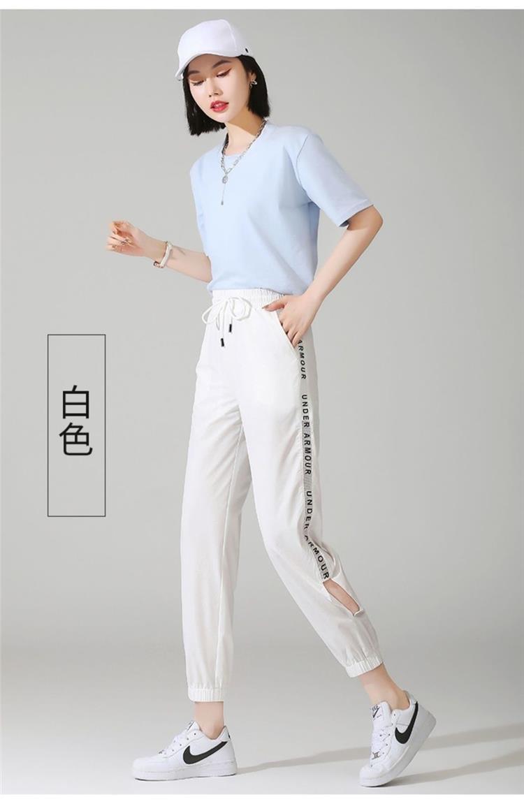 Pantalones deportivos de secado rápido de seda de hielo para mujer, verano, nuevos, delgados, de cintura alta, adelgazantes, tipo harén, nueva llegada, capri, casuales, a la moda