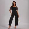 Mono nuevo de primavera y verano transfronterizo europeo y americano, moda informal, sexy, con hombros descubiertos, color sólido, cintura alta, mono con tirantes