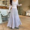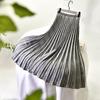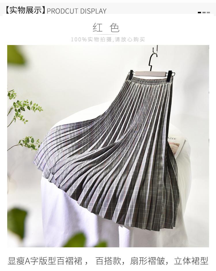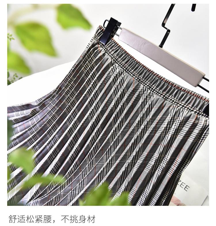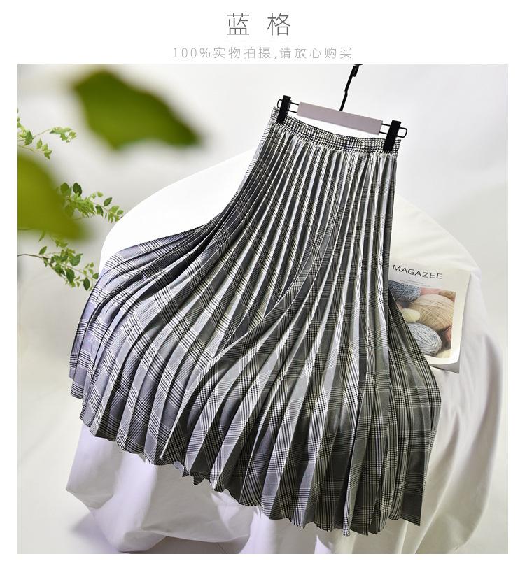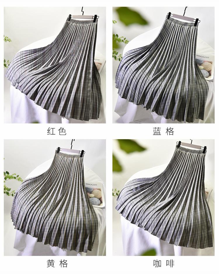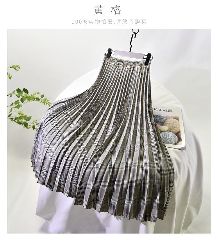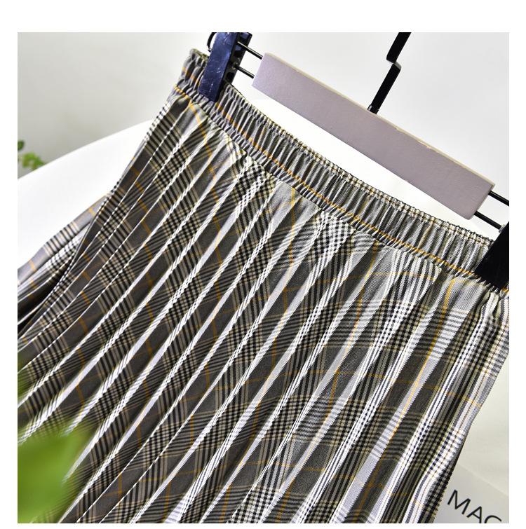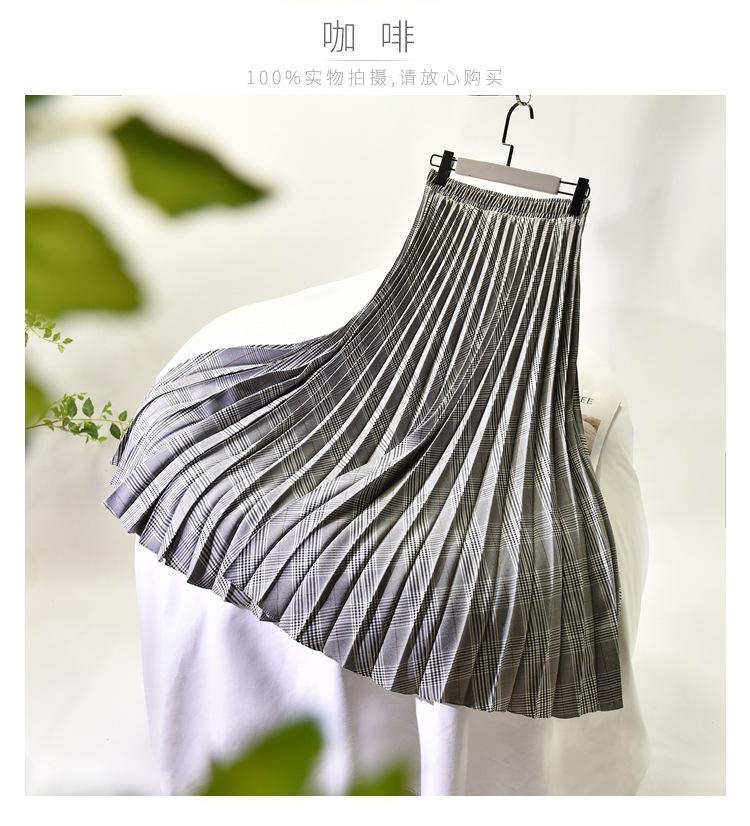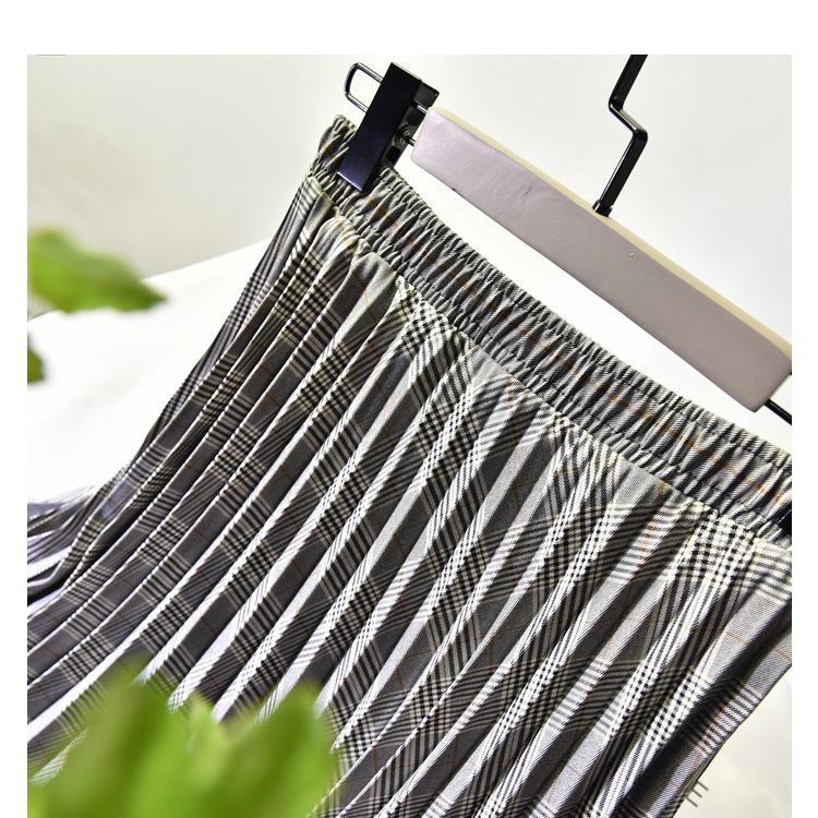 Temperamento Viajero Cuadros Falda Larga Plisada 2025 Primavera y Verano Nuevo Cintura Alta Falda Plisada Mujer Media Longitud Línea A