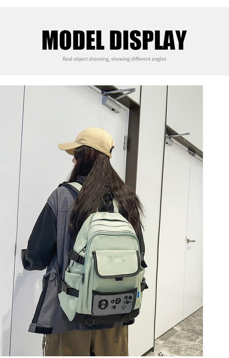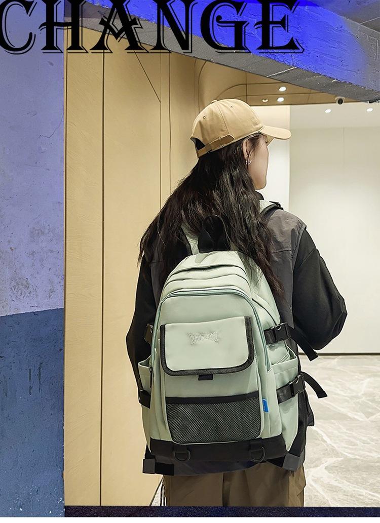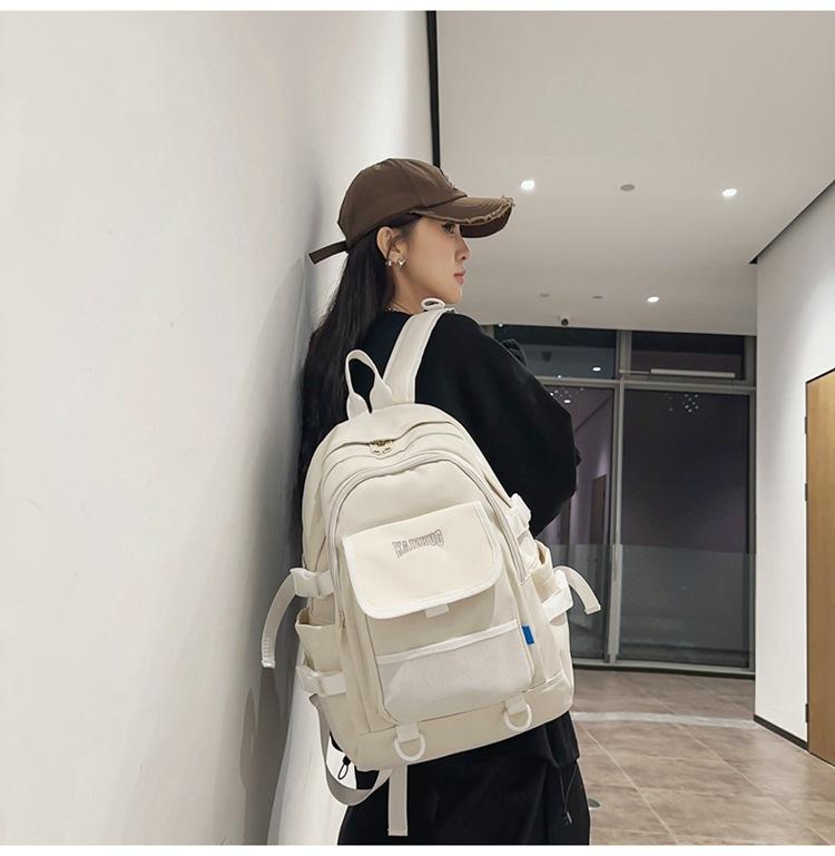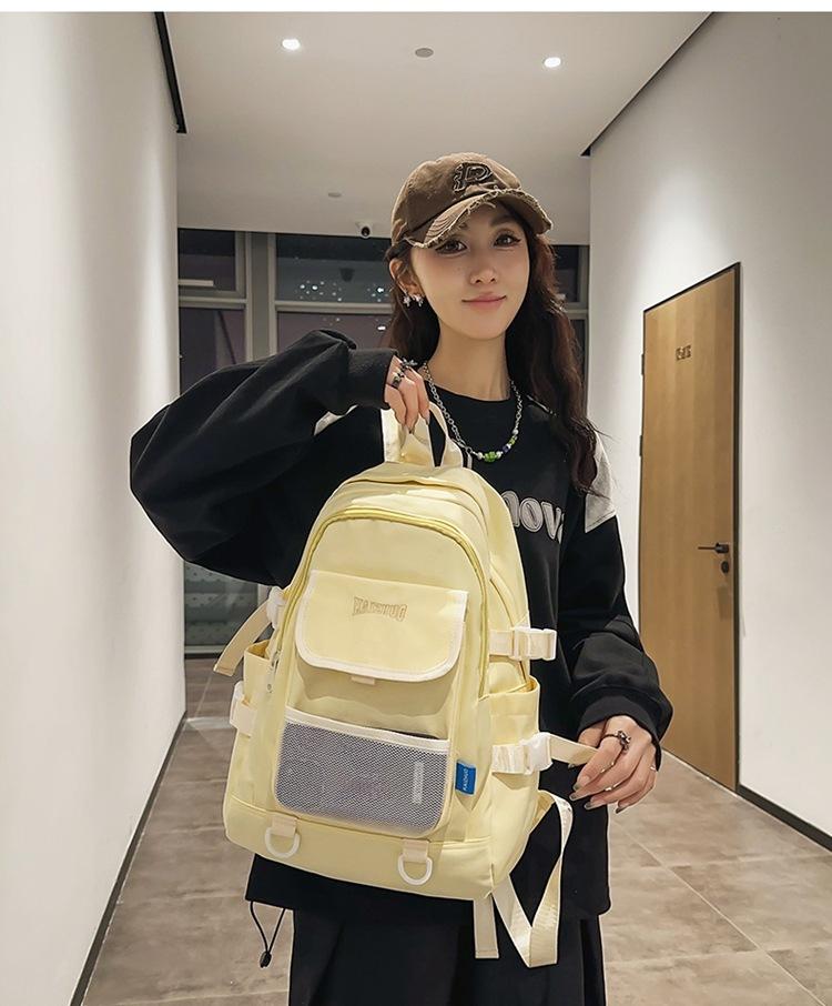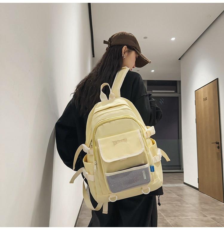 Mochila escolar para estudiante de gran capacidad estilo Harajuku con bolsillo de red casual ins estilo coreano versátil ligera para estudiante de secundaria moda