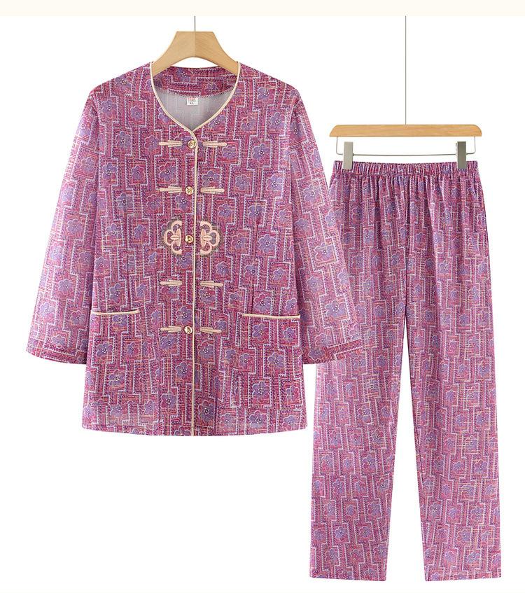 Conjunto de pijama de verano de algodón y seda para abuela, fino, de media manga, para mujer de mediana edad y mayor, conjunto informal de dos piezas para madre