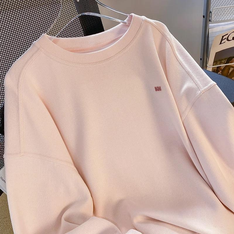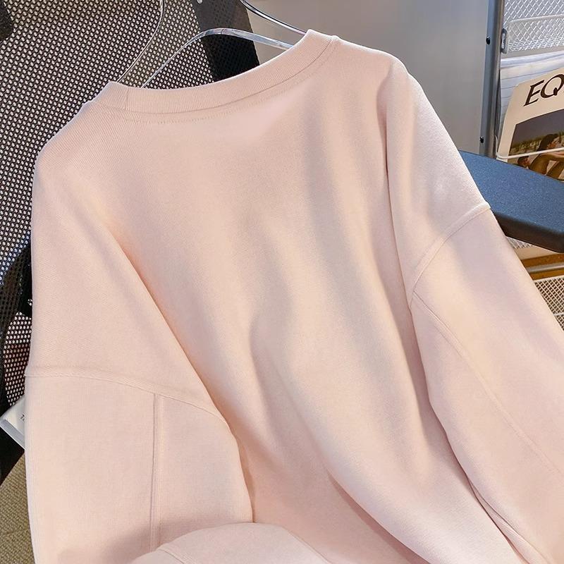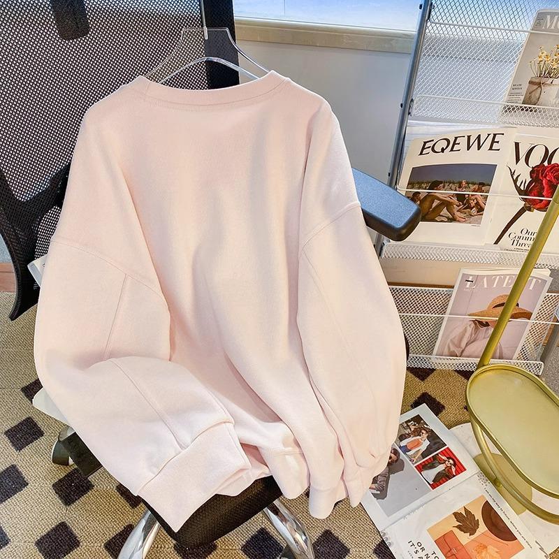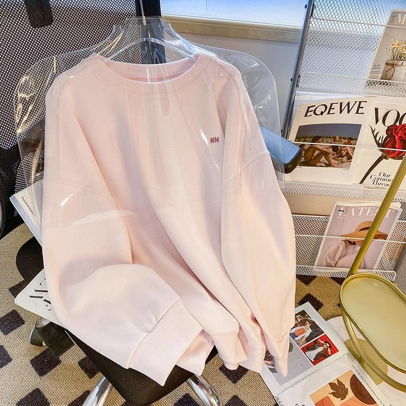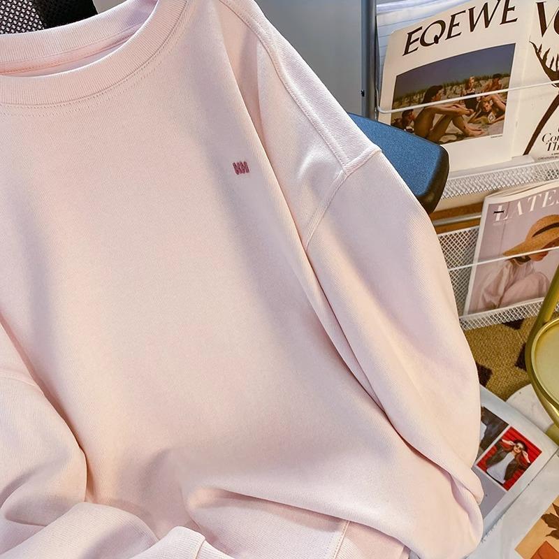 Suéter rosa de cuello redondo para mujer primavera y otoño delgado ins letras de moda de alta calidad estilo nicho perezoso holgado talla grande top