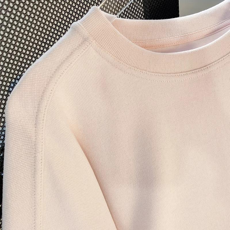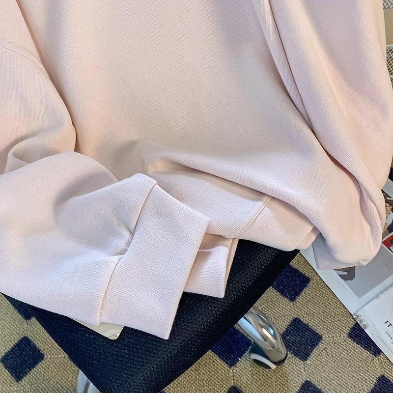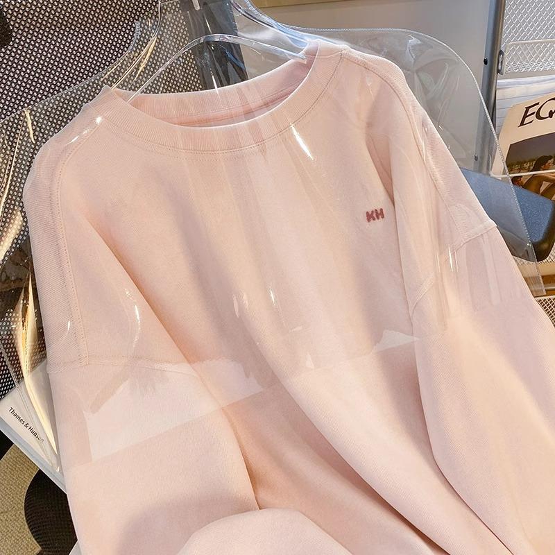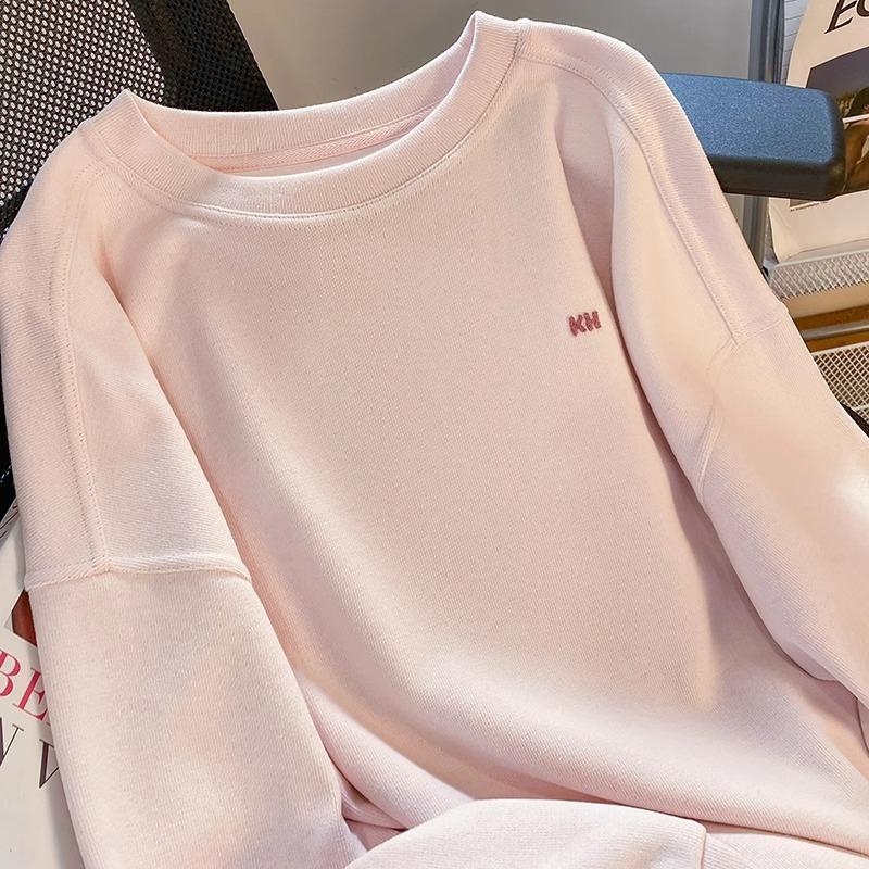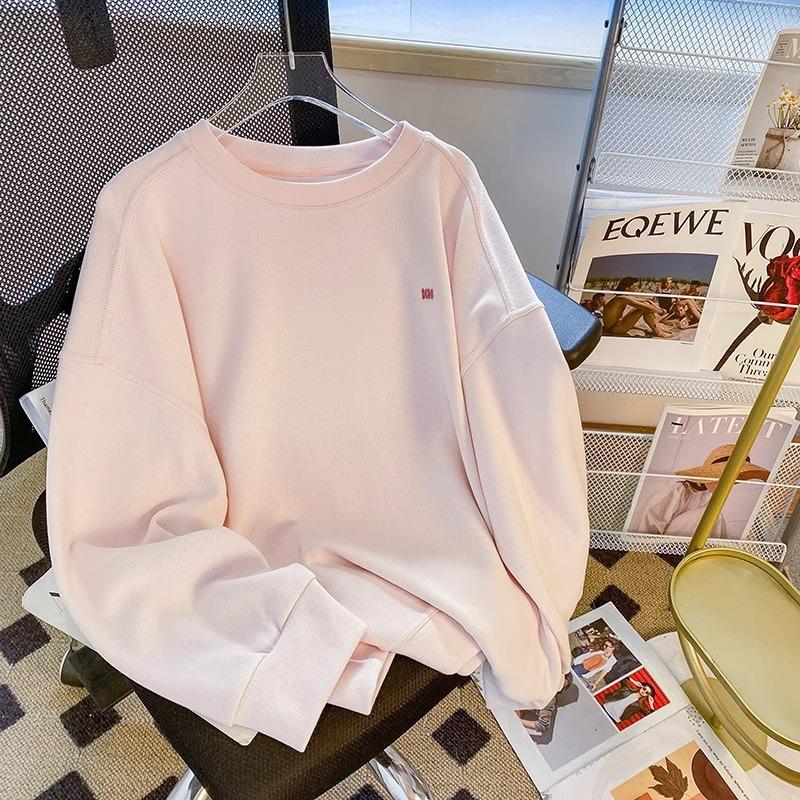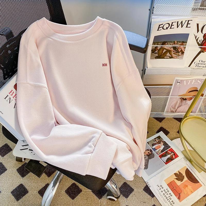 Suéter rosa de cuello redondo para mujer primavera y otoño delgado ins letras de moda de alta calidad estilo nicho perezoso holgado talla grande top