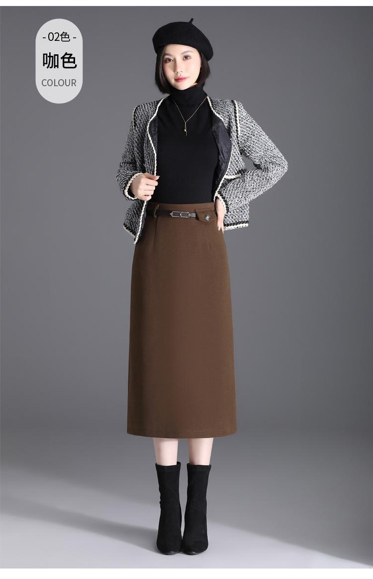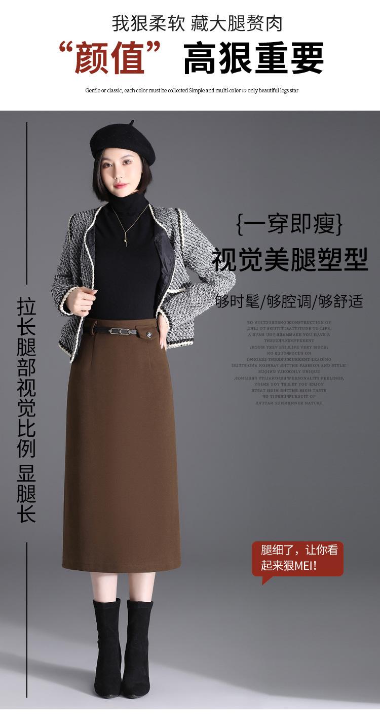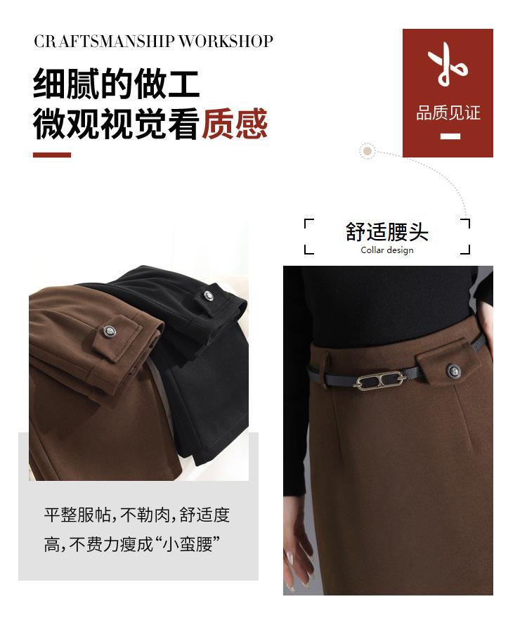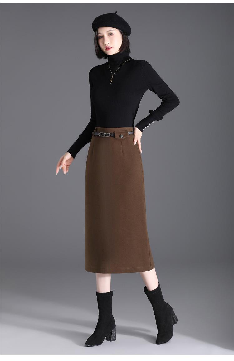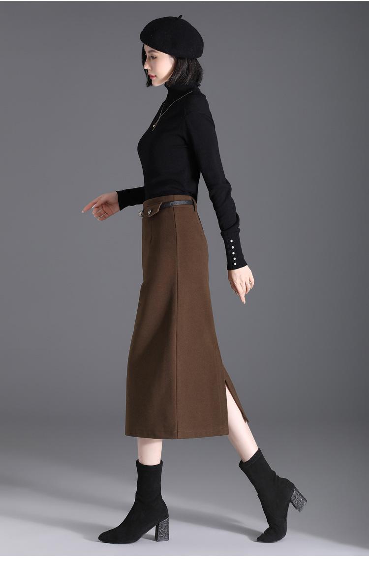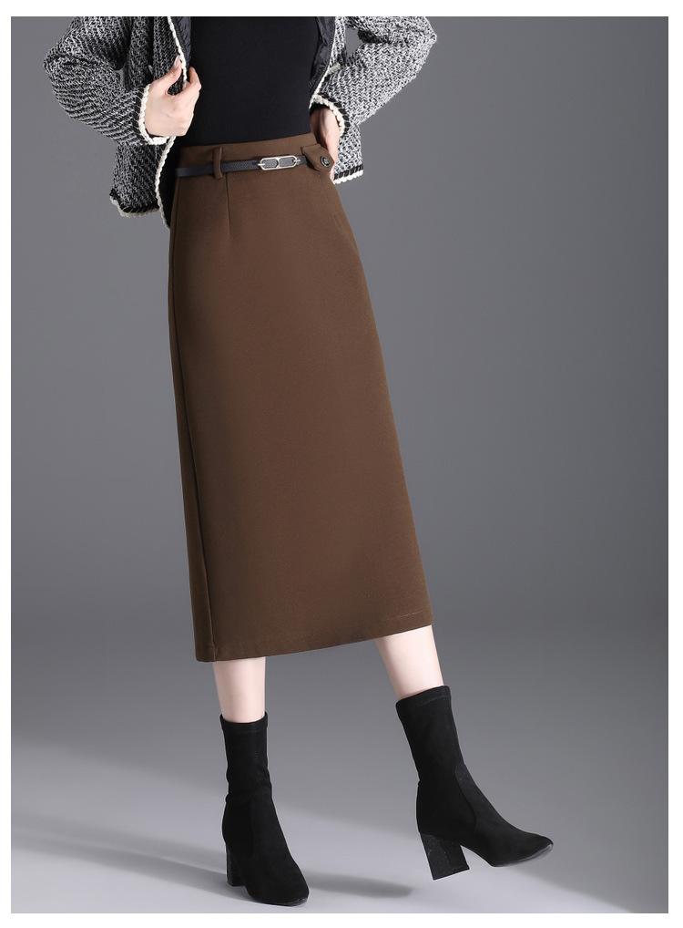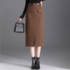Falda de Lana a la Moda Cubrecaderas para Mujer 2024 Otoño e Invierno Nuevo Estilo Coreano de Cintura Alta Recta Profesional de Un Paso Largo Medio